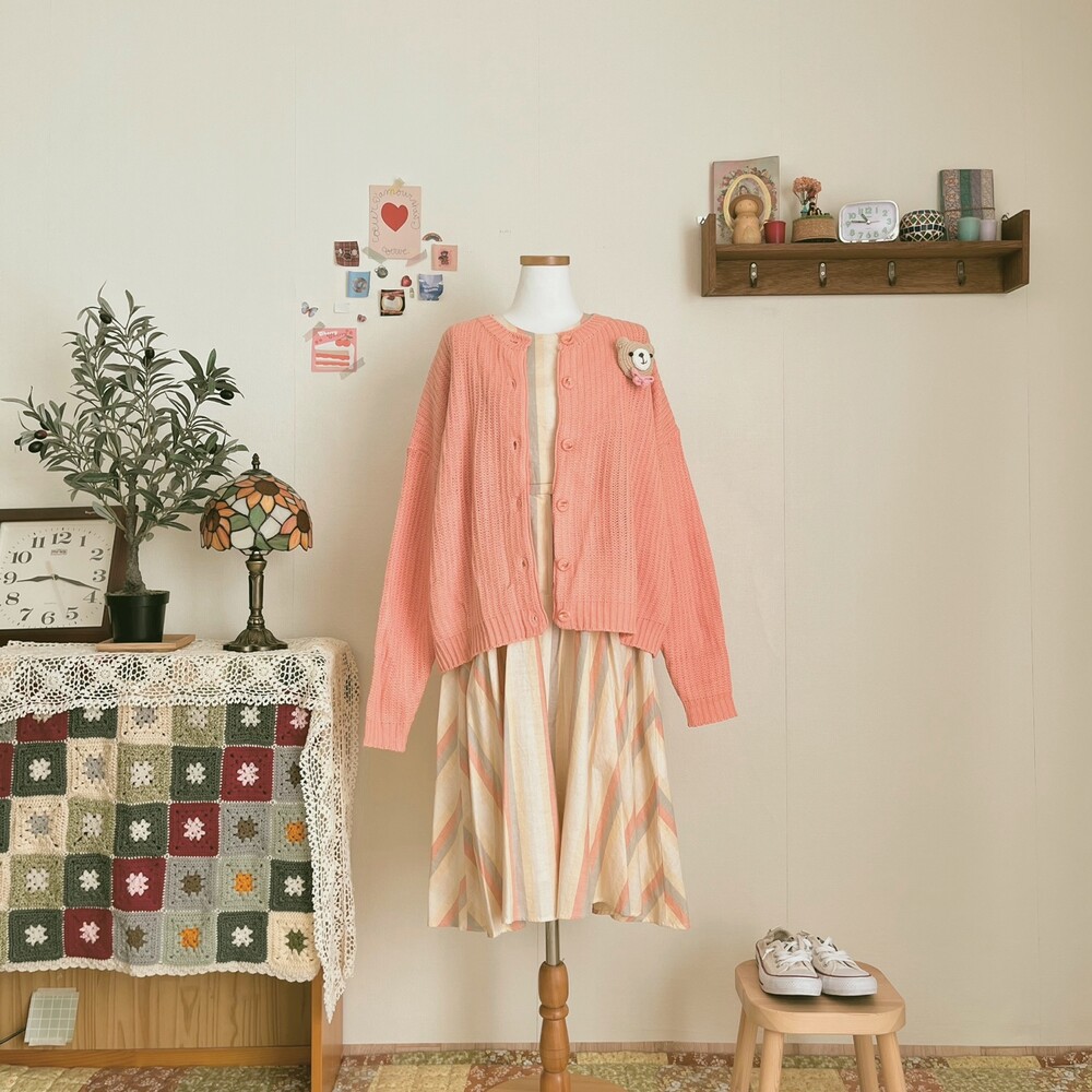 살구 색감이라 흔하지 않은 색의 가디건이랍니다