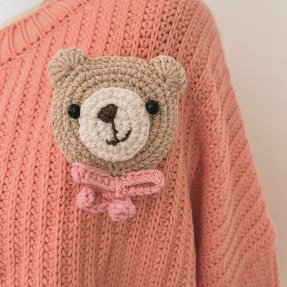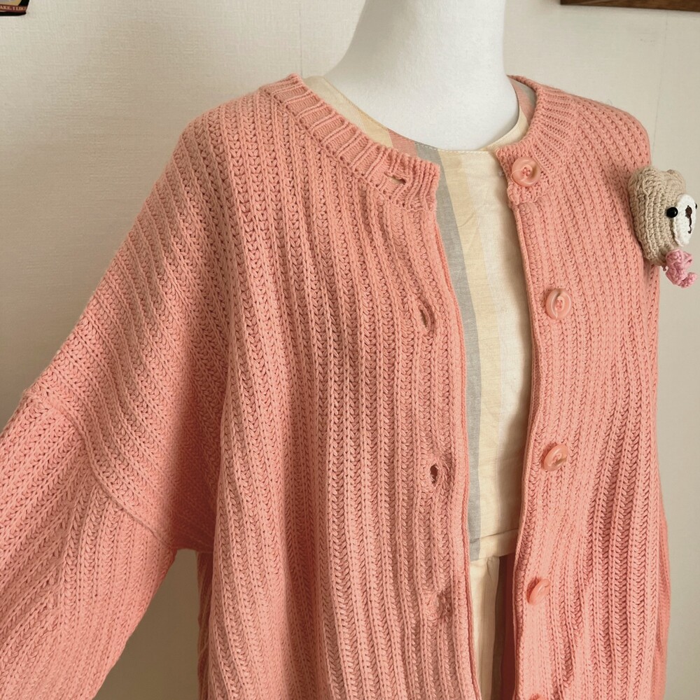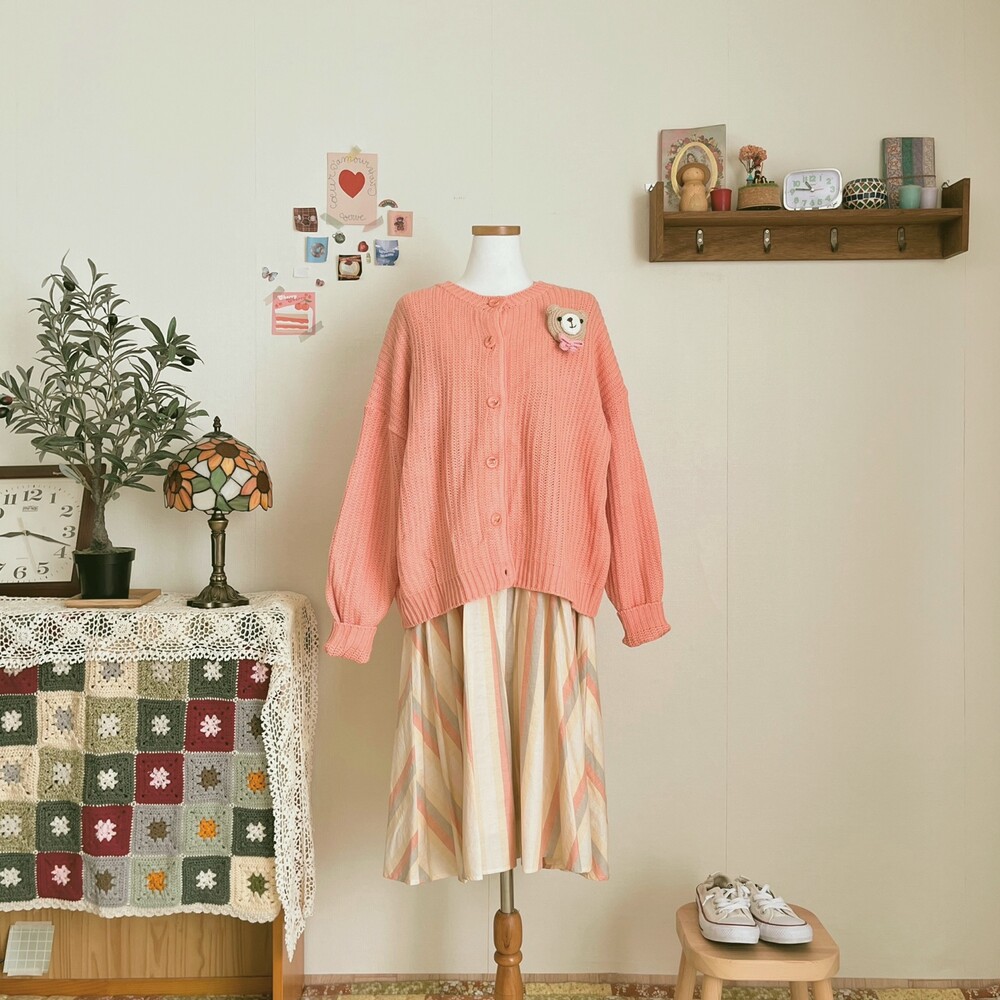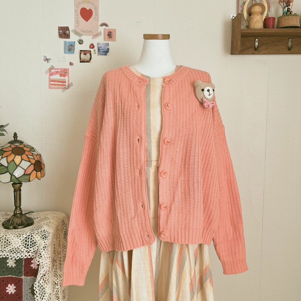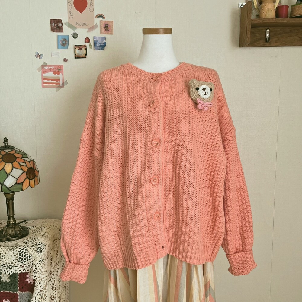 모티브 곰돌이 포인트의 살구색감 가디건이에요