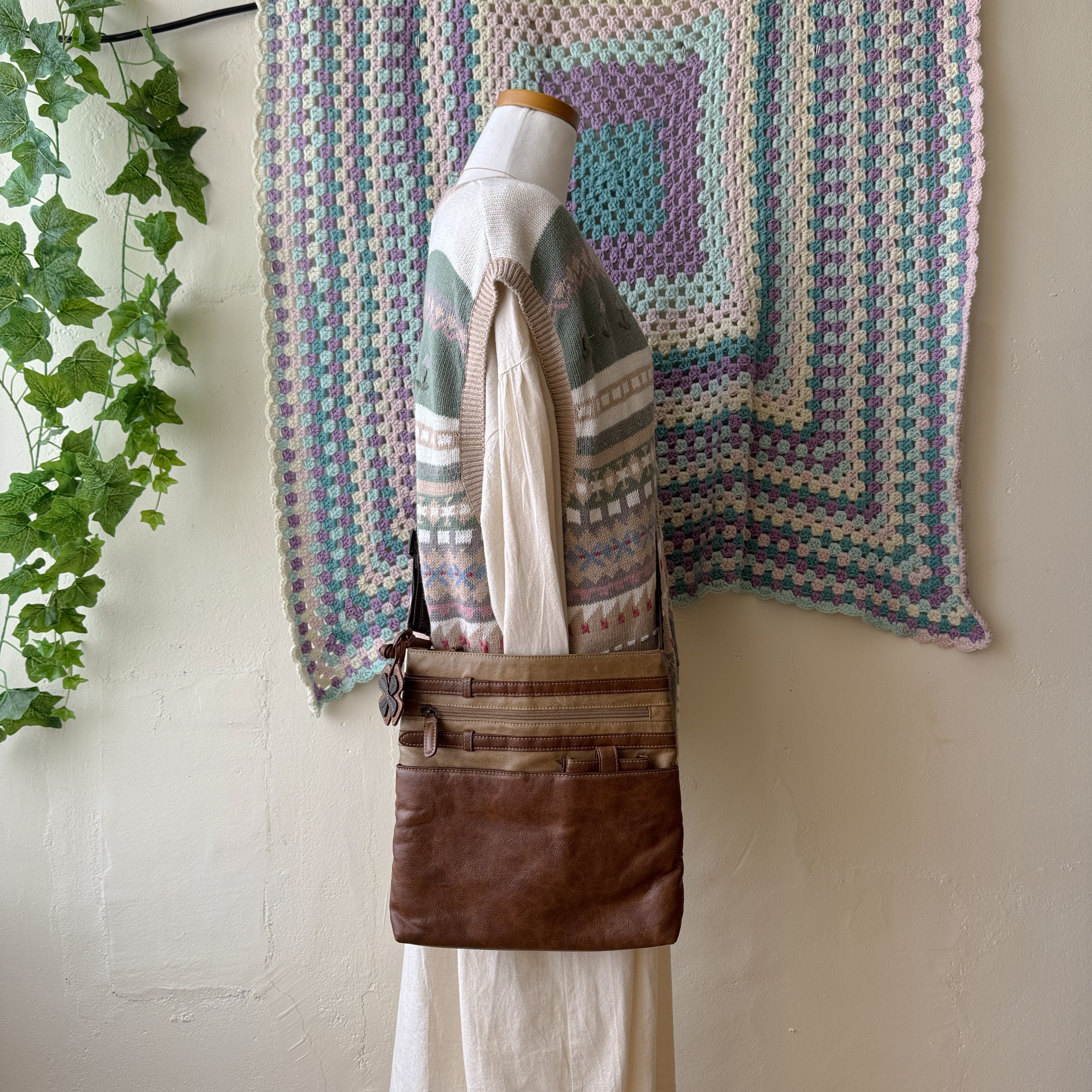 brown flower keyring cross bag