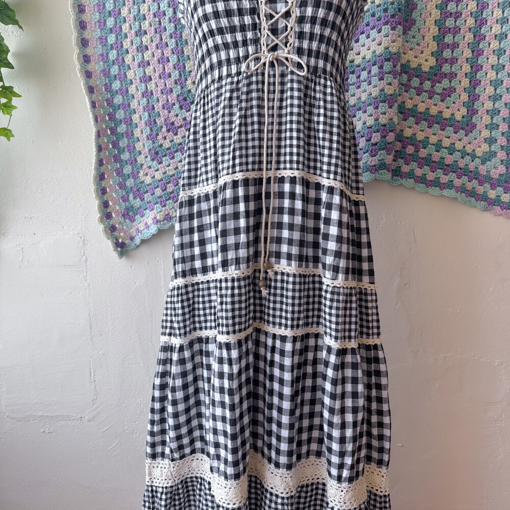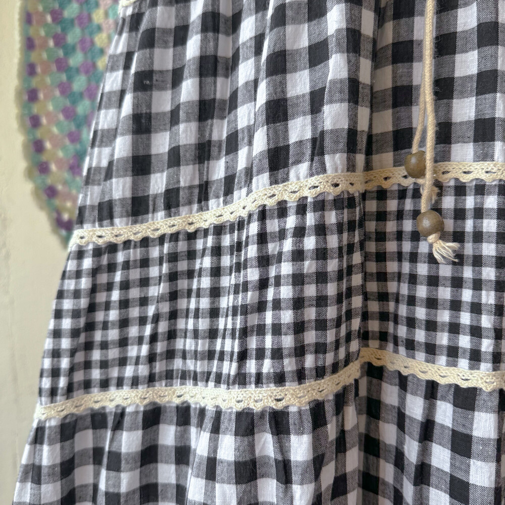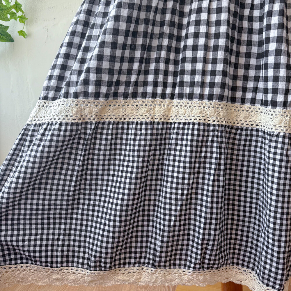 black check eyelet tiered lace ops