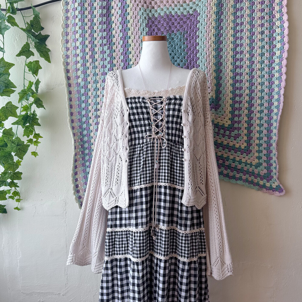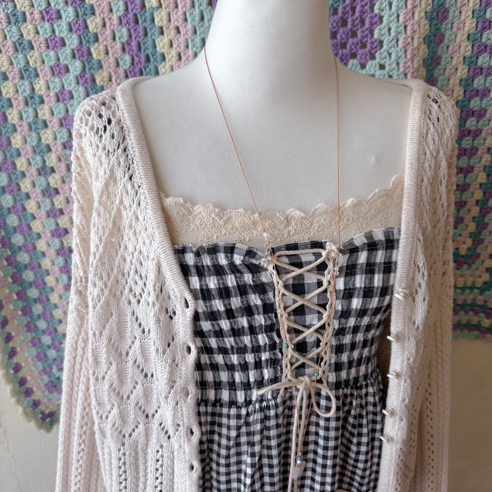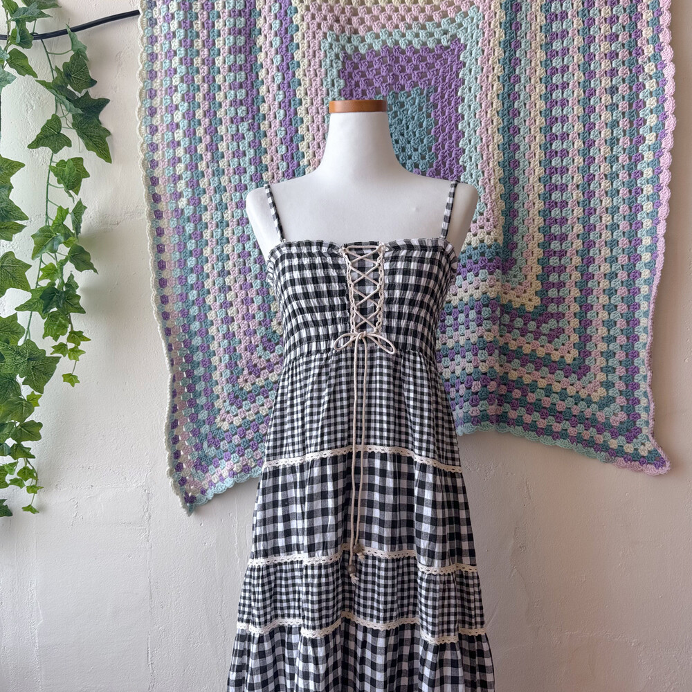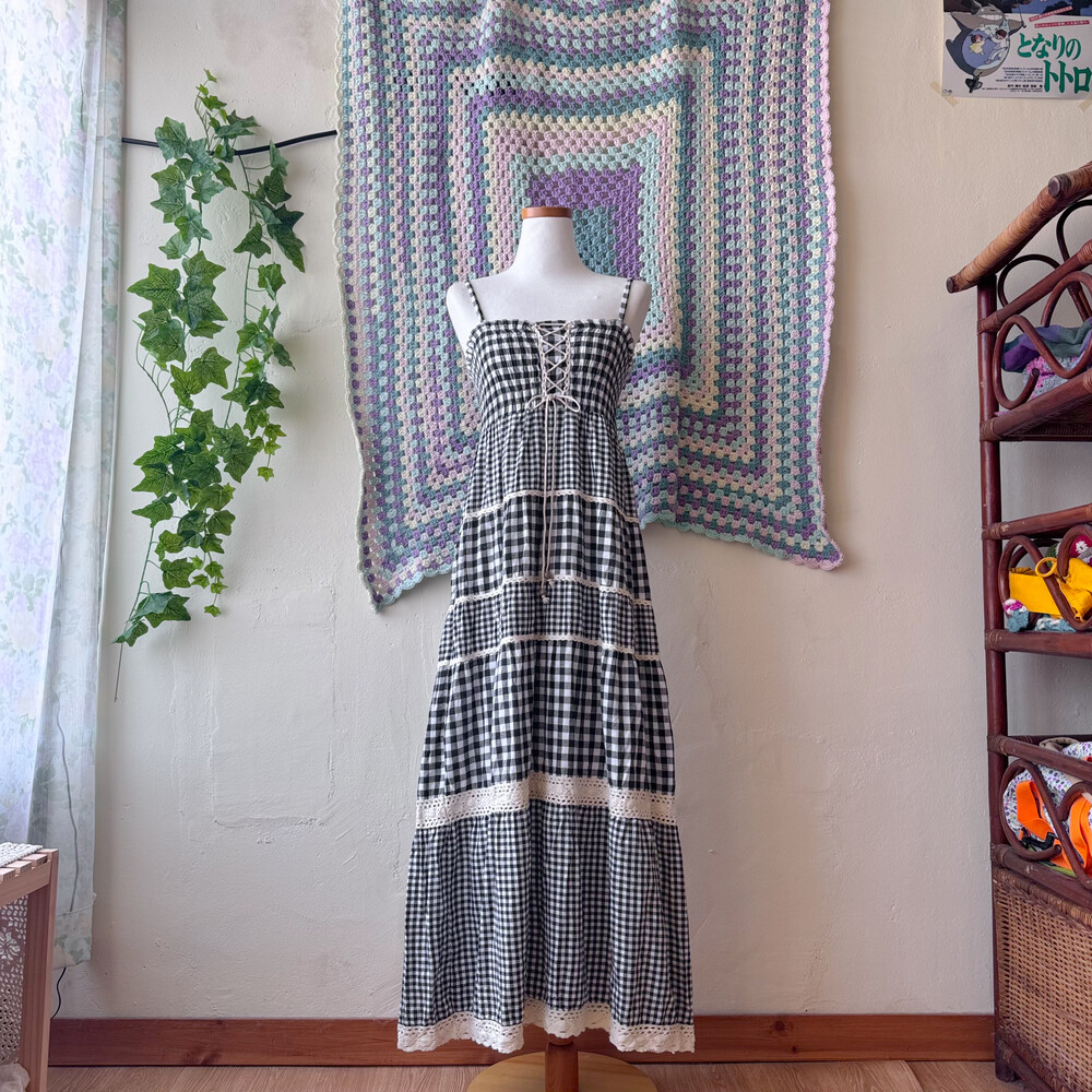 black check eyelet tiered lace ops