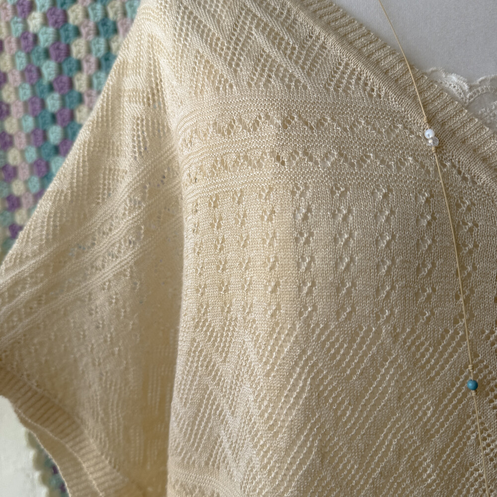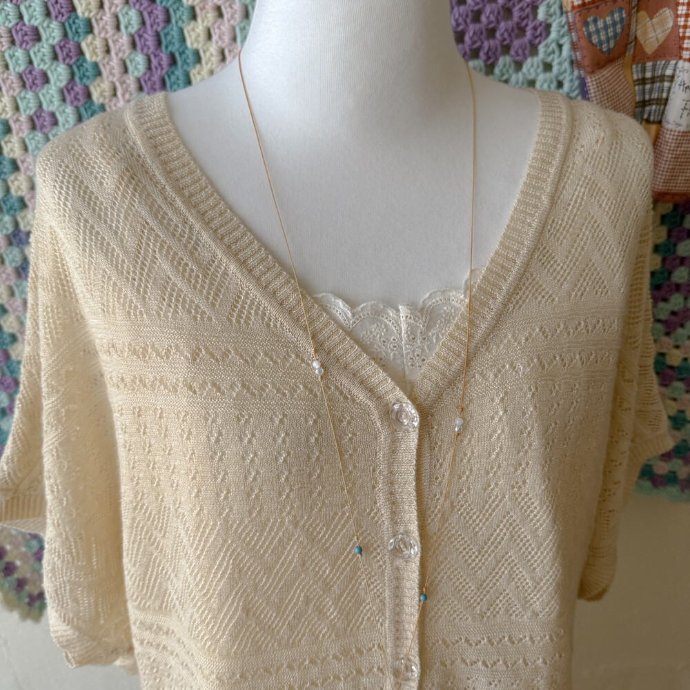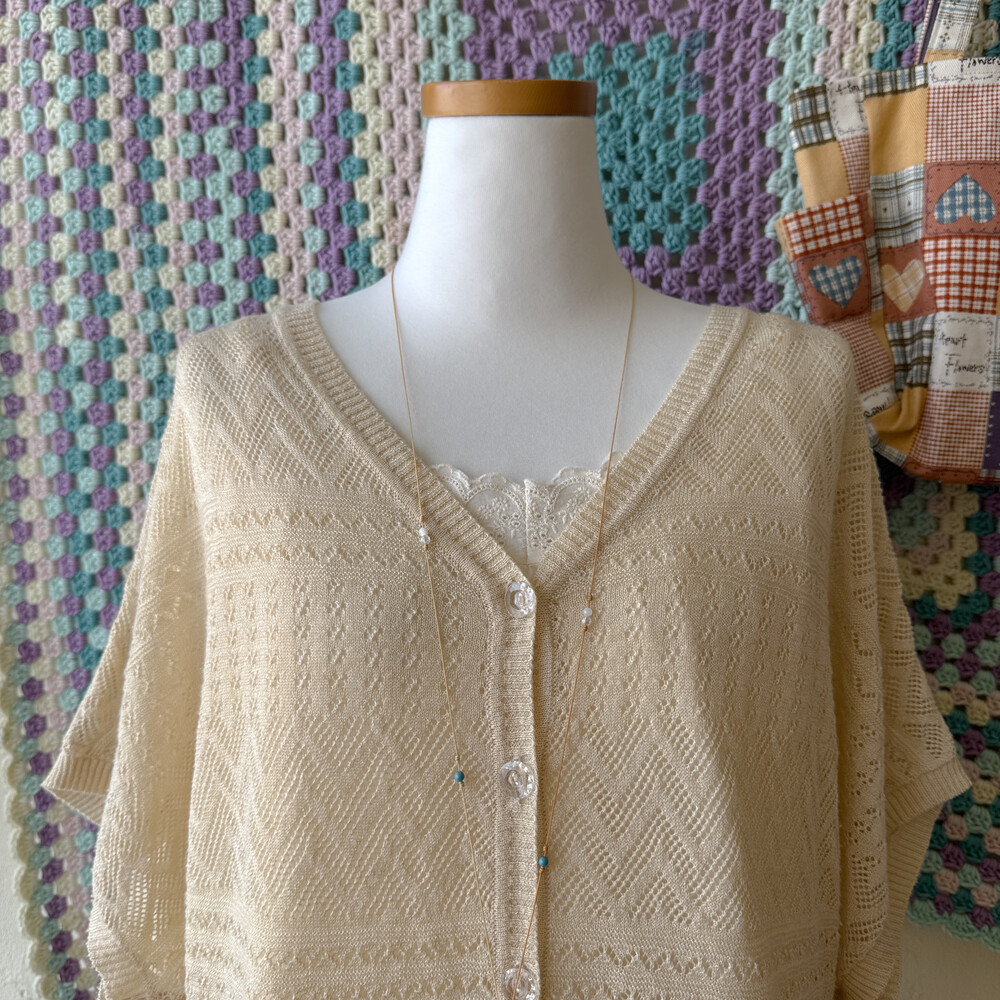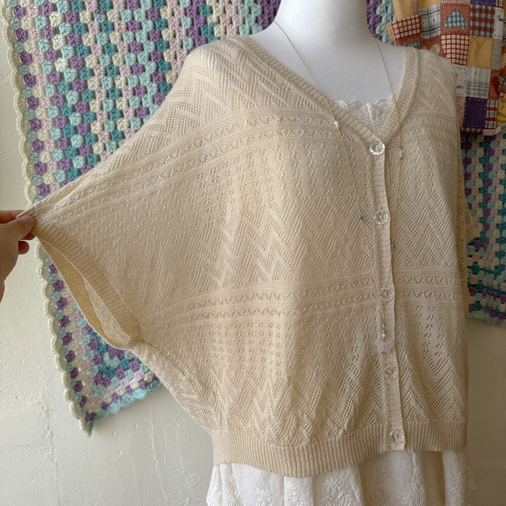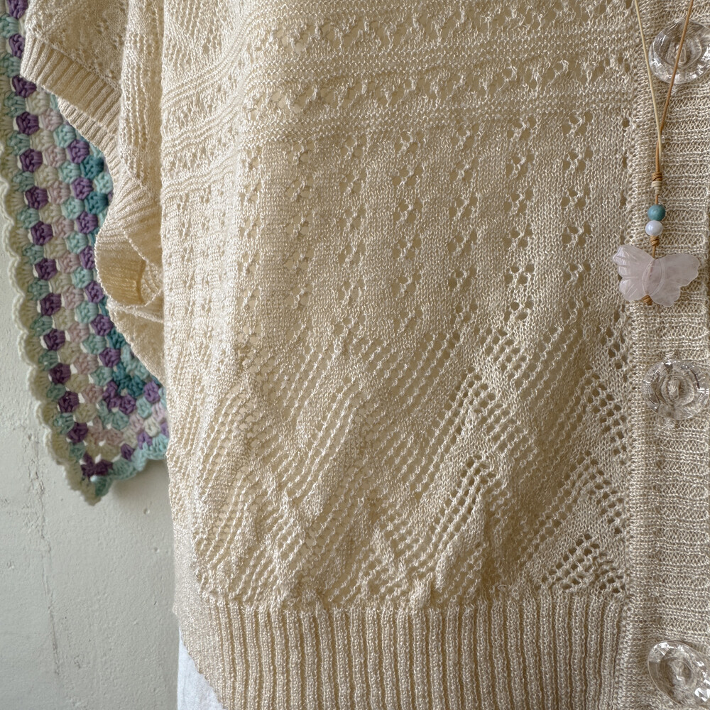 연베이지 색감의 펀칭 여름 가디건이에요