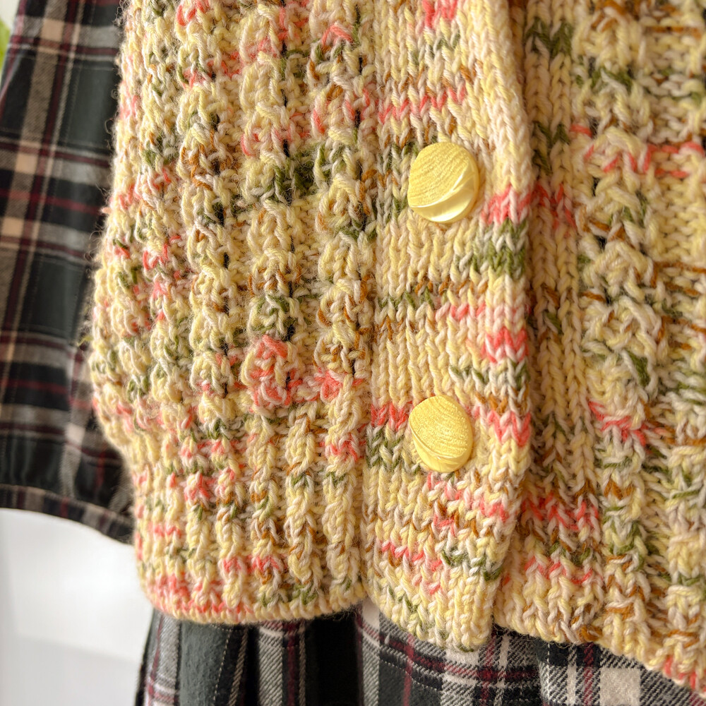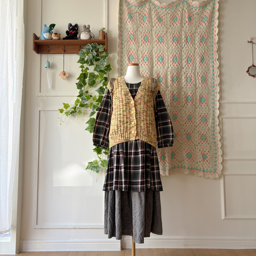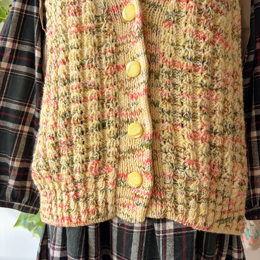노랑색 믹스 니트 조끼예요
