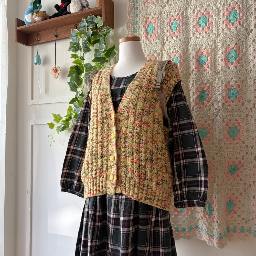 yellow base brown&orange mix vest