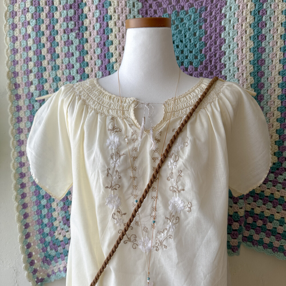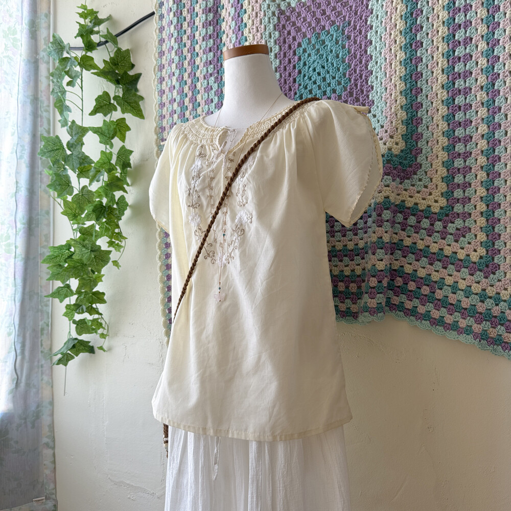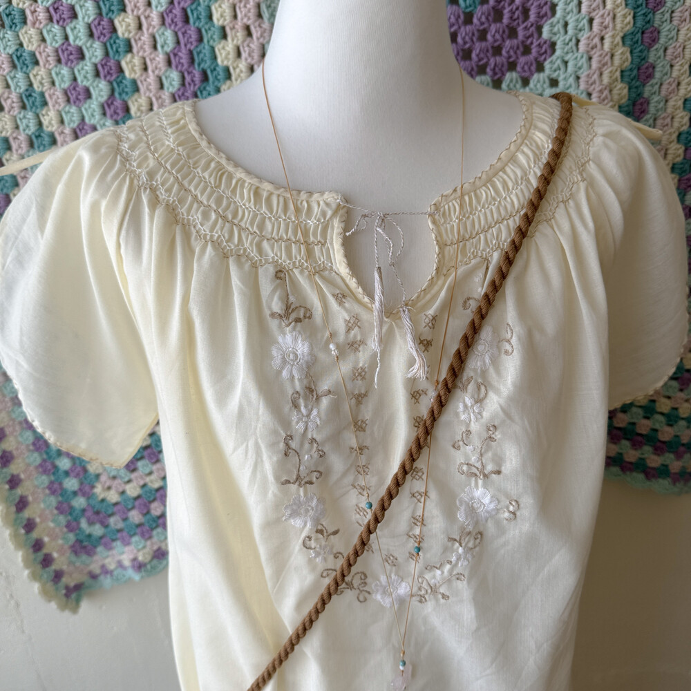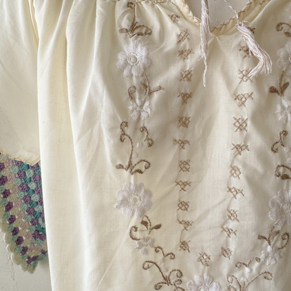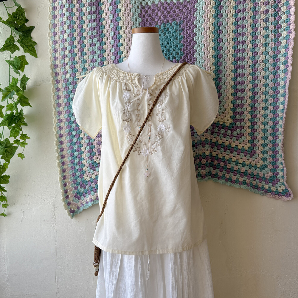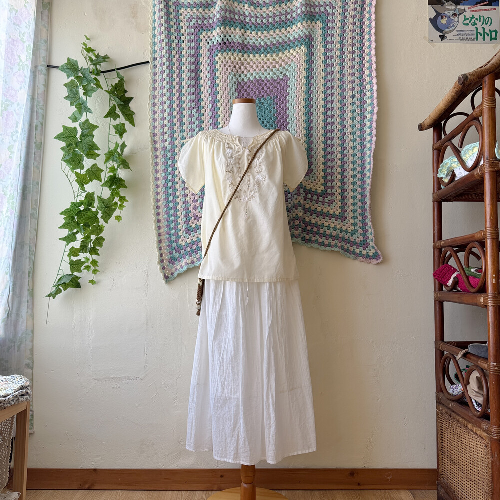 아이보리 색감의 자수, 스티치 포인트 블라우스예요
