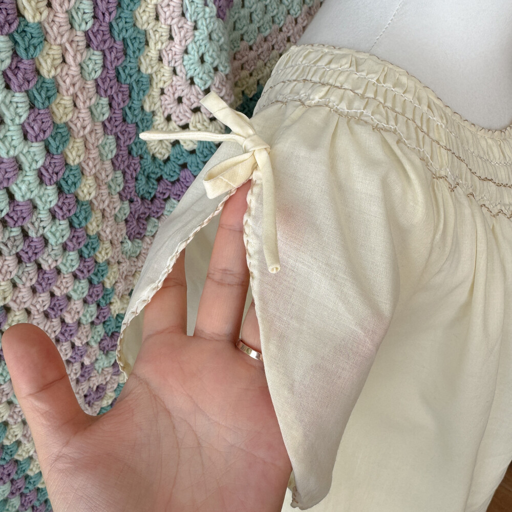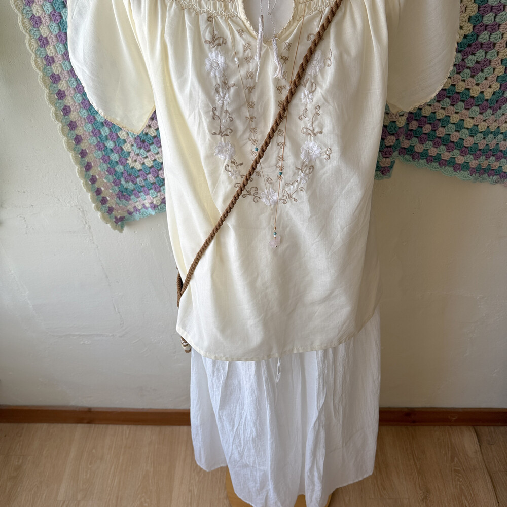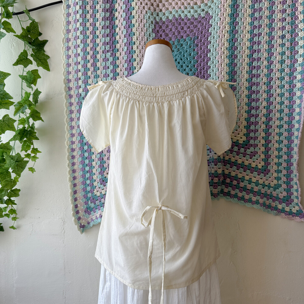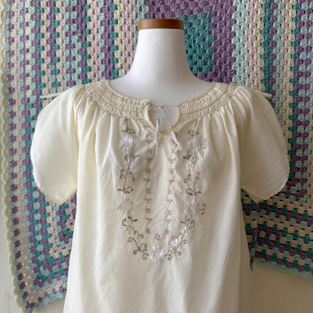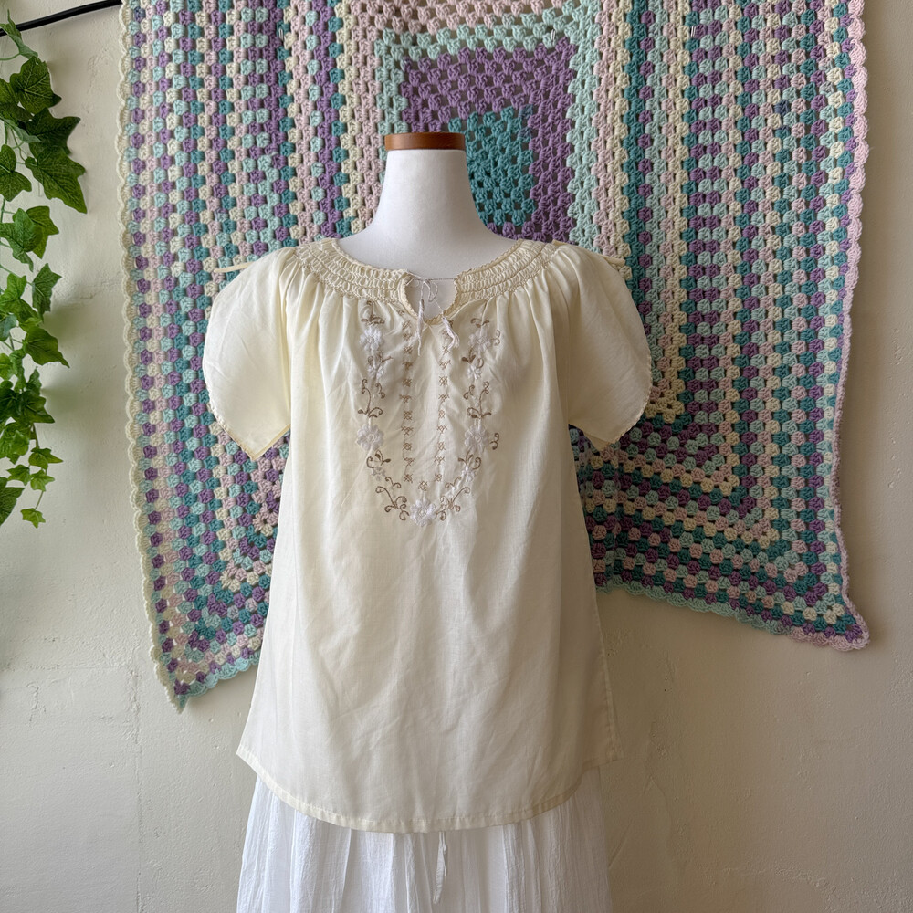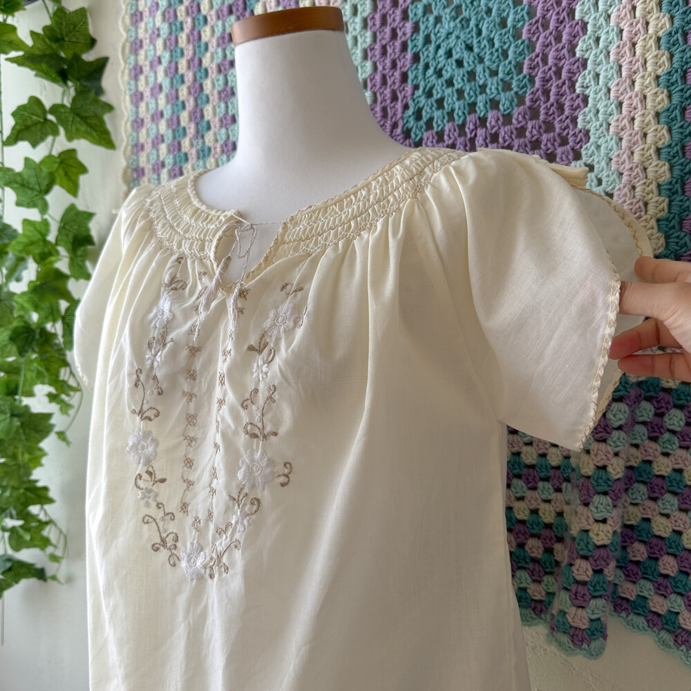 아이보리 색감의 자수, 스티치 포인트 블라우스예요