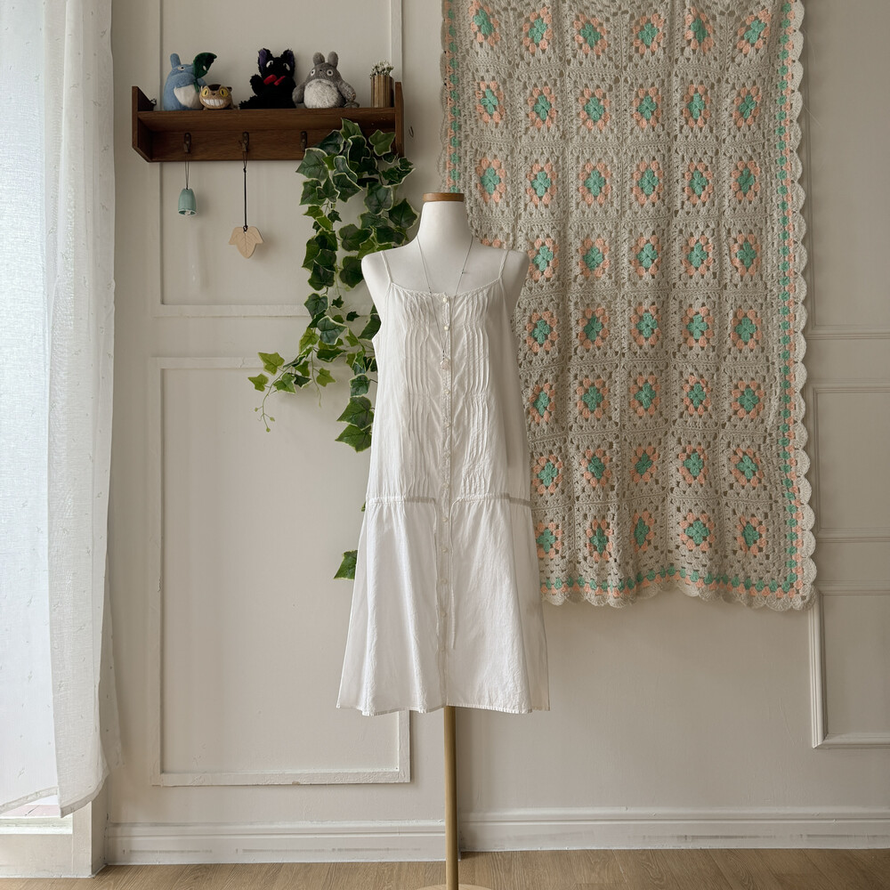 어스뮤직의 화이트 슬리브리스 원피스예요
