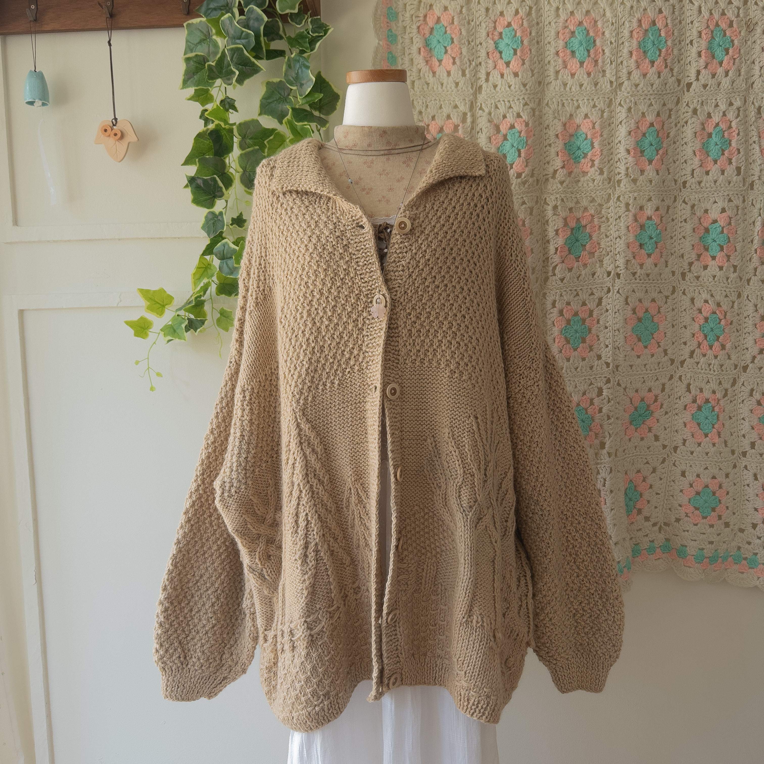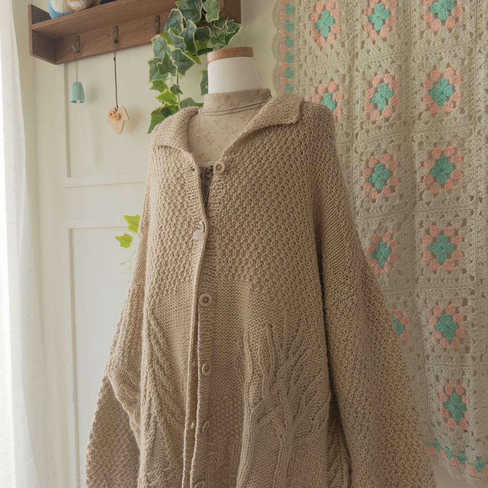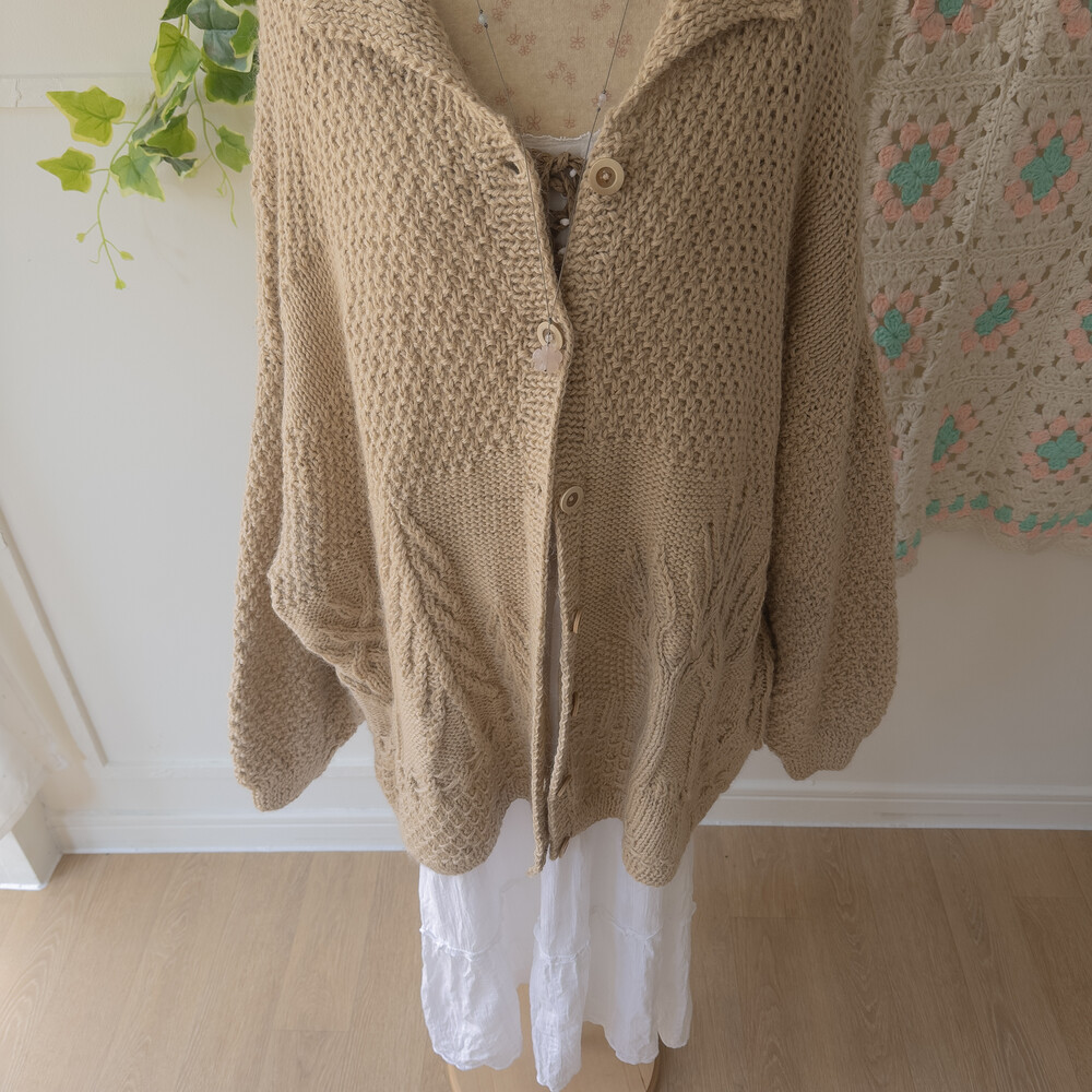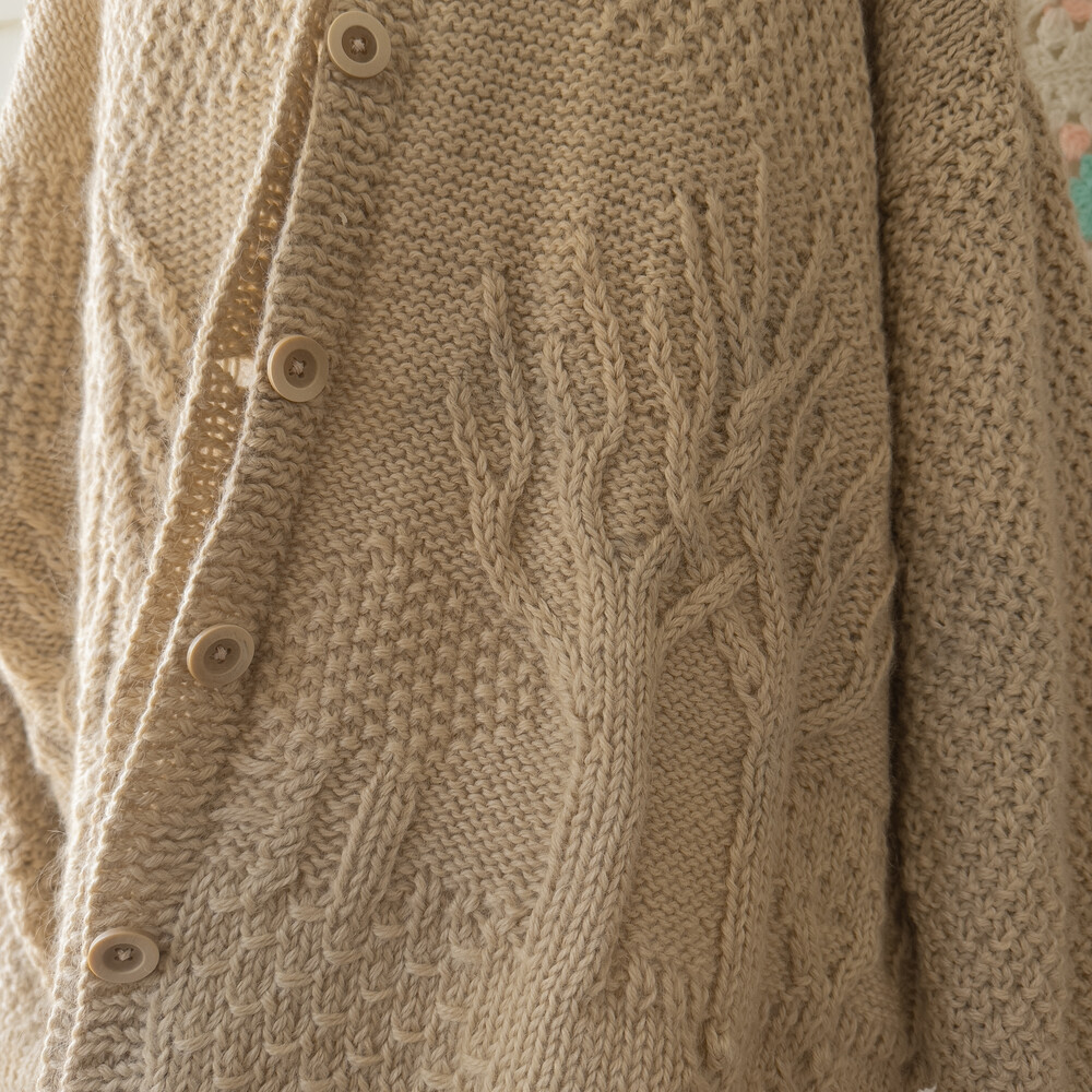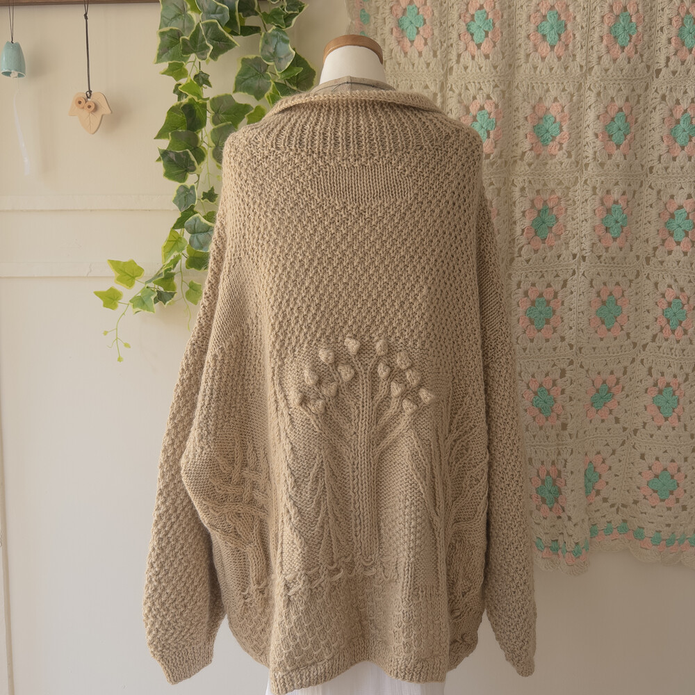 모티브 나무 포인트가 들어간 카라 롱 가디건이에요
