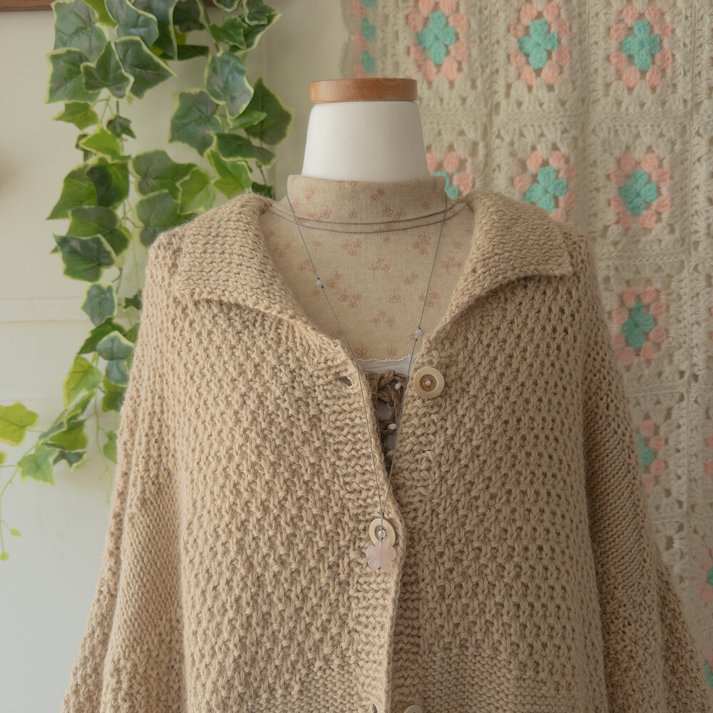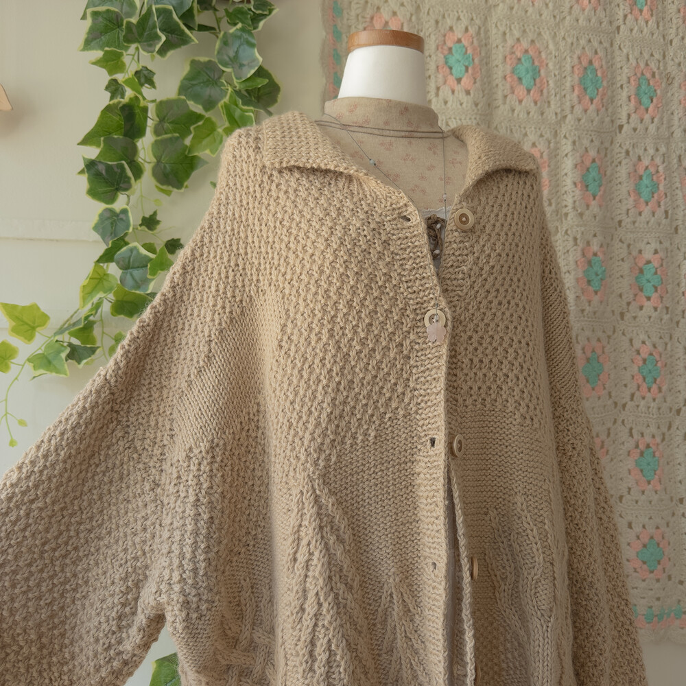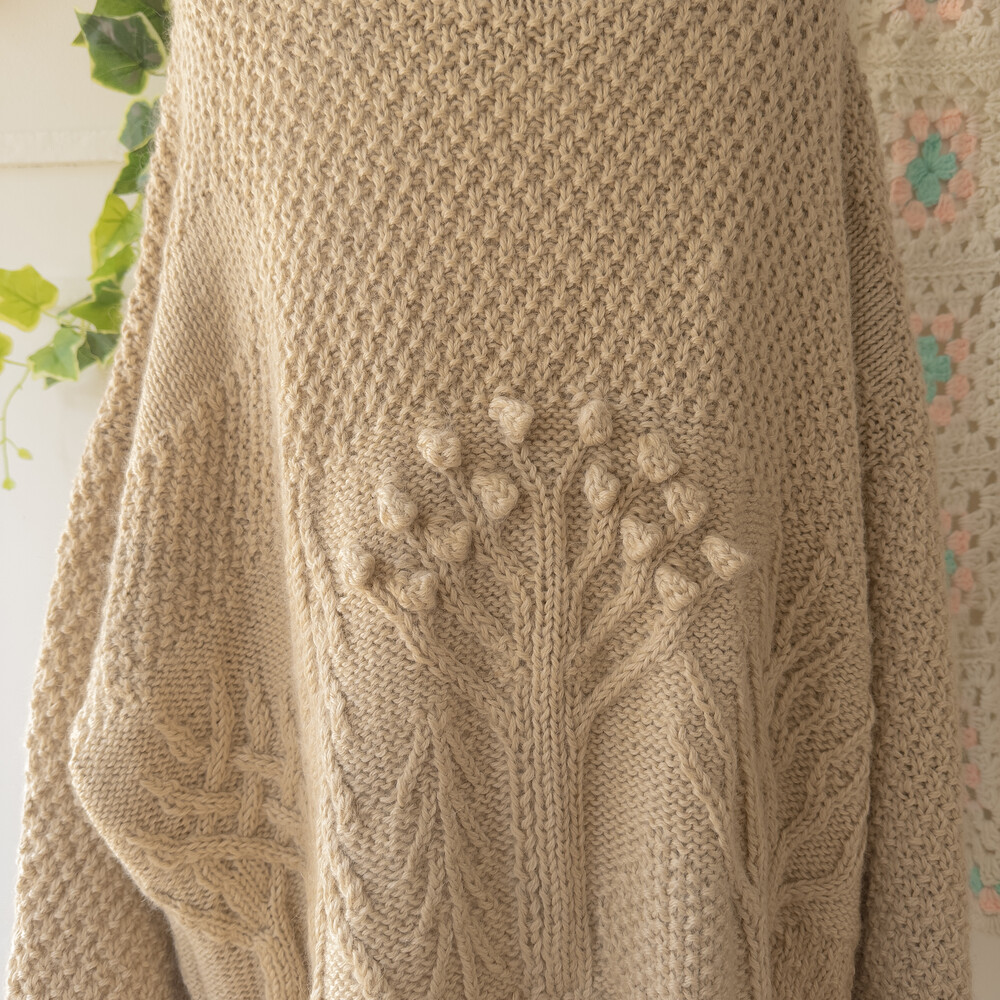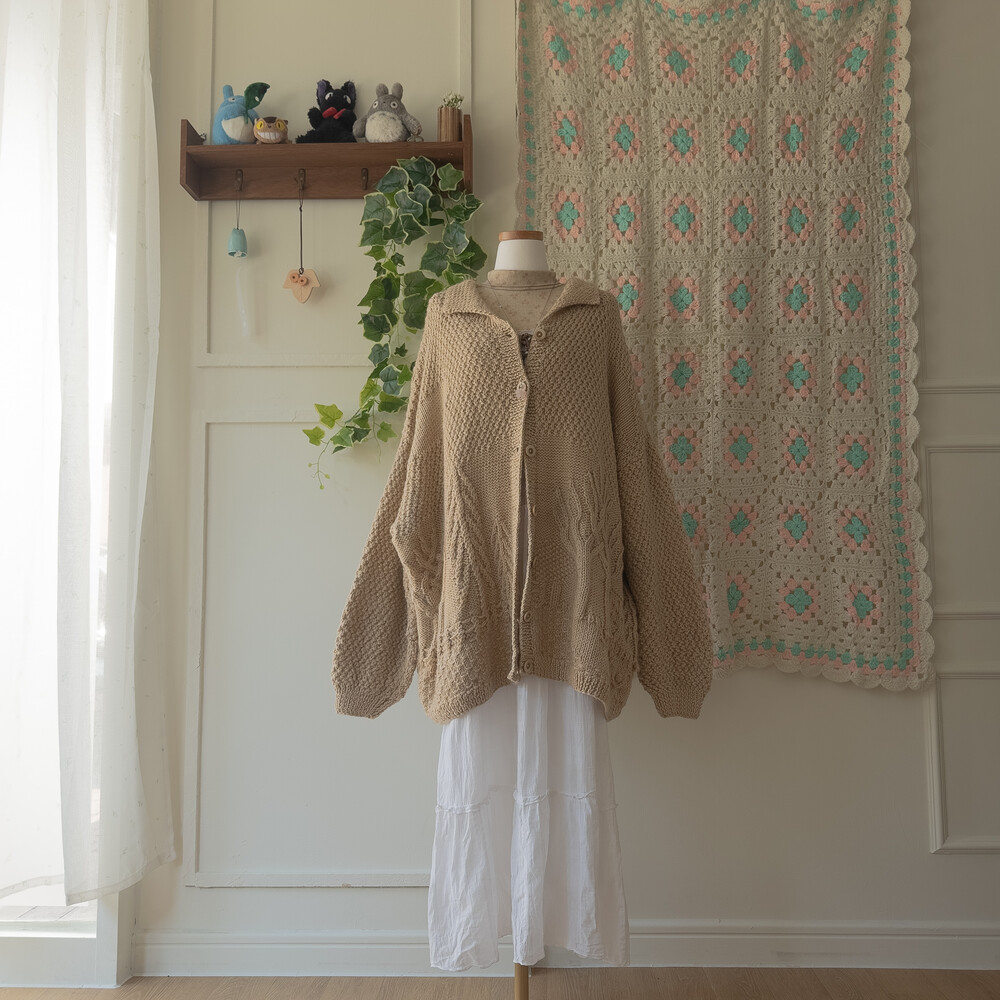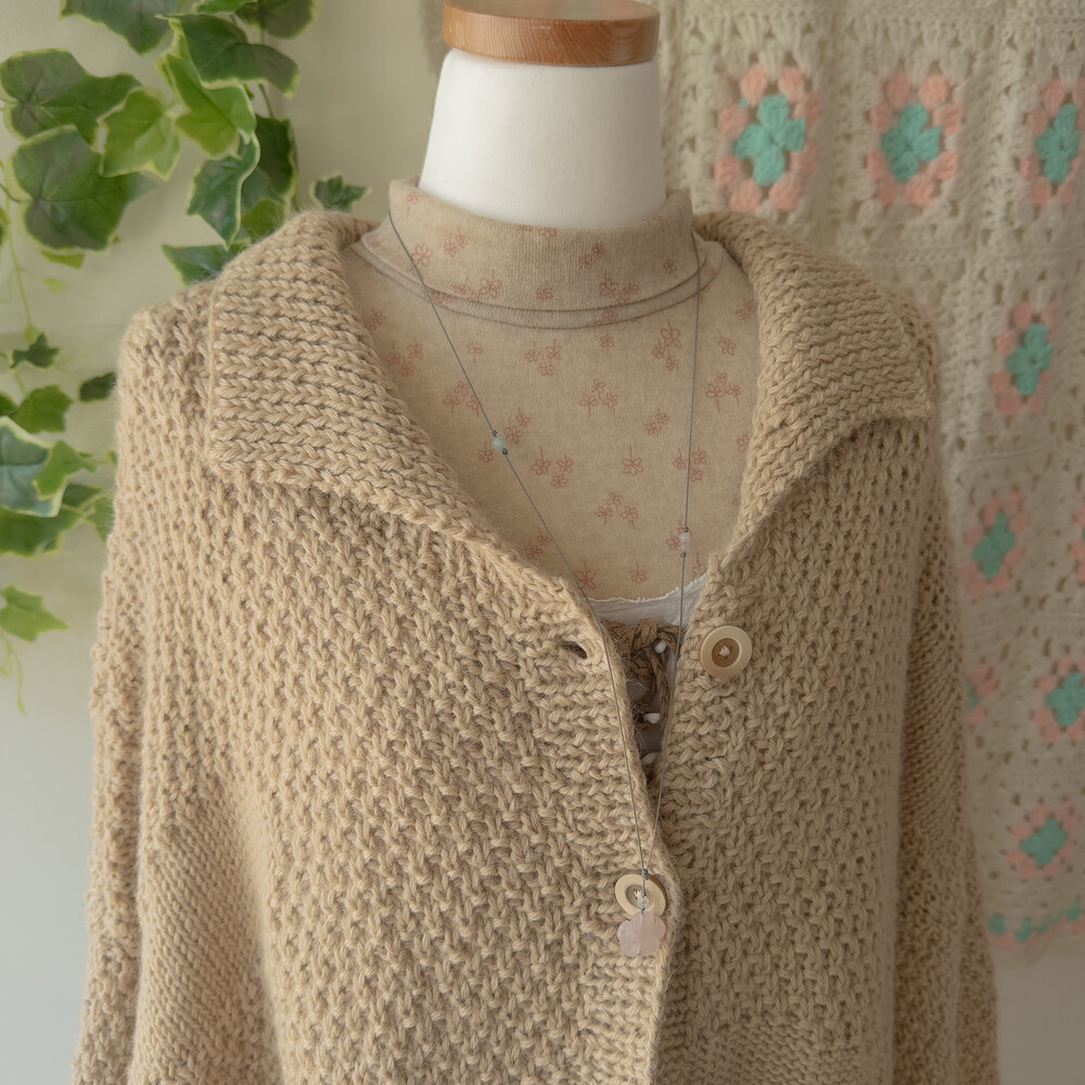 모티브 나무 포인트가 들어간 카라 롱 가디건이에요