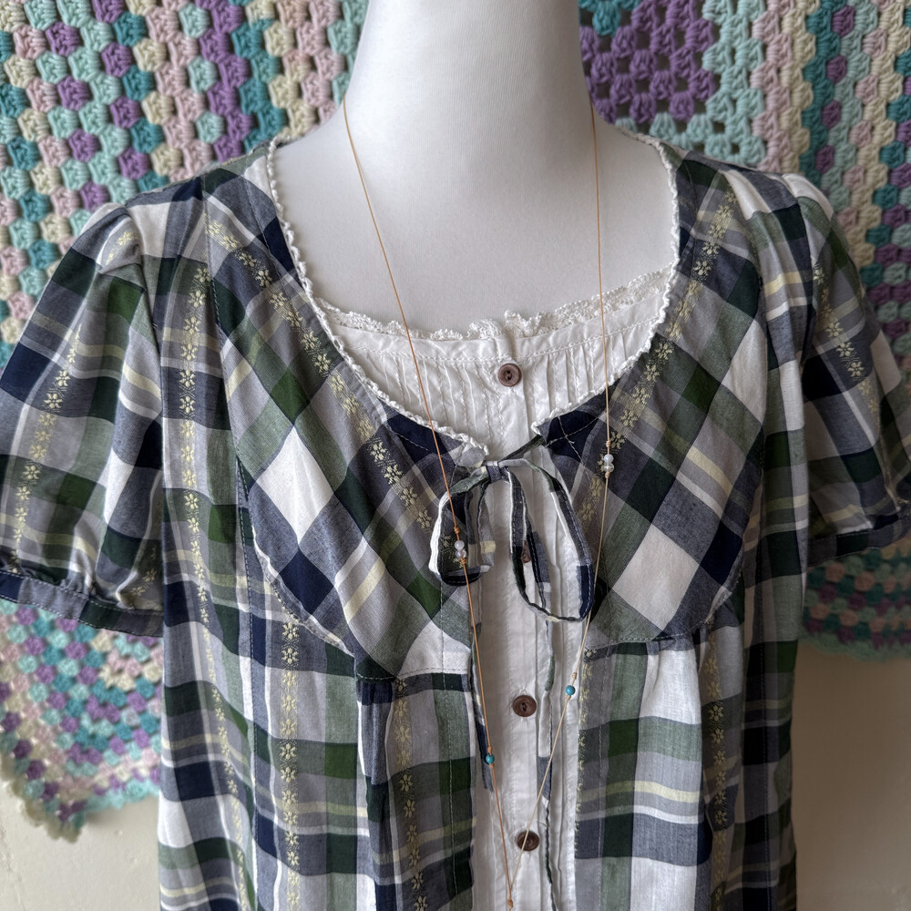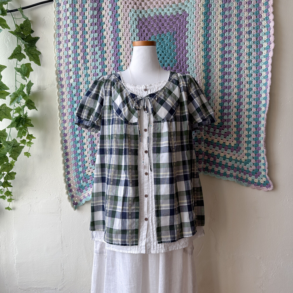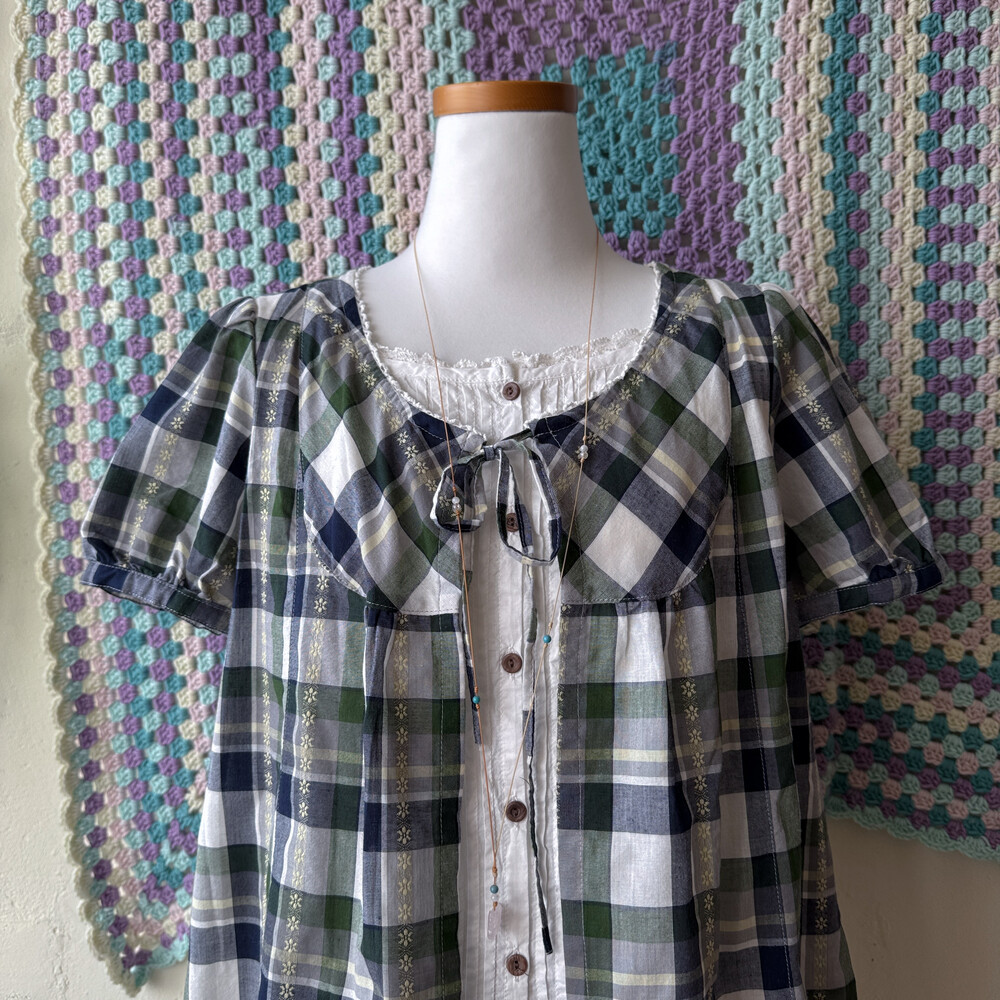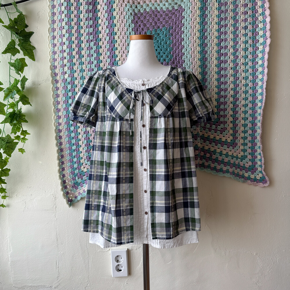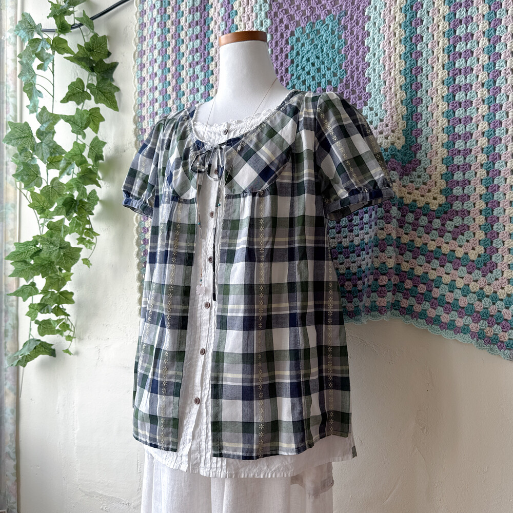 그린, 네이비 체크 포인트의 바선생 블라우스예요