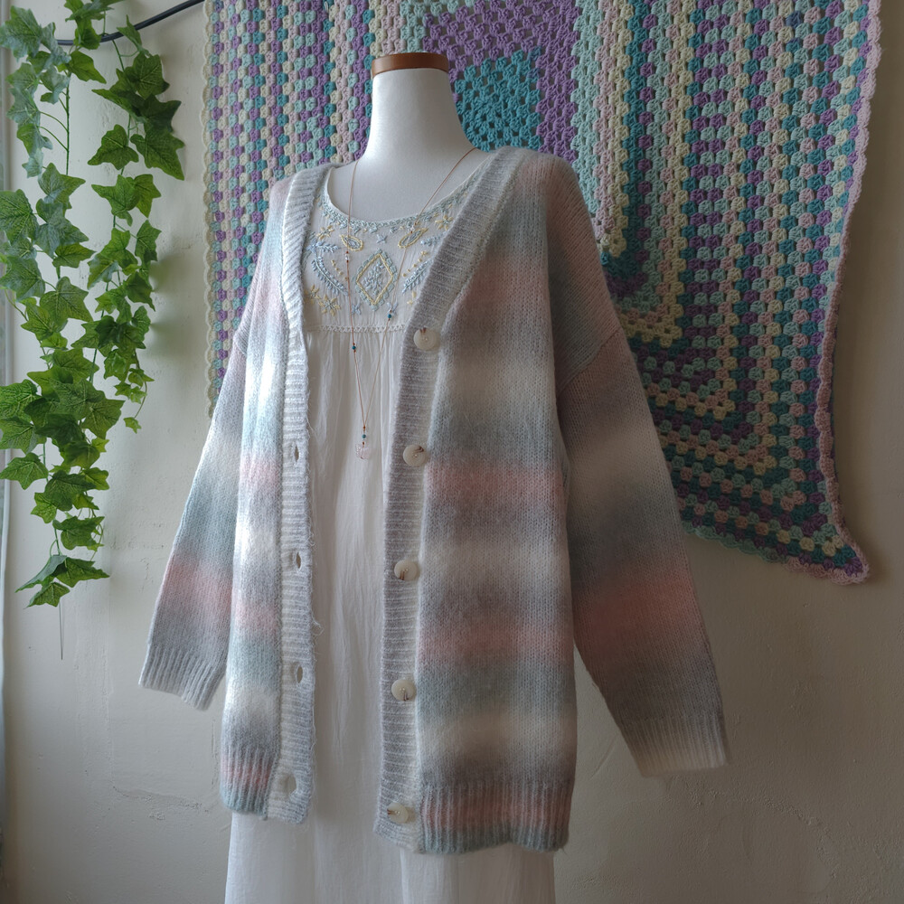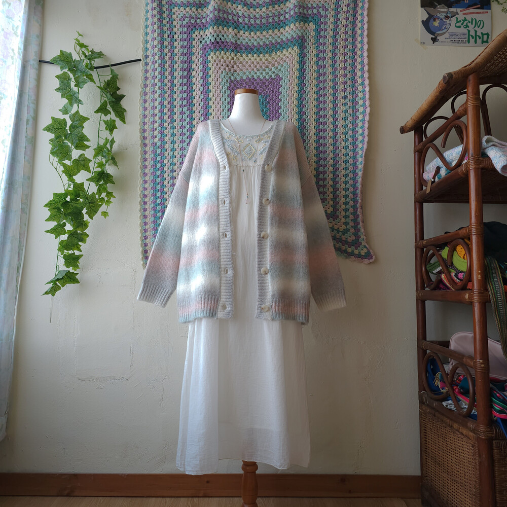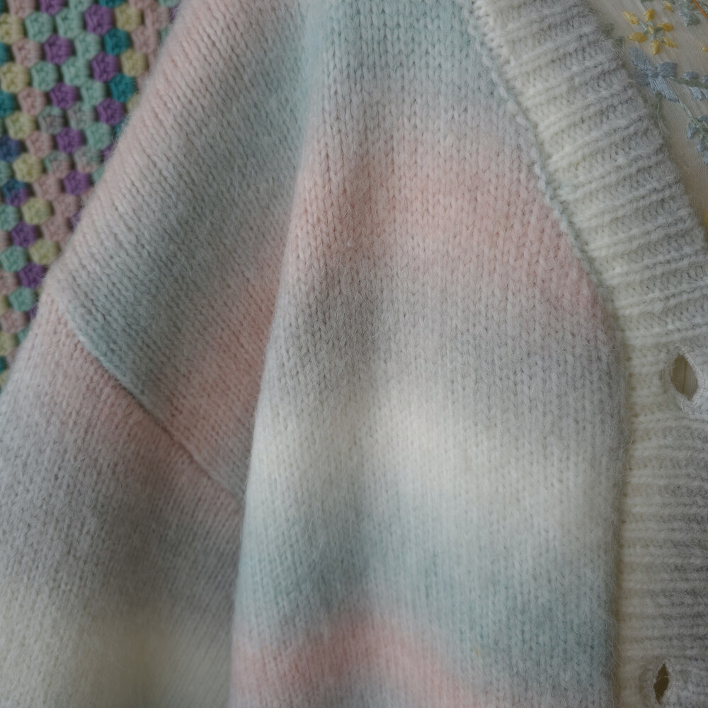 민트, 핑크 등이 섞인 밀키한 색감의 가디건이구요!