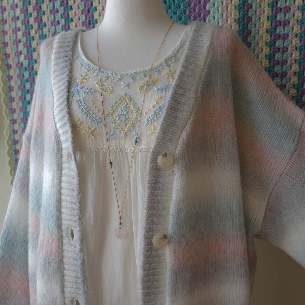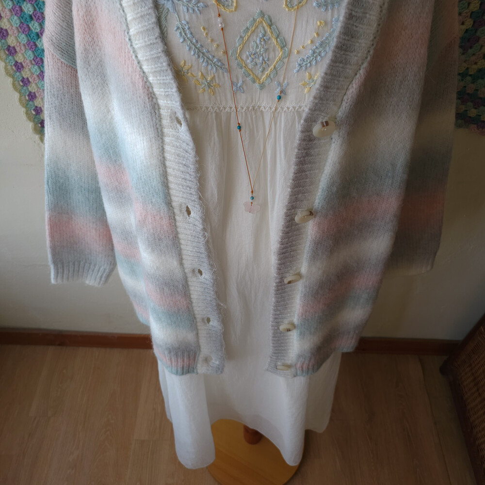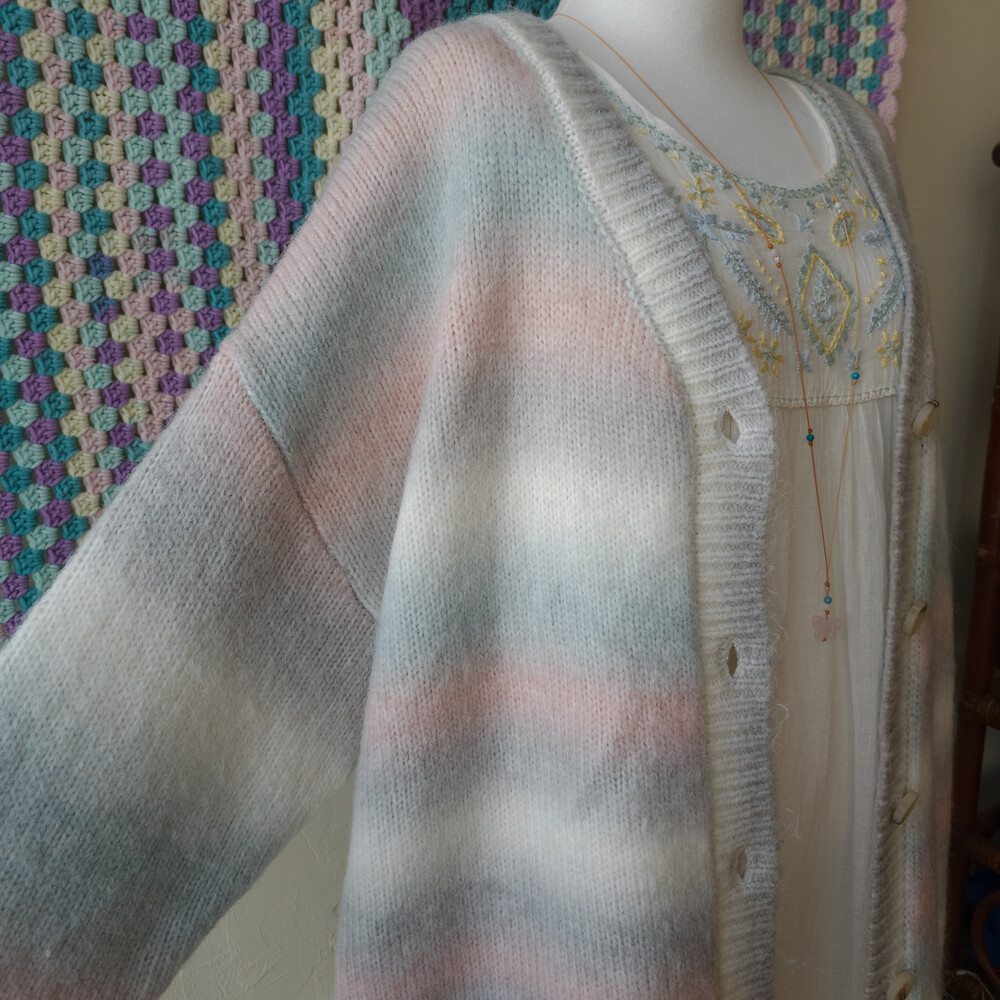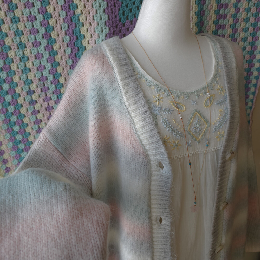 민트, 핑크 등이 섞인 밀키한 색감의 가디건이구요!