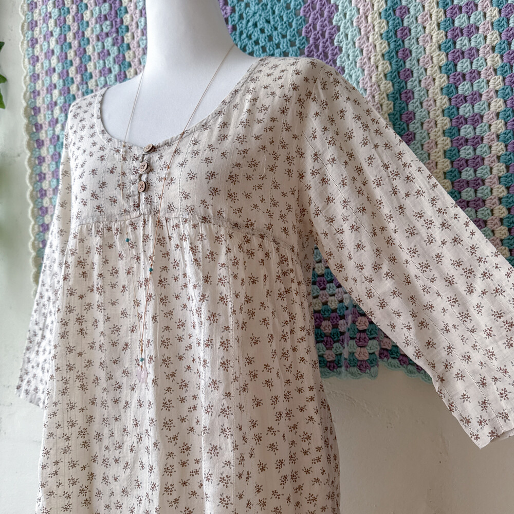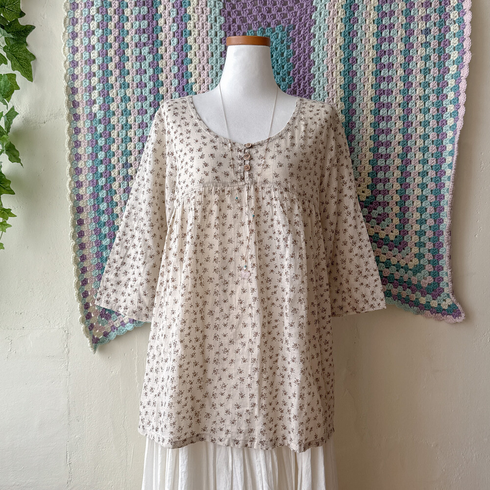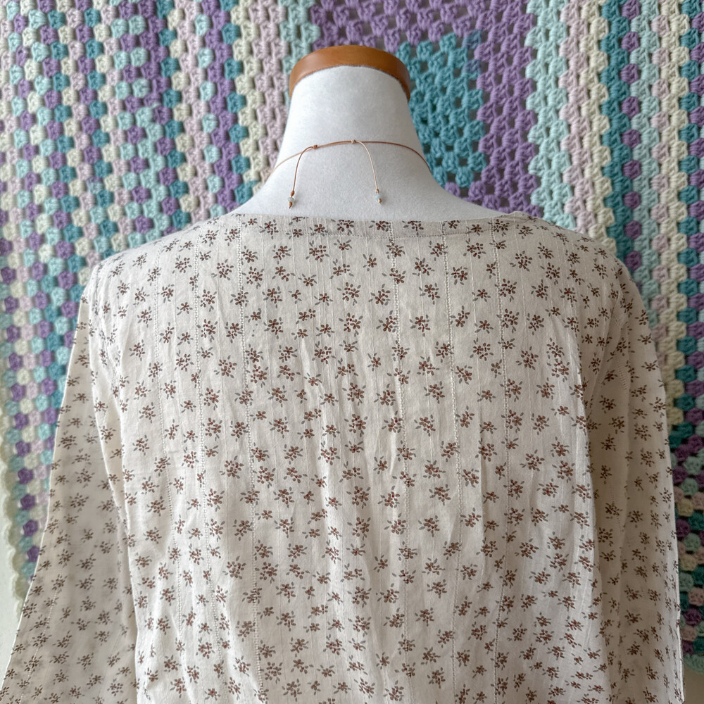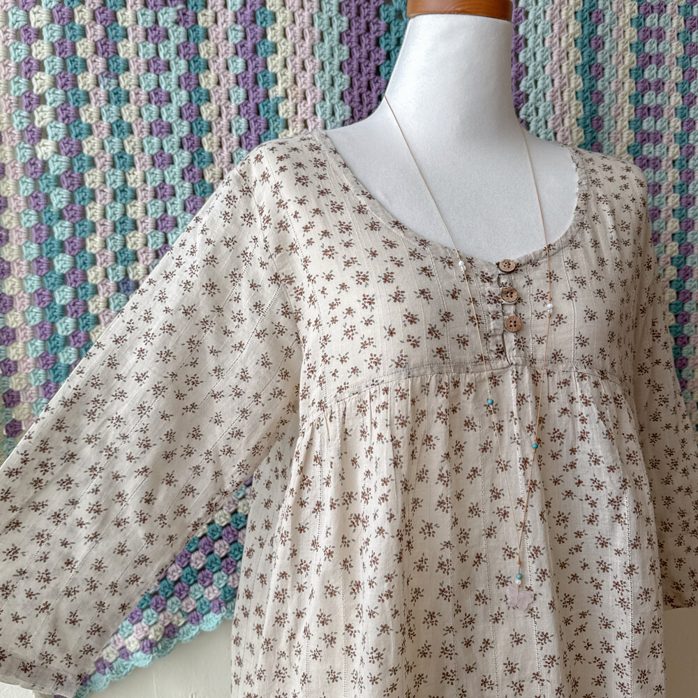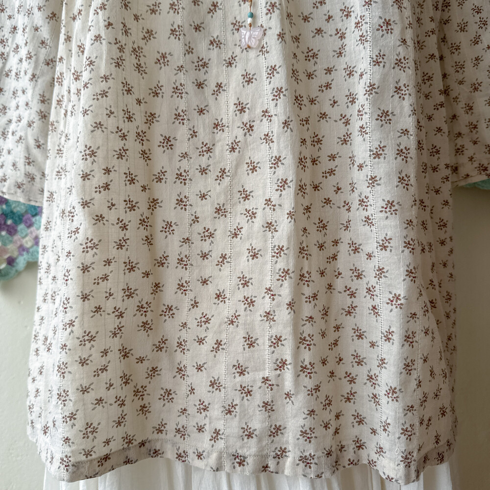 오트밀 베이지 색감의 잔꽃 블라우스예요