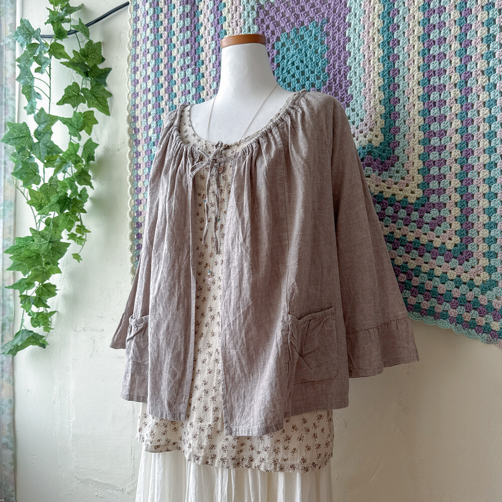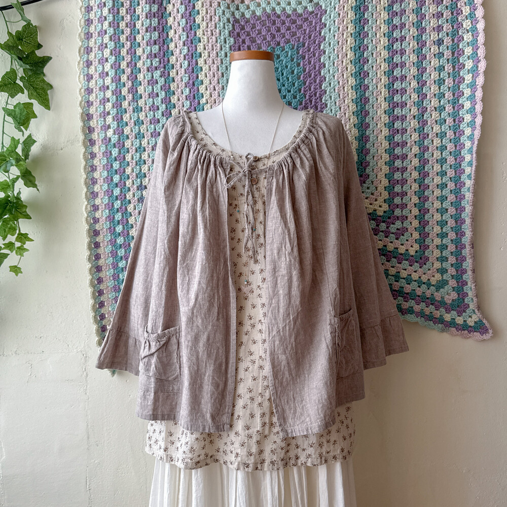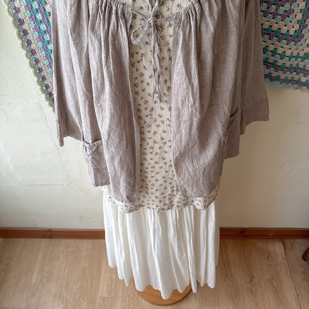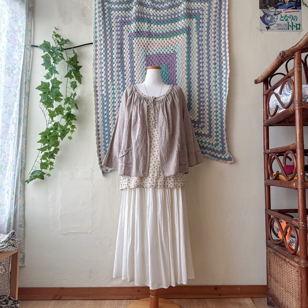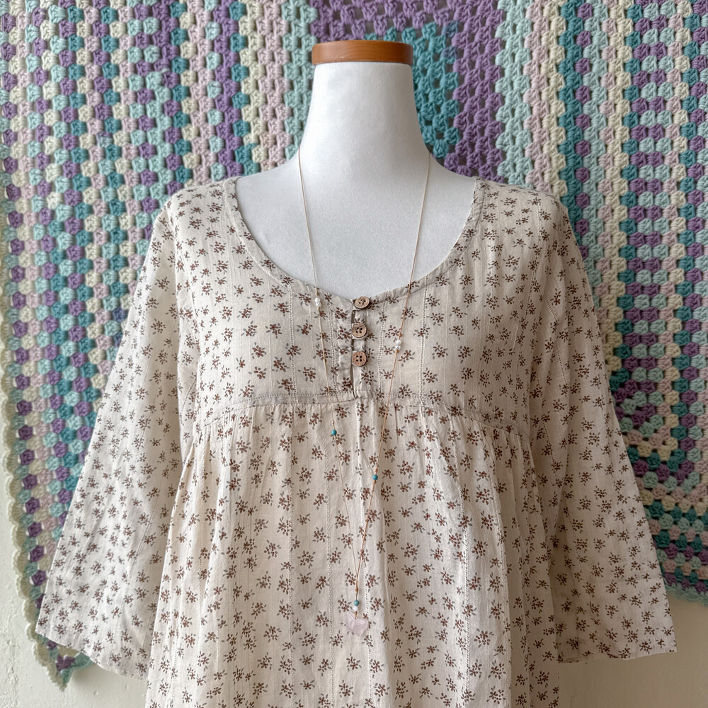 오트밀 베이지 색감의 잔꽃 블라우스예요