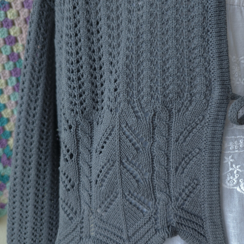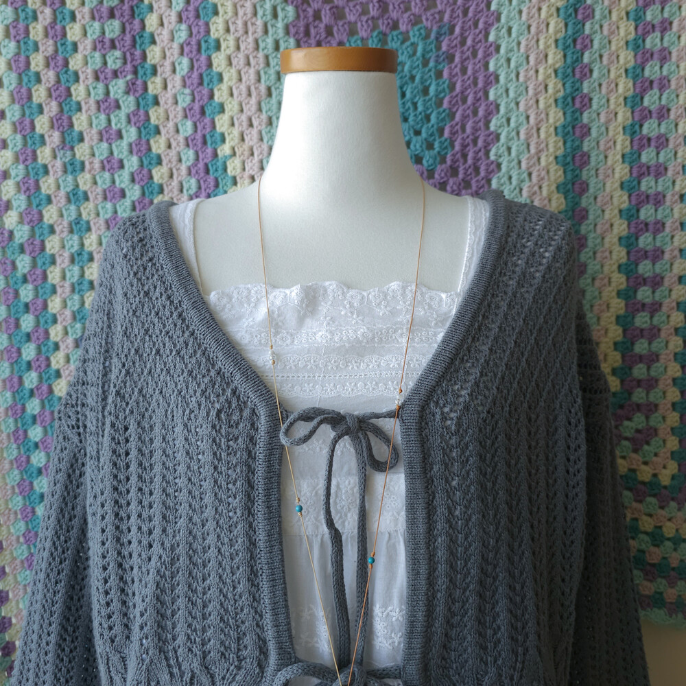 어두운 웜네이비(+먹색 약간 섞임) 색감의 펀칭 가디건이에요