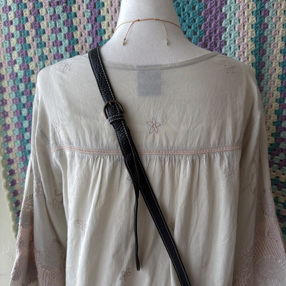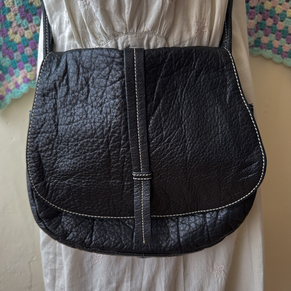black leather stitch basic cross bag