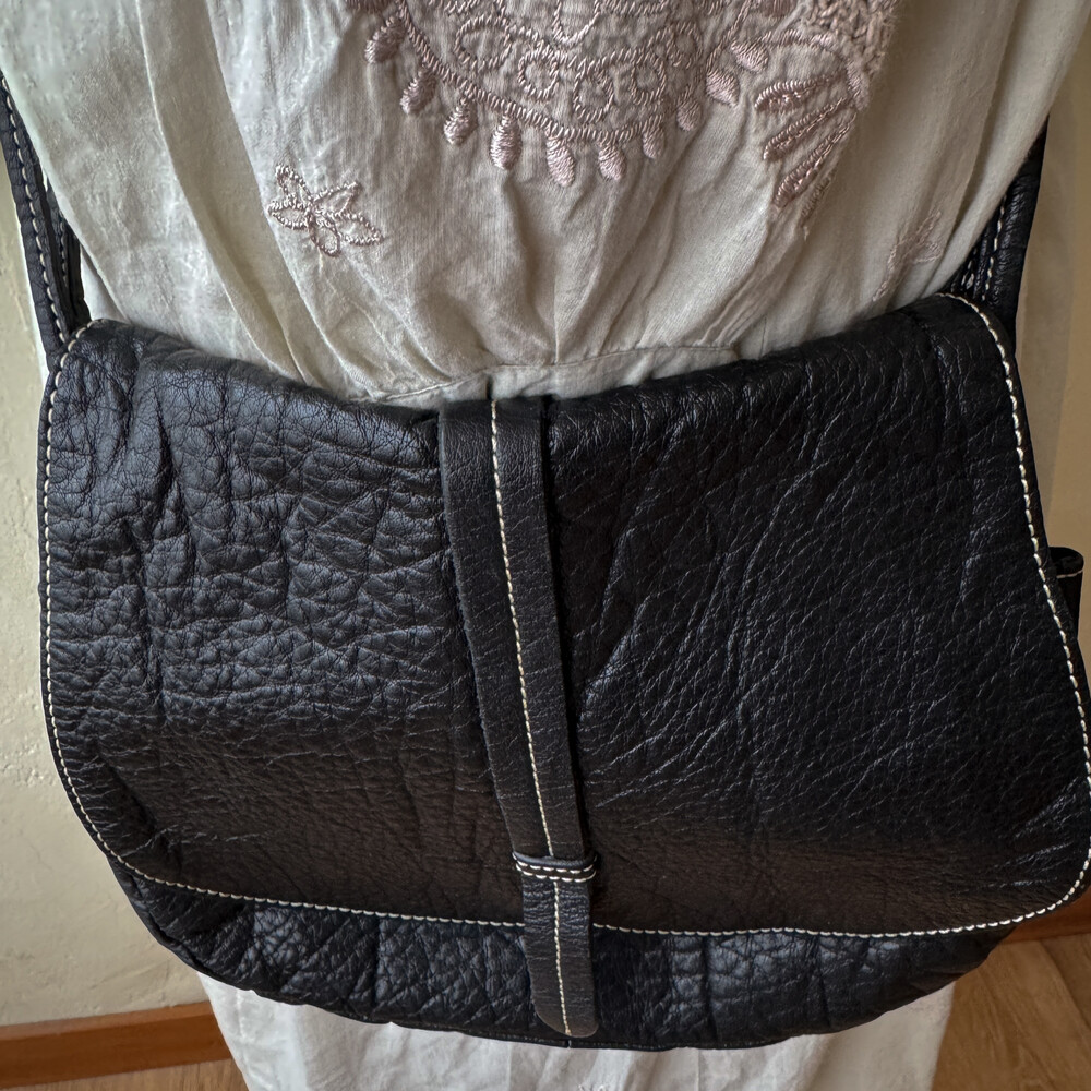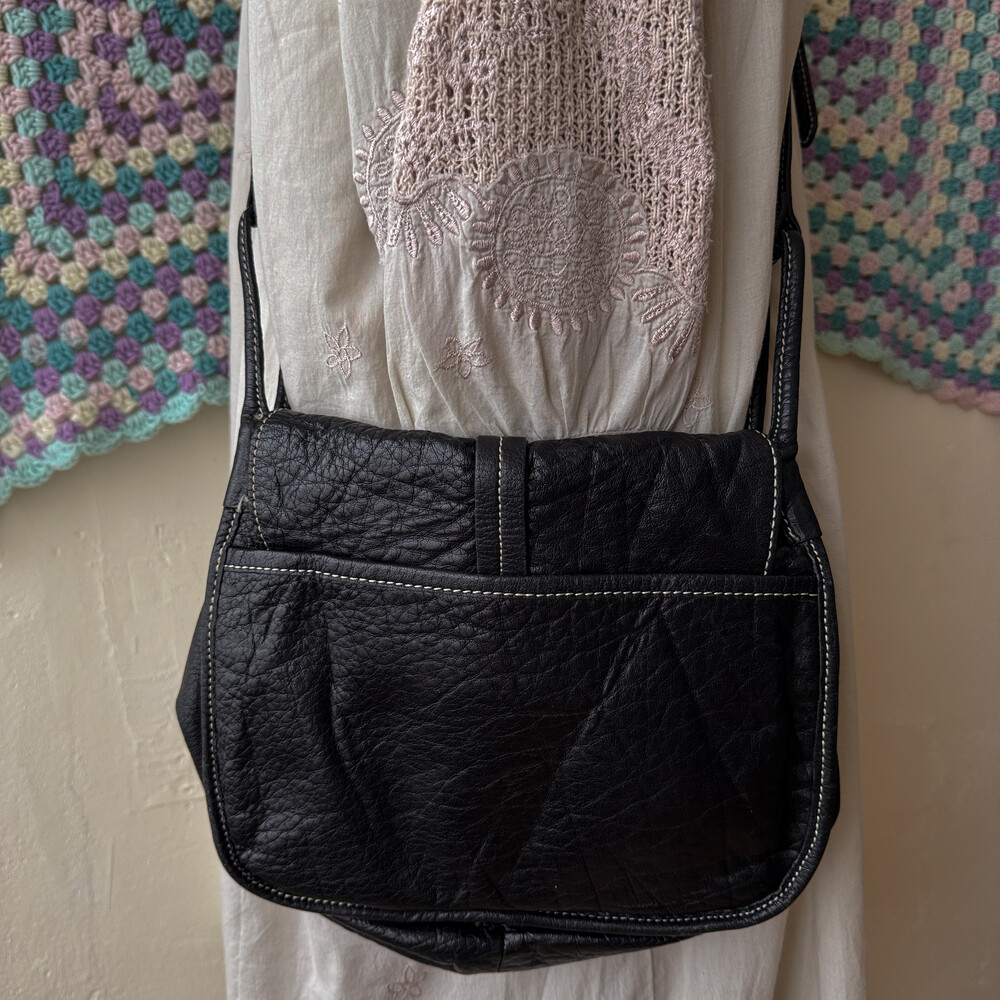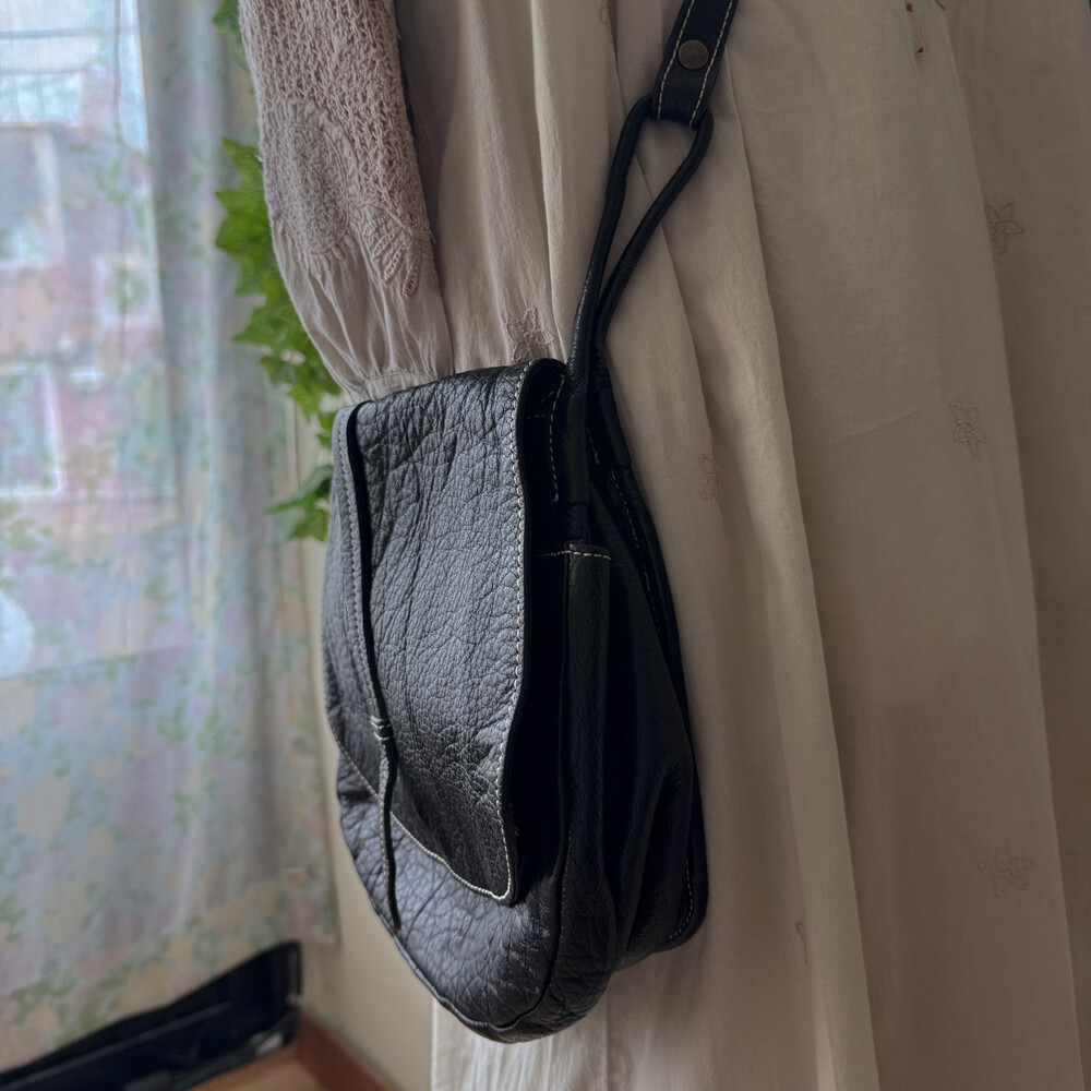 블랙 색감의 소가죽 크로스백이에요