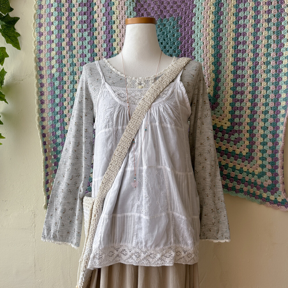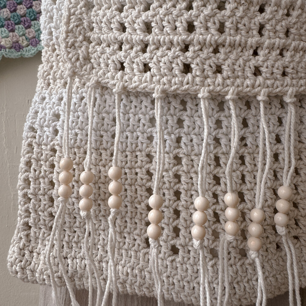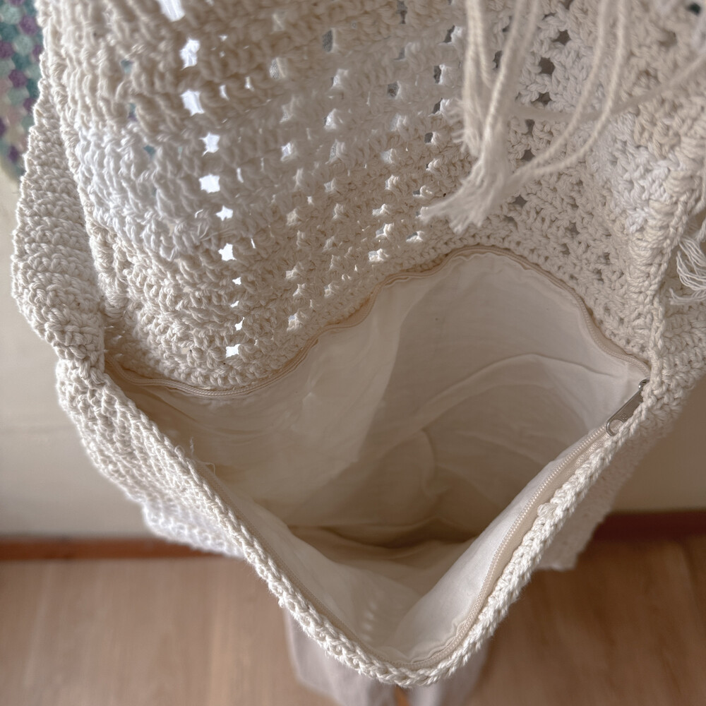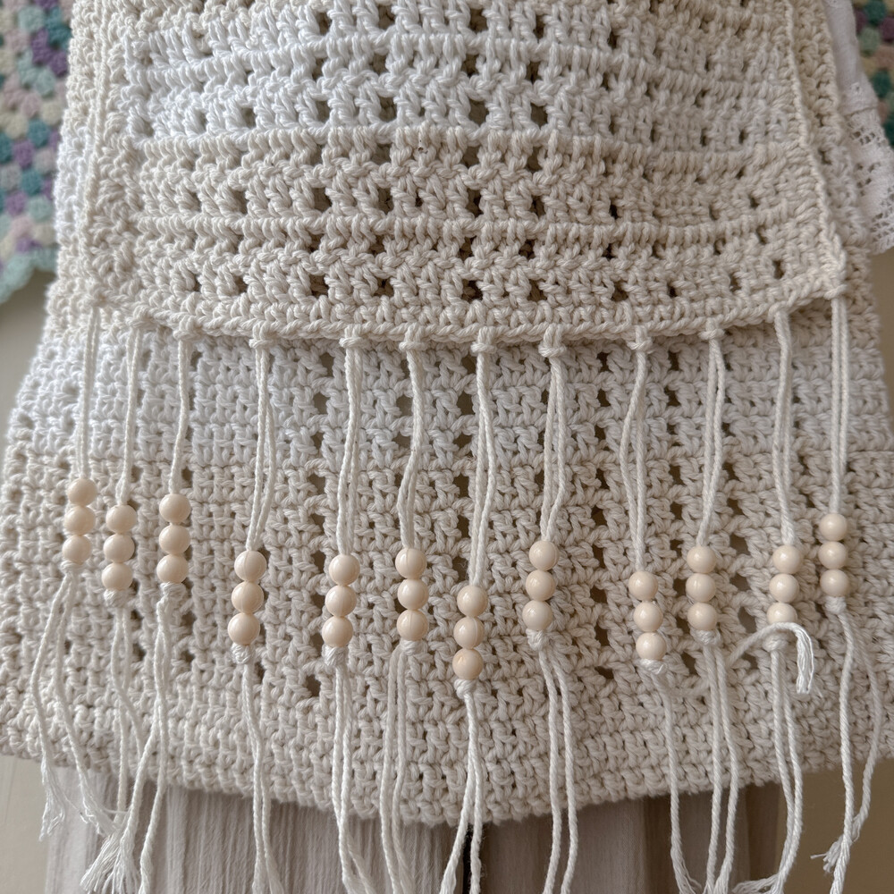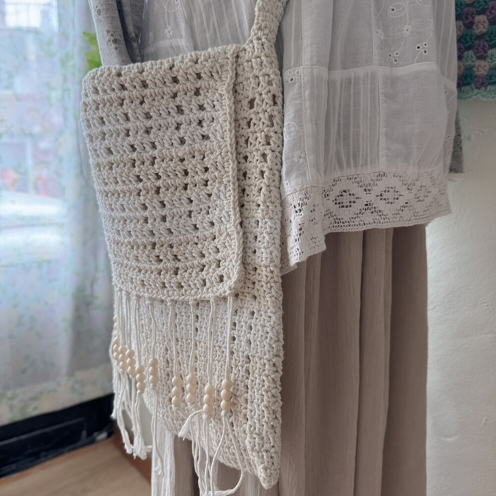 milk&beige crochet tassel cross bag