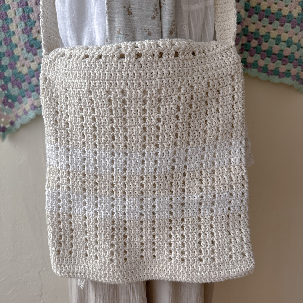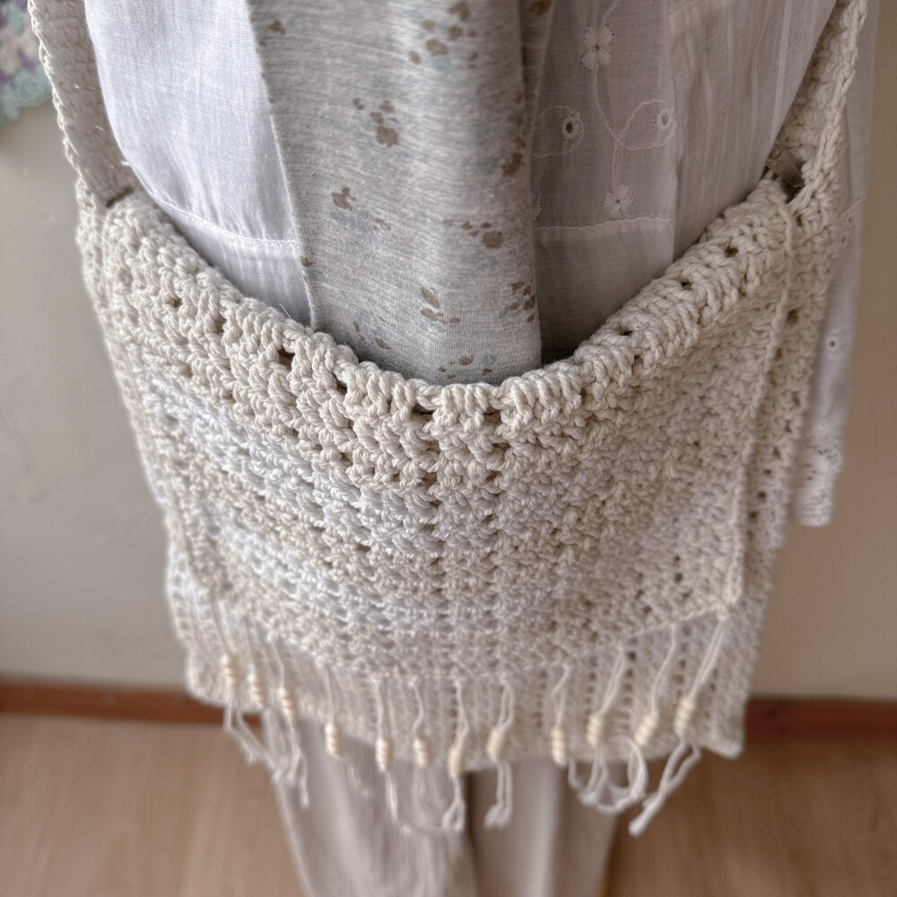 밀크색과 연베이지 색감 조합의 크로셰 크로스백이에요