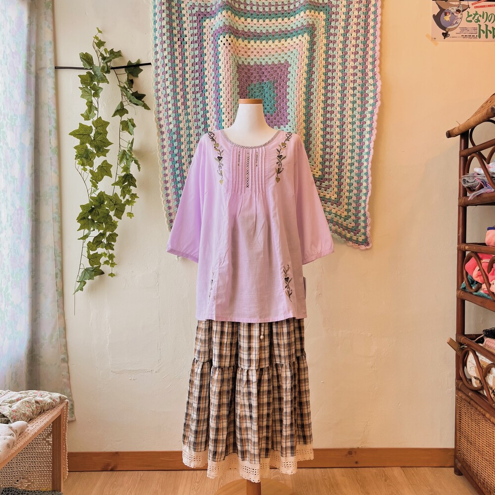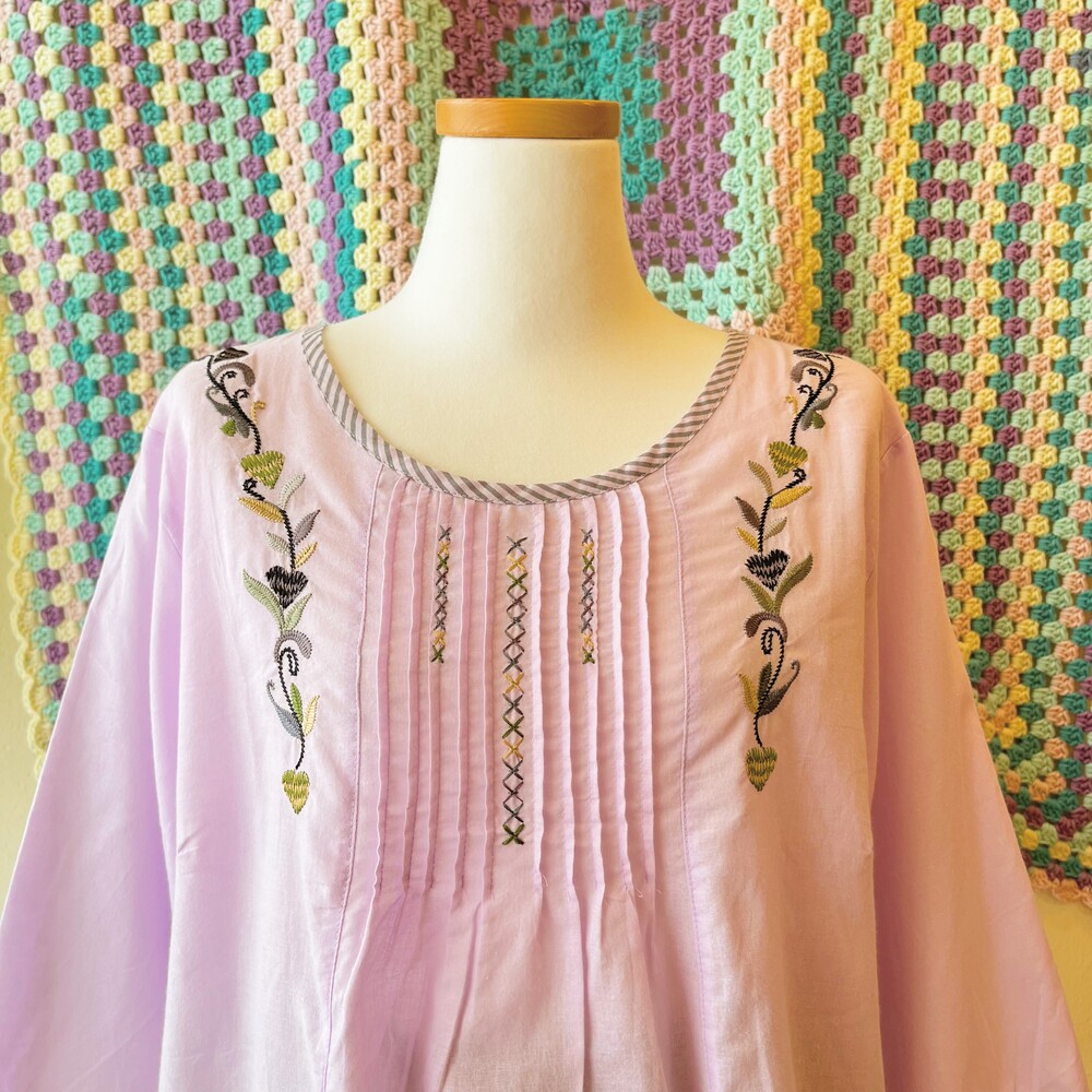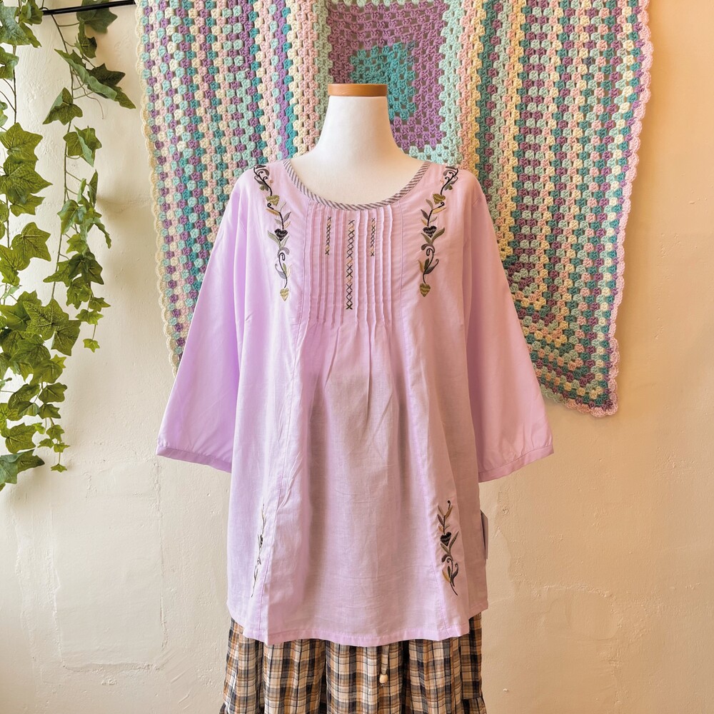 purple pintuck embroidery long bl