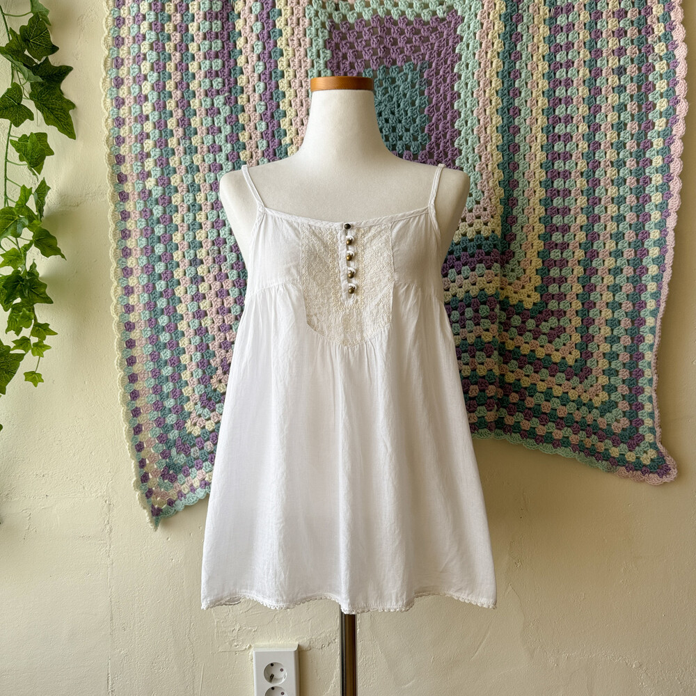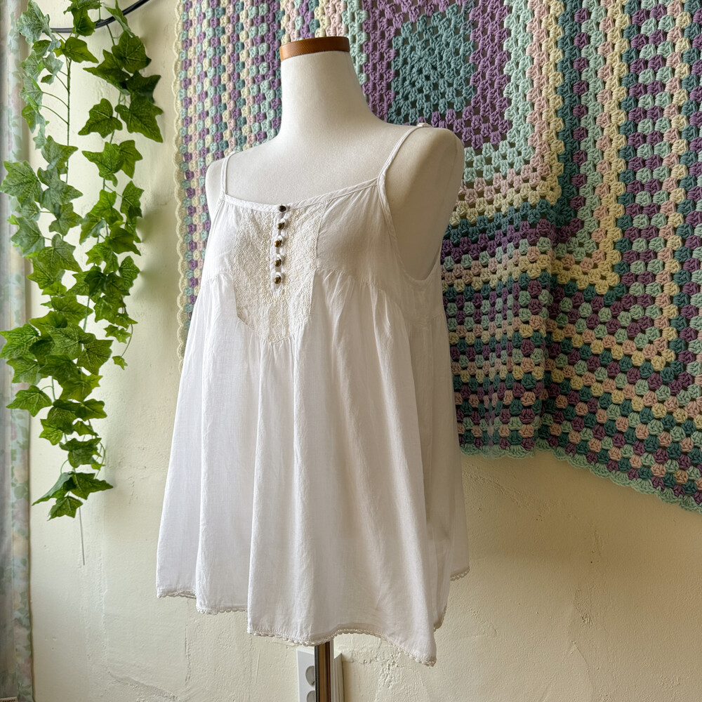 white chest embroidery sleeveless bl