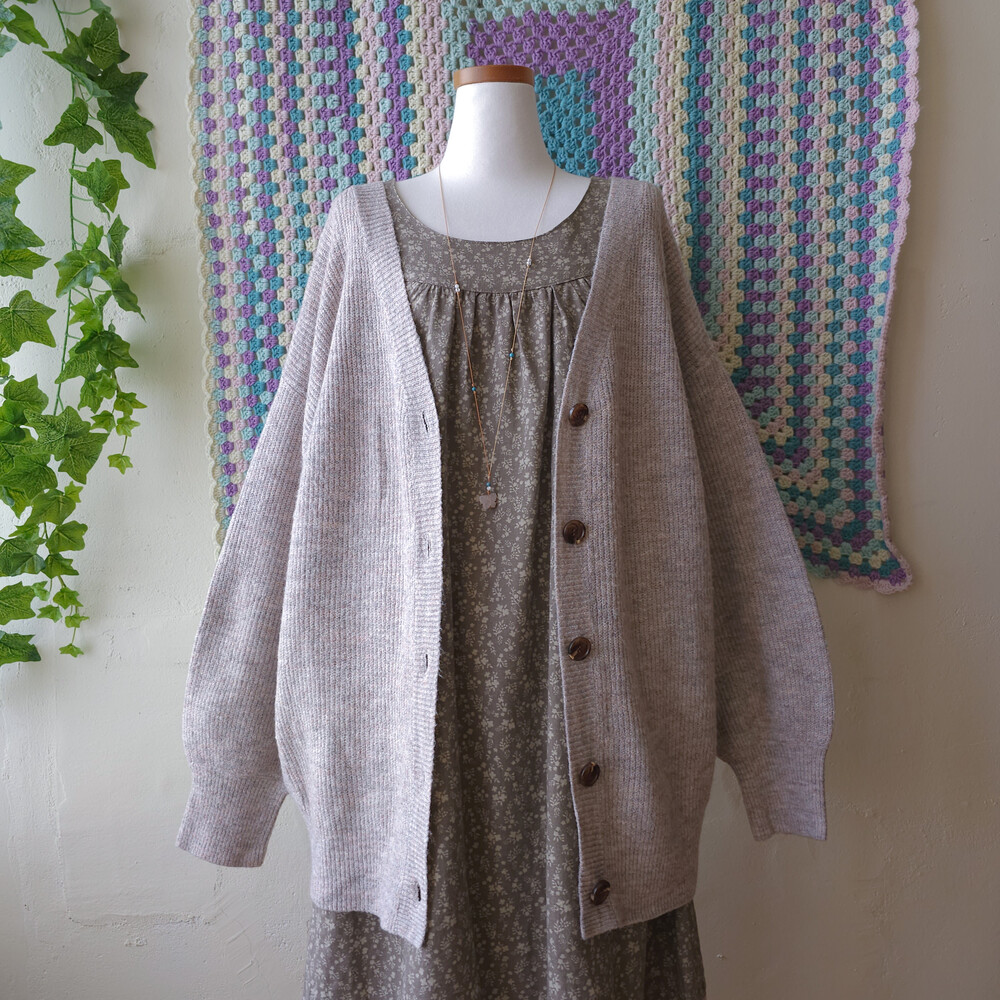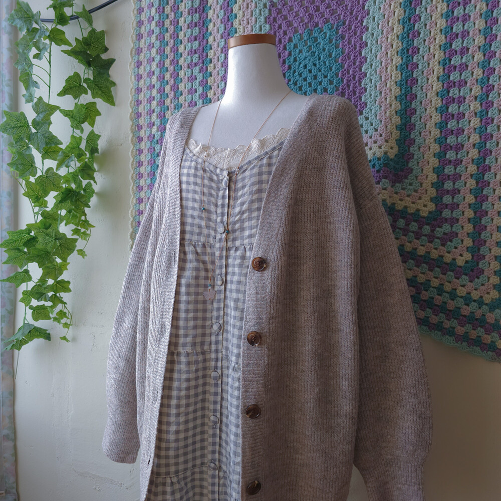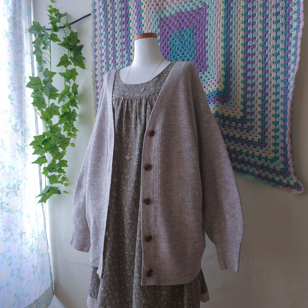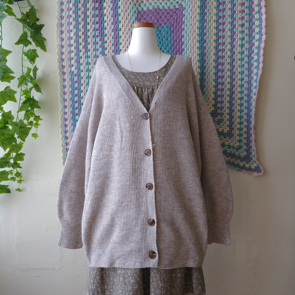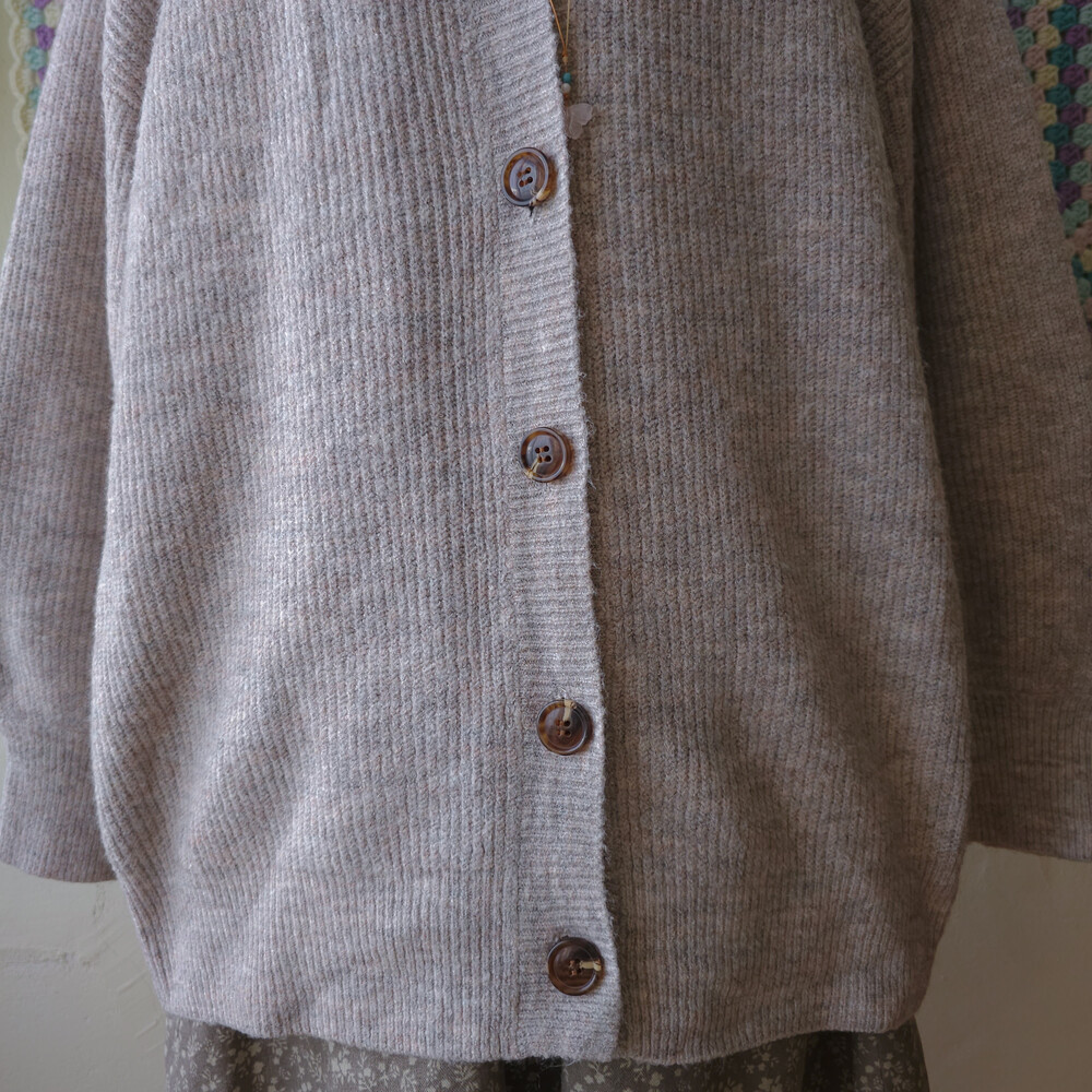 웜한 핑크와 그레이가 믹스된 색감의 가디건이에요
