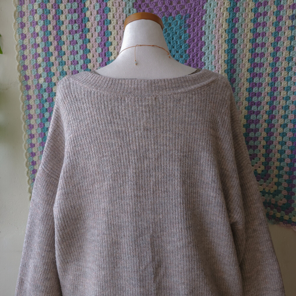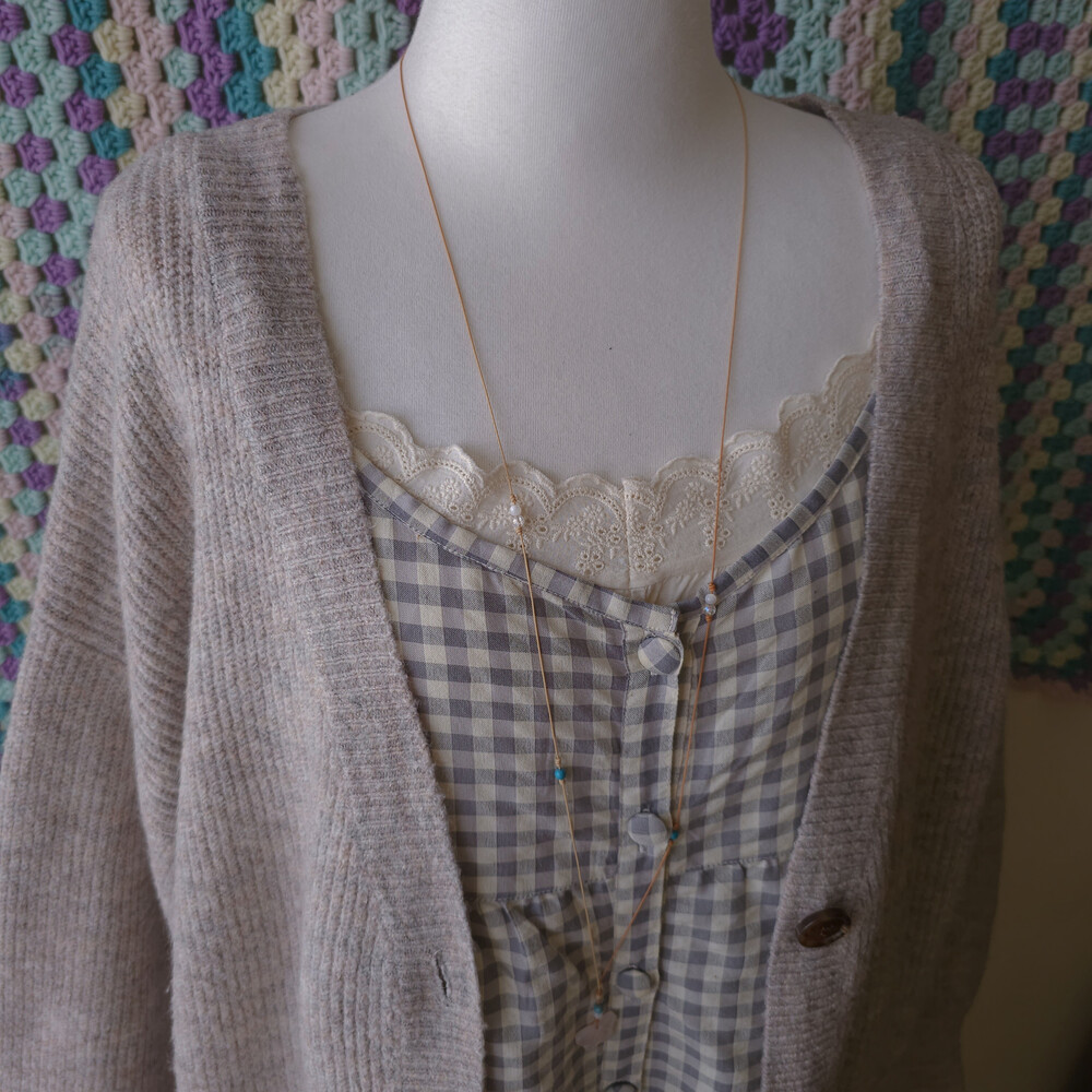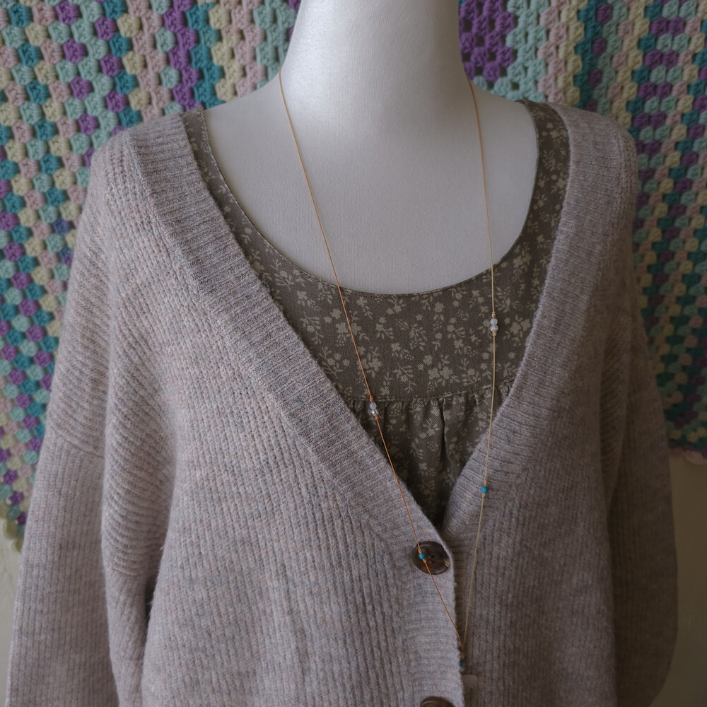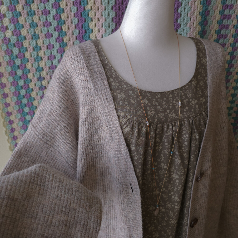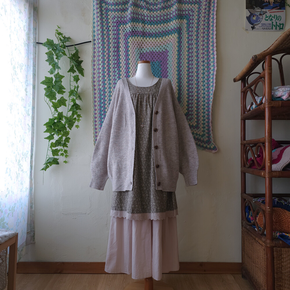 웜한 핑크와 그레이가 믹스된 색감의 가디건이에요