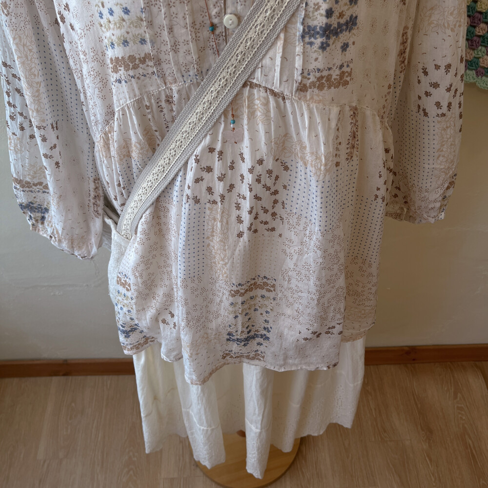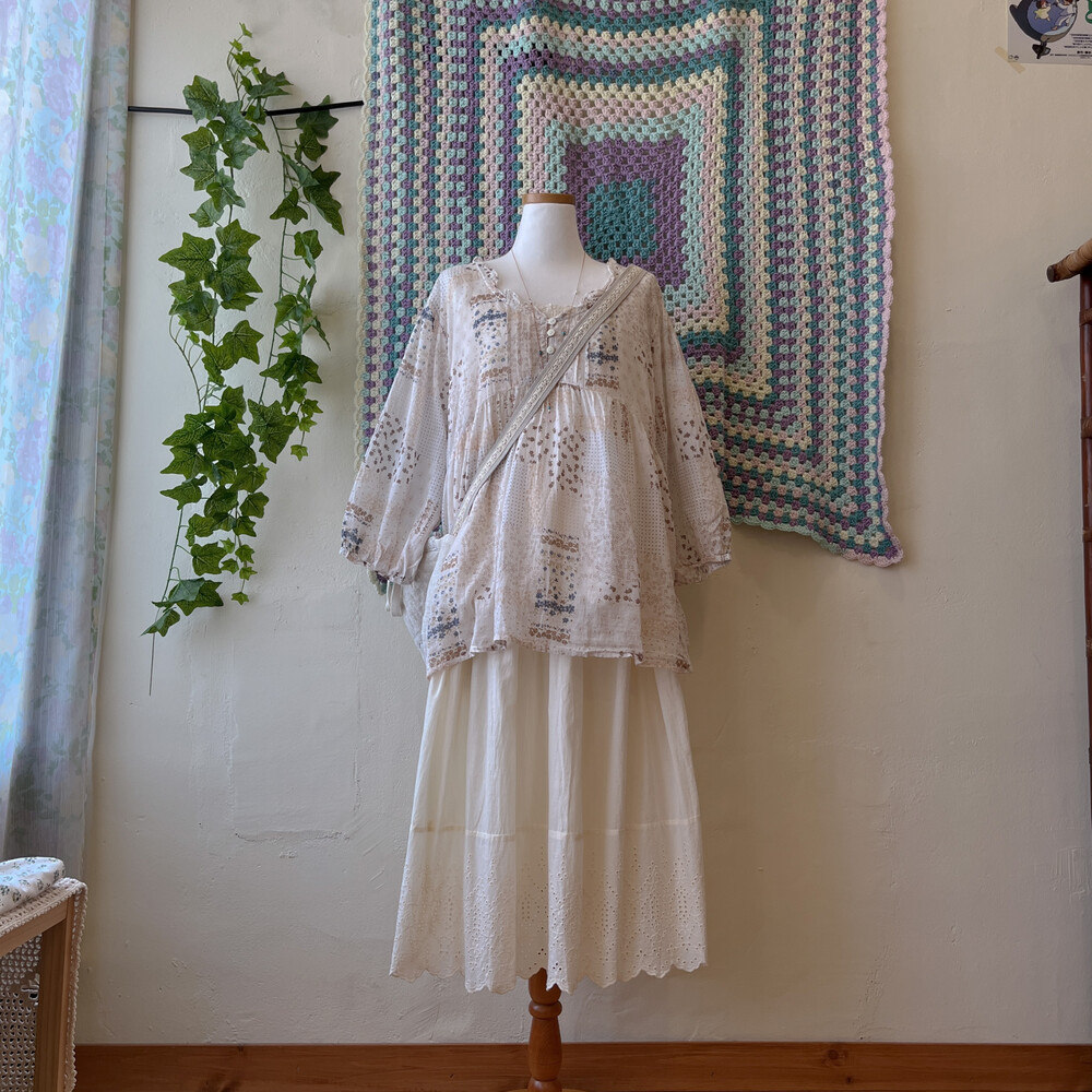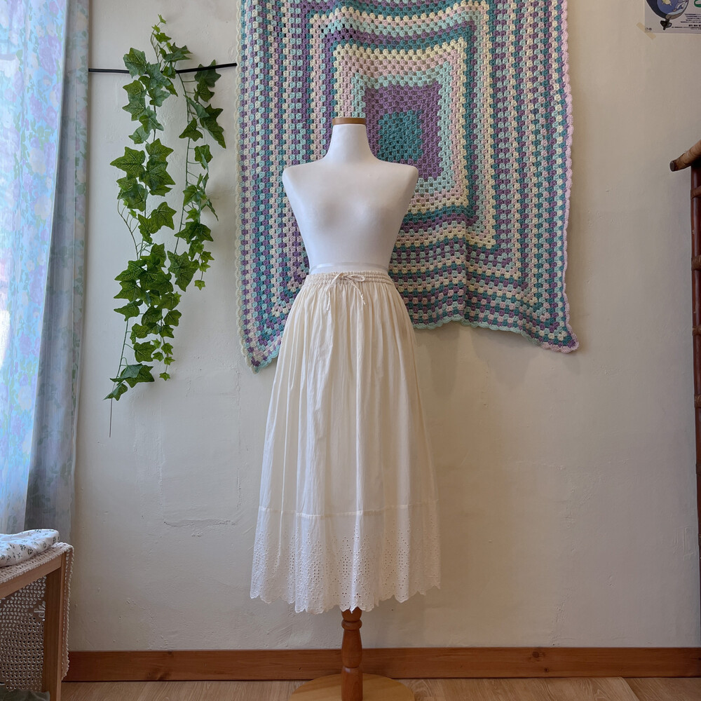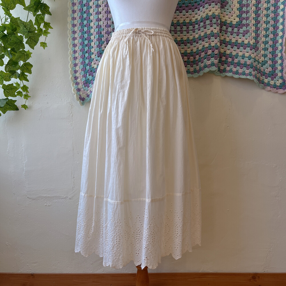 아이보리 색감의 밑단 펀칭 코튼 스커트예요