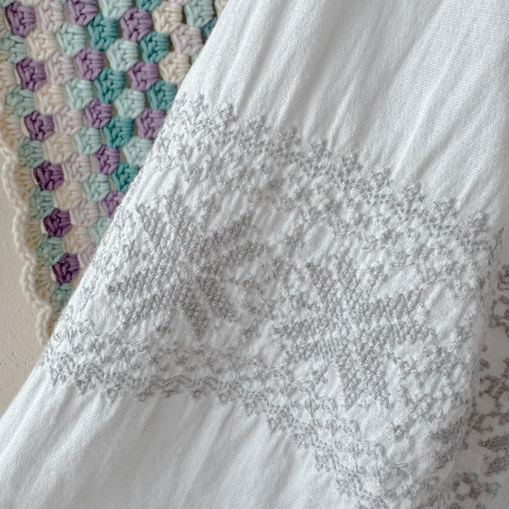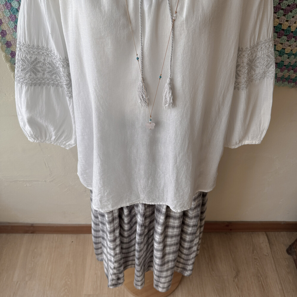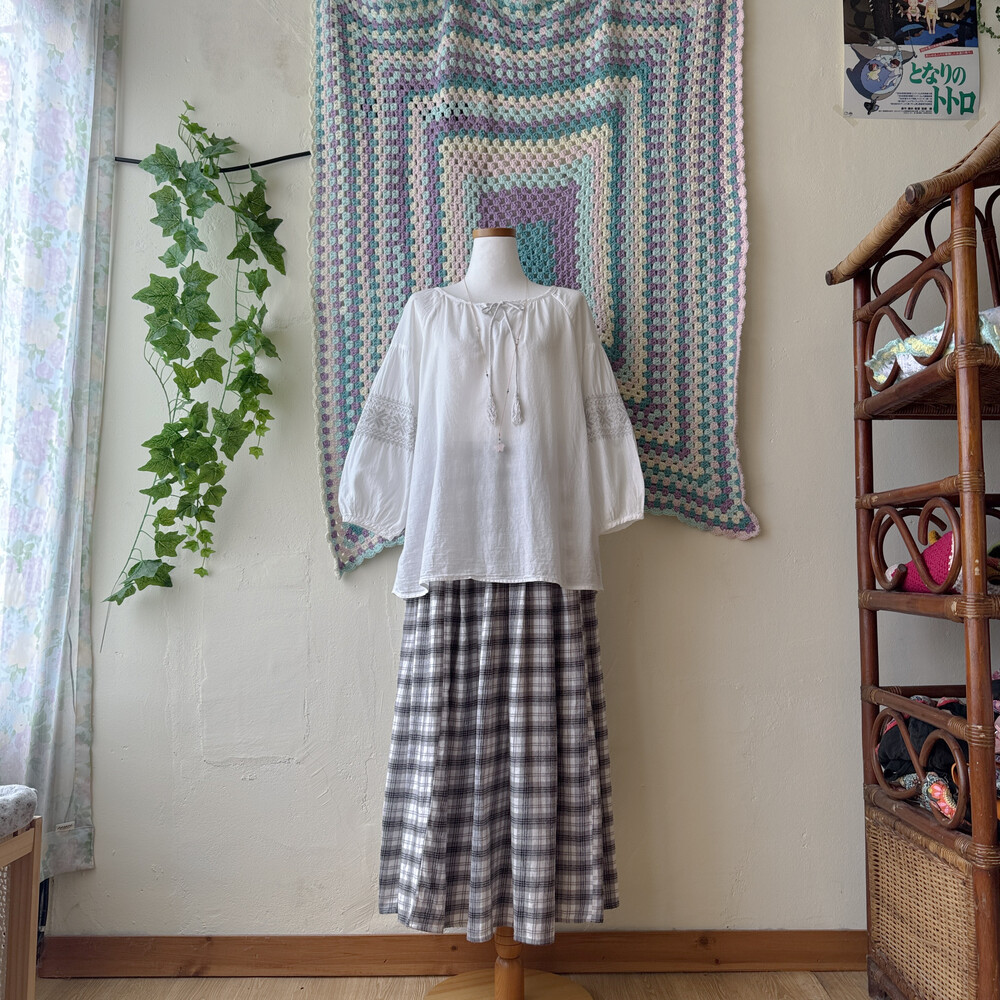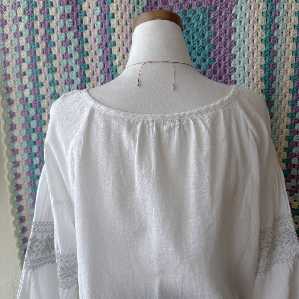 화이트 색감의 자수 포인트 블라우스예요