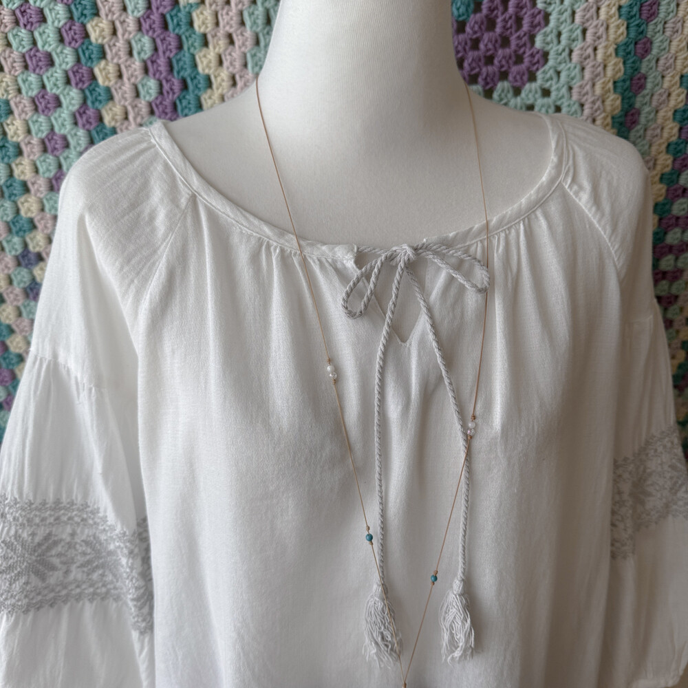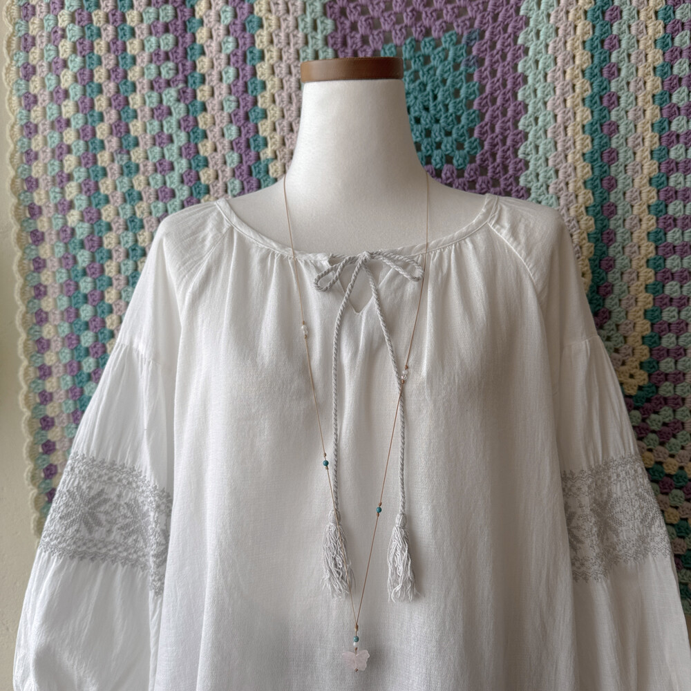 gray embroidery&tassel ribbon point bl