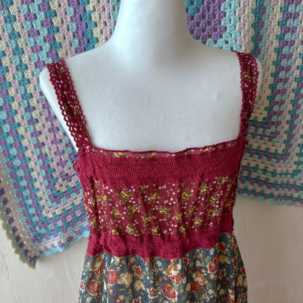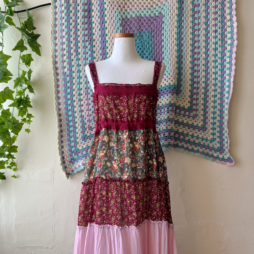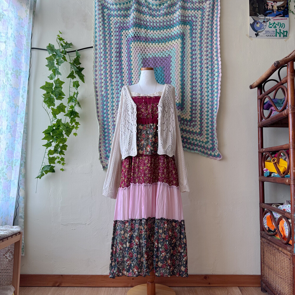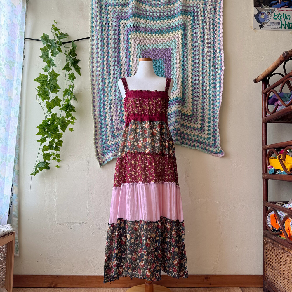 꽃무늬 패턴의 패치 끈원피스예요