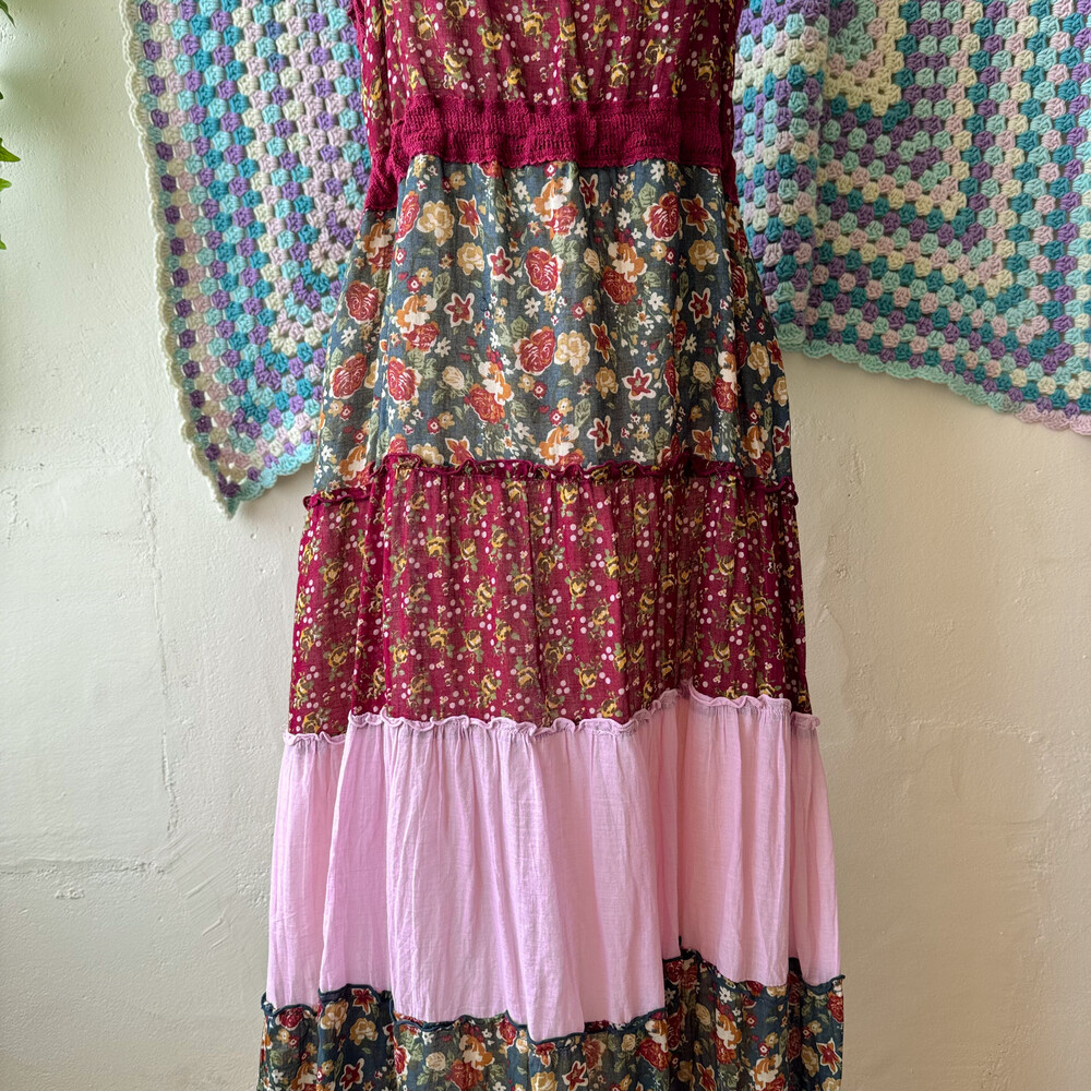 rose&pink flower frill patch ops