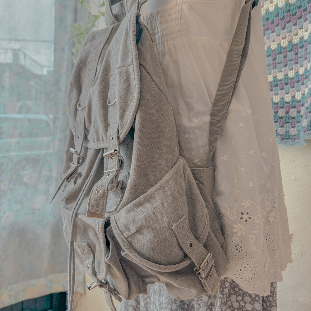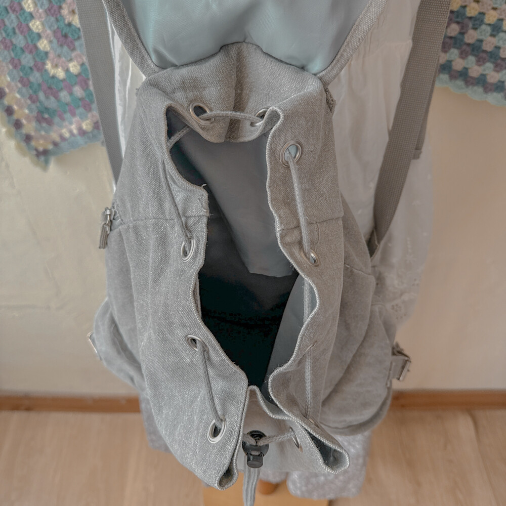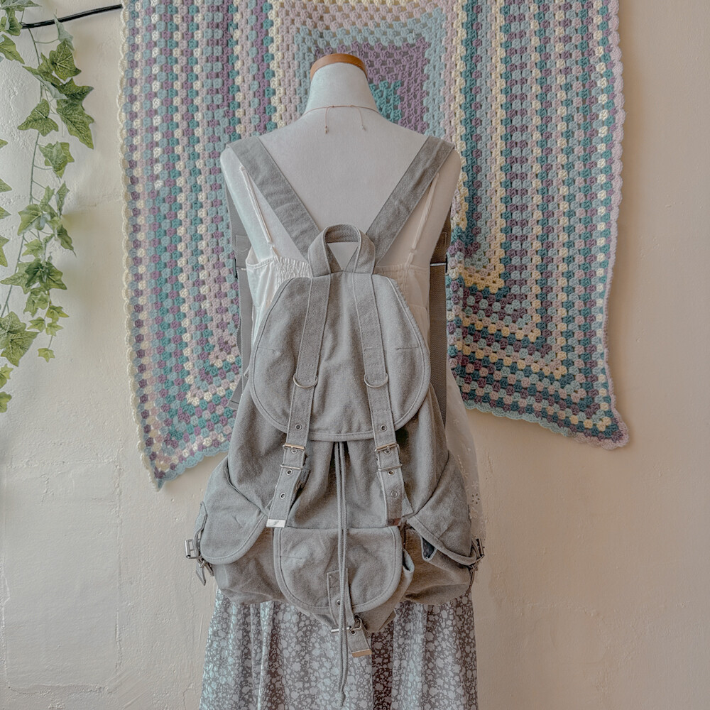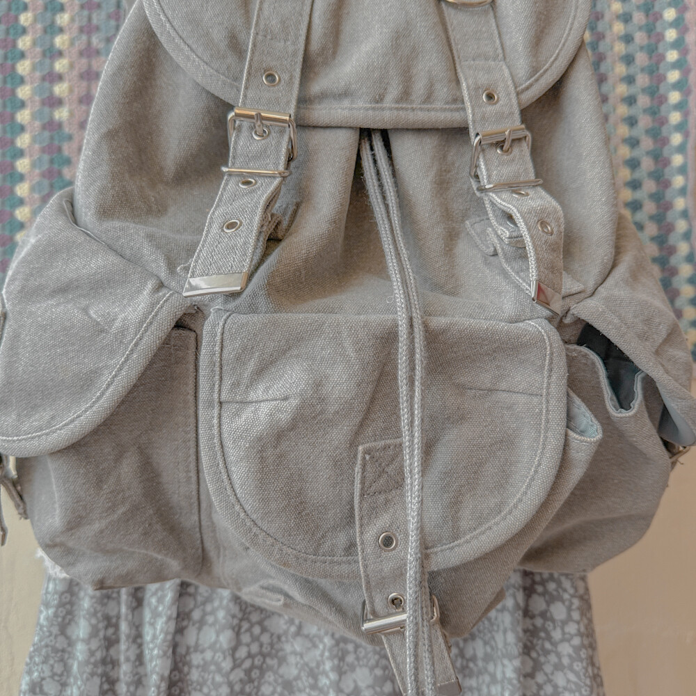 연그레이 색감의 3포켓 캔버스 백팩이에요