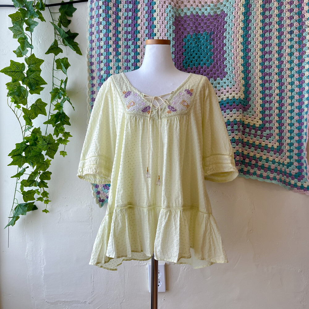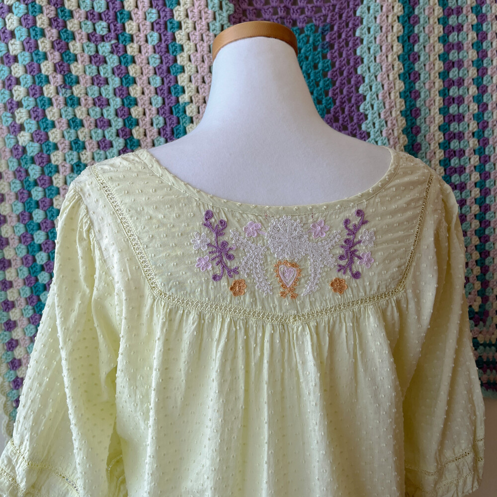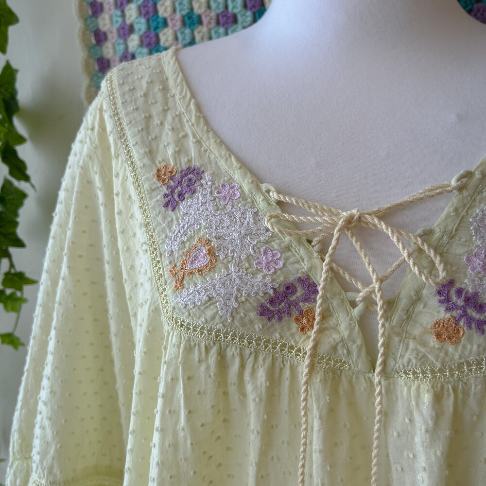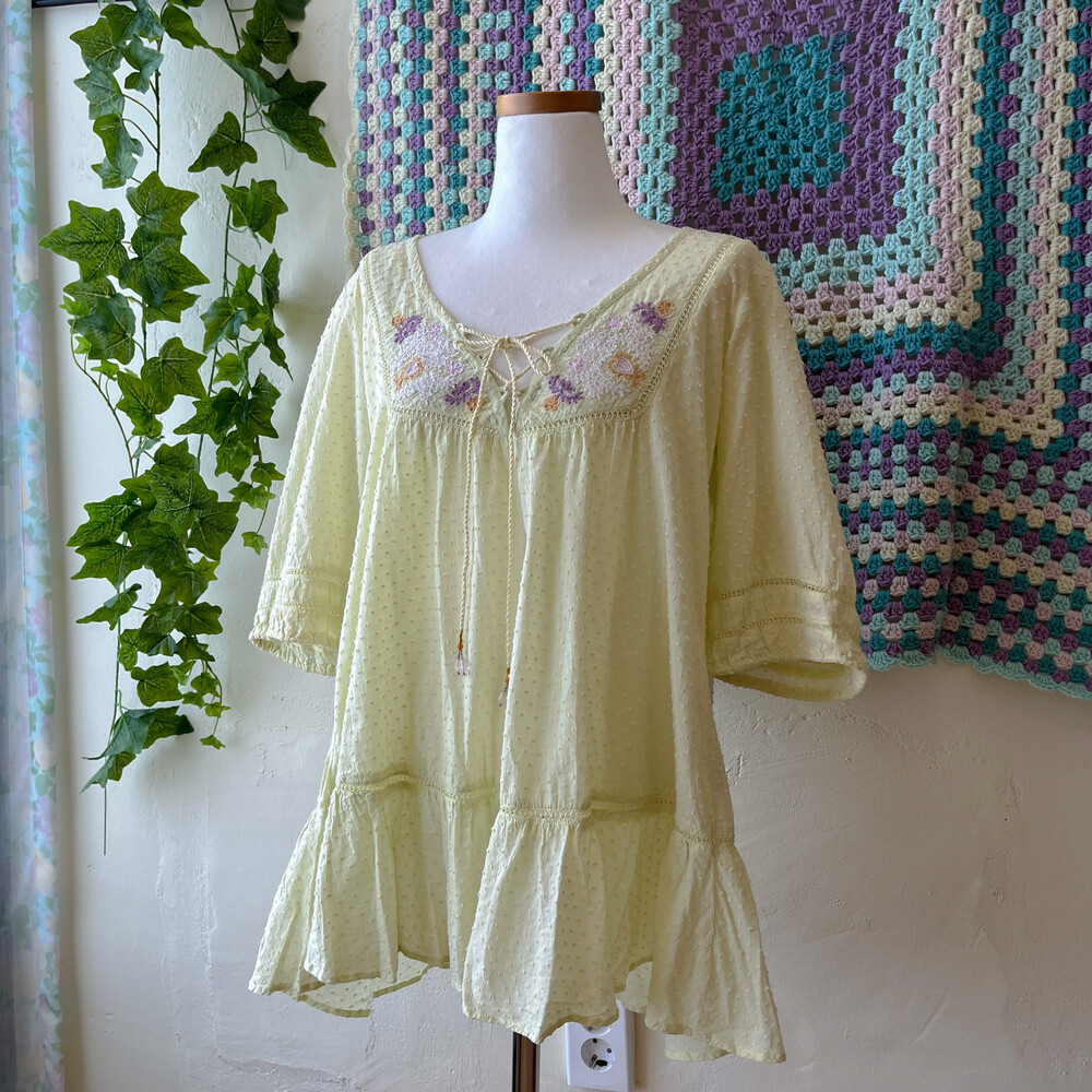 연두색의 자수 아일렛 코튼 블라우스예요