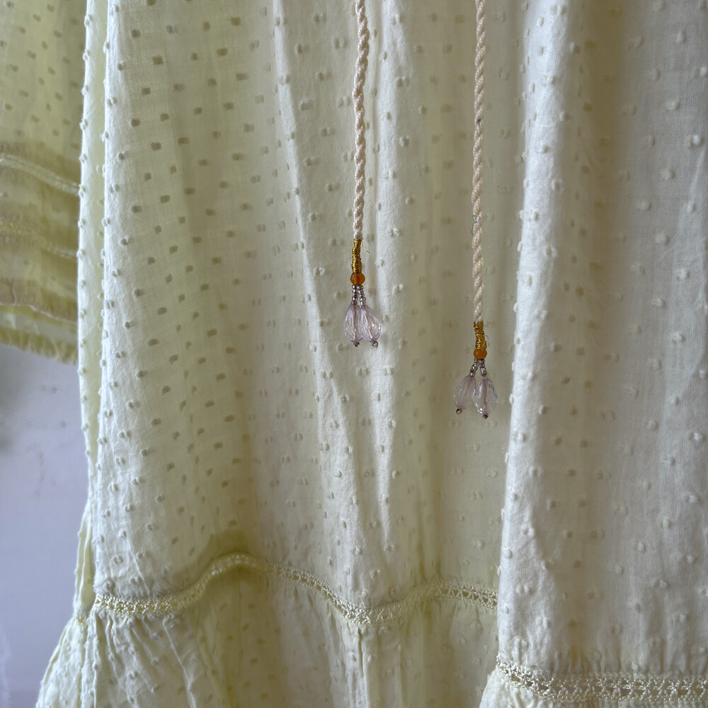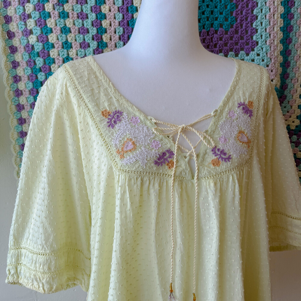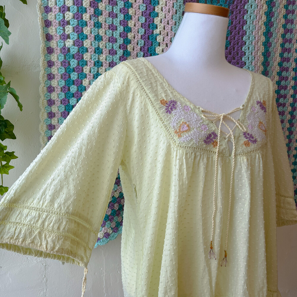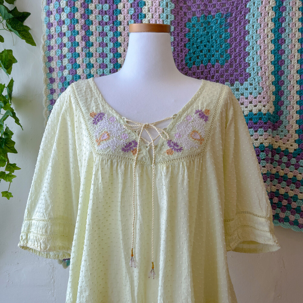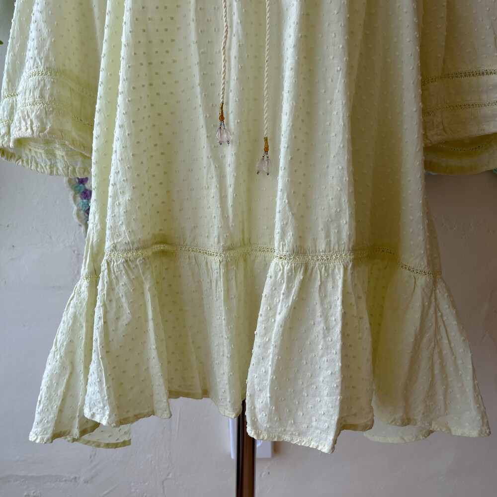 연두색의 자수 아일렛 코튼 블라우스예요