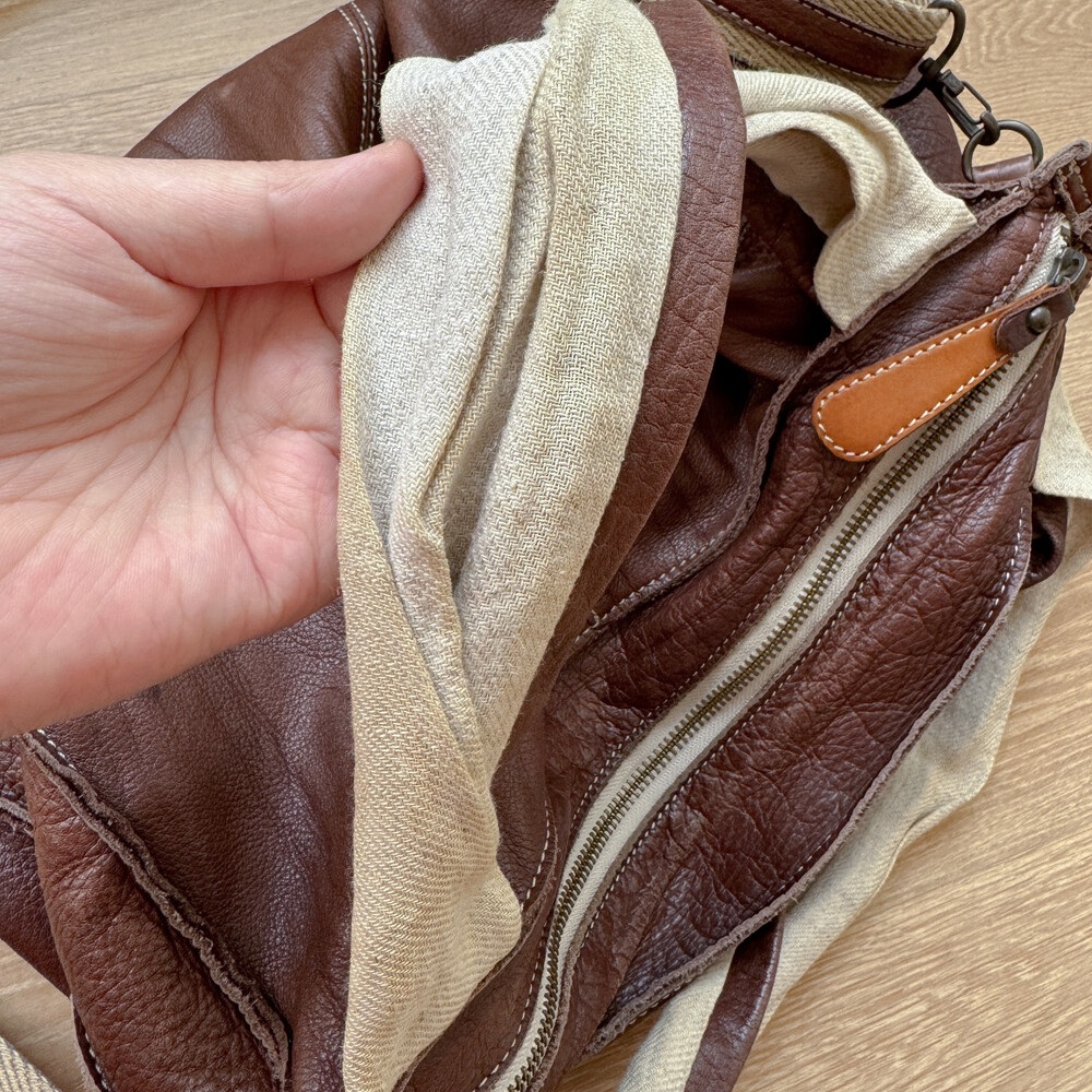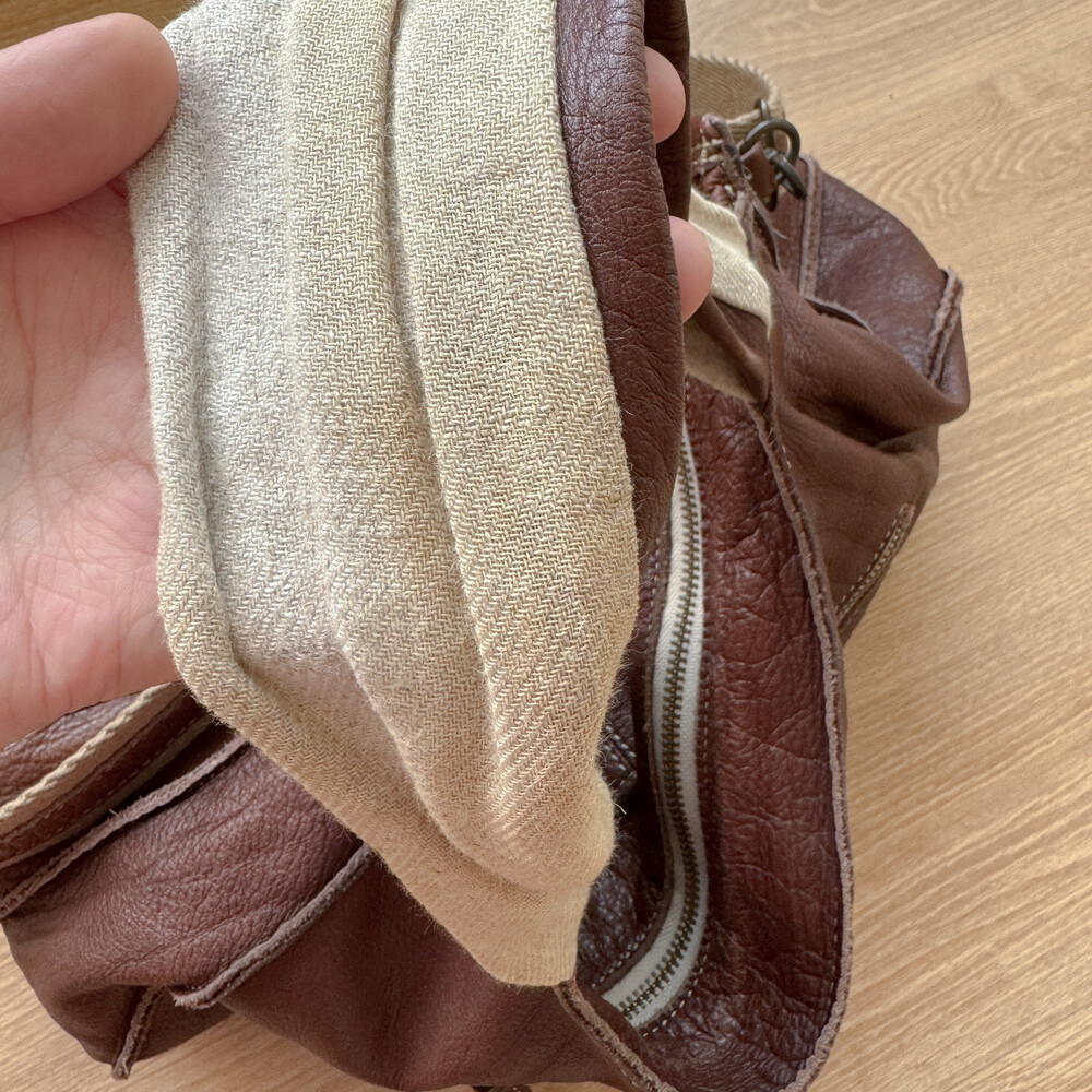 가방 윗 쪽 핸디끈 부분에 전체적으로 때탄 오염이 있어요