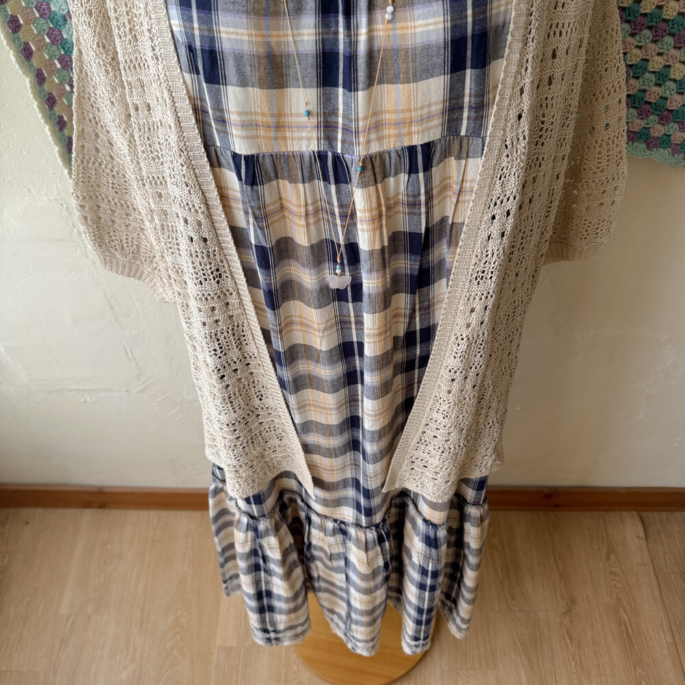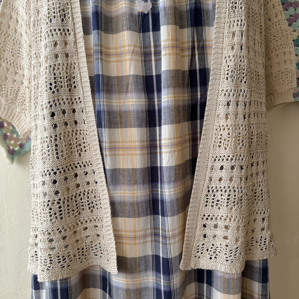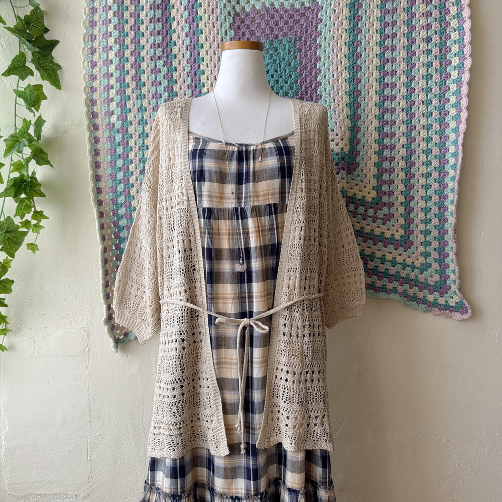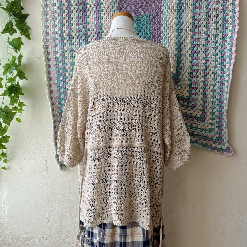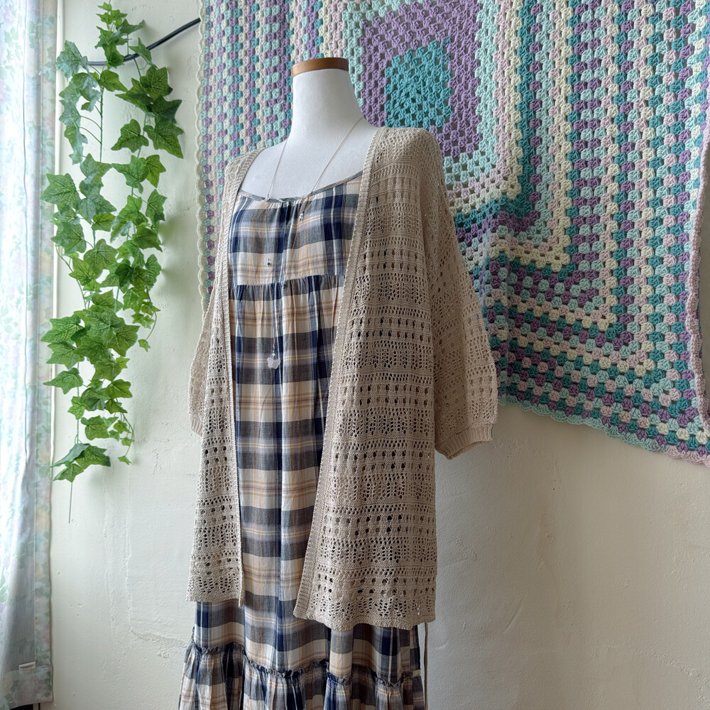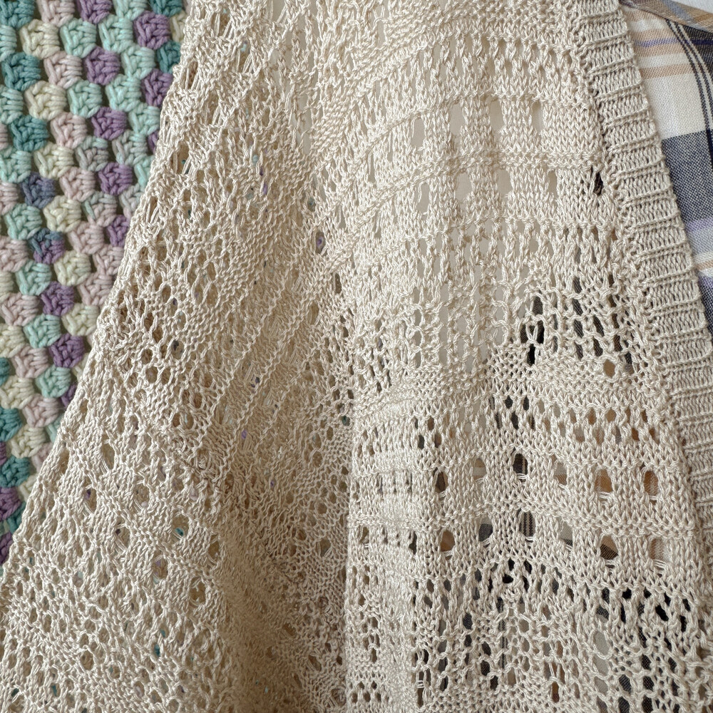 베이지 색감의 펀칭 크로셰 가디건이에요