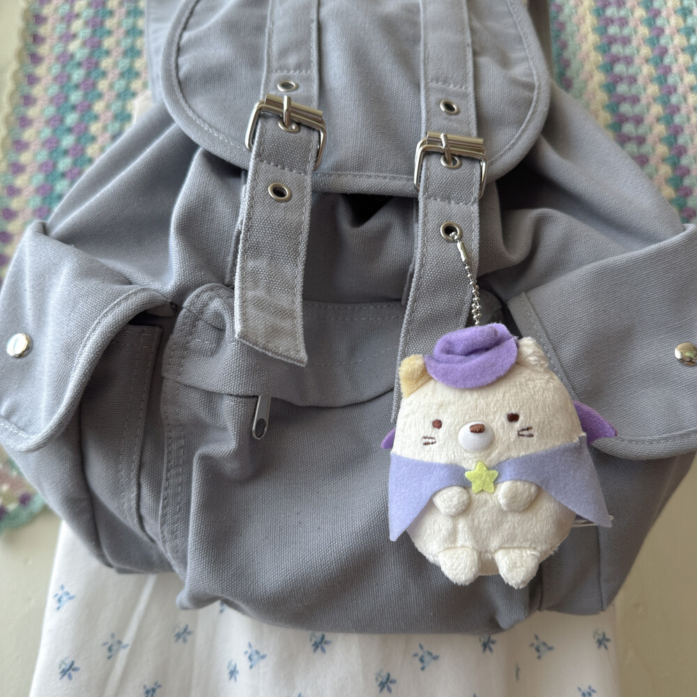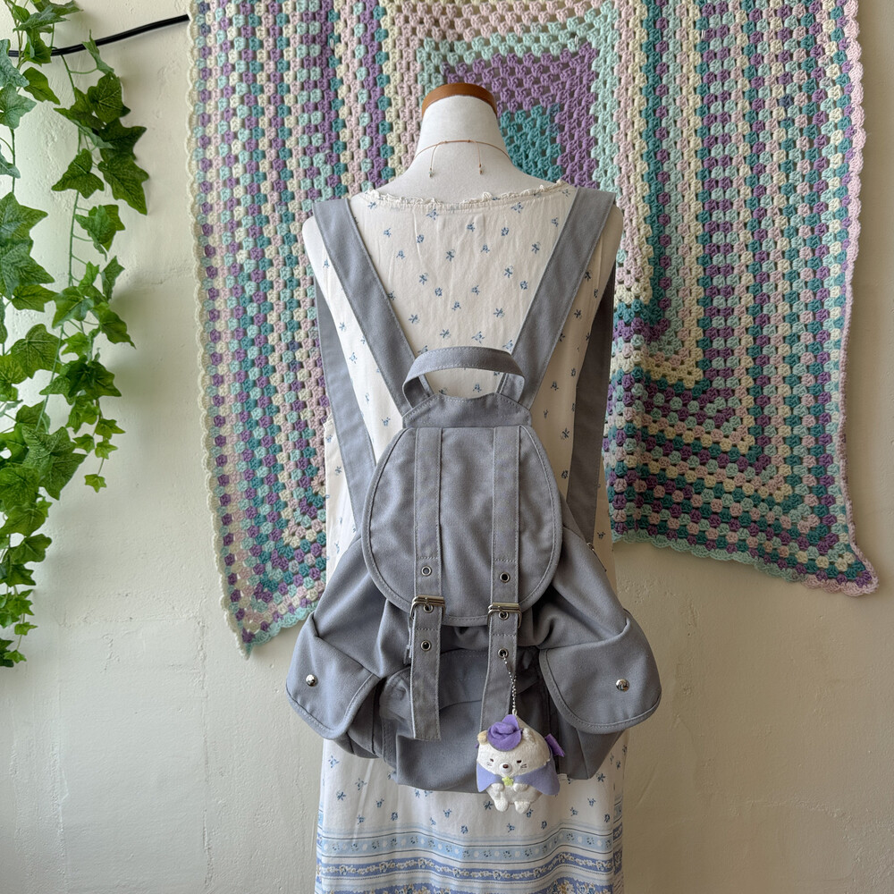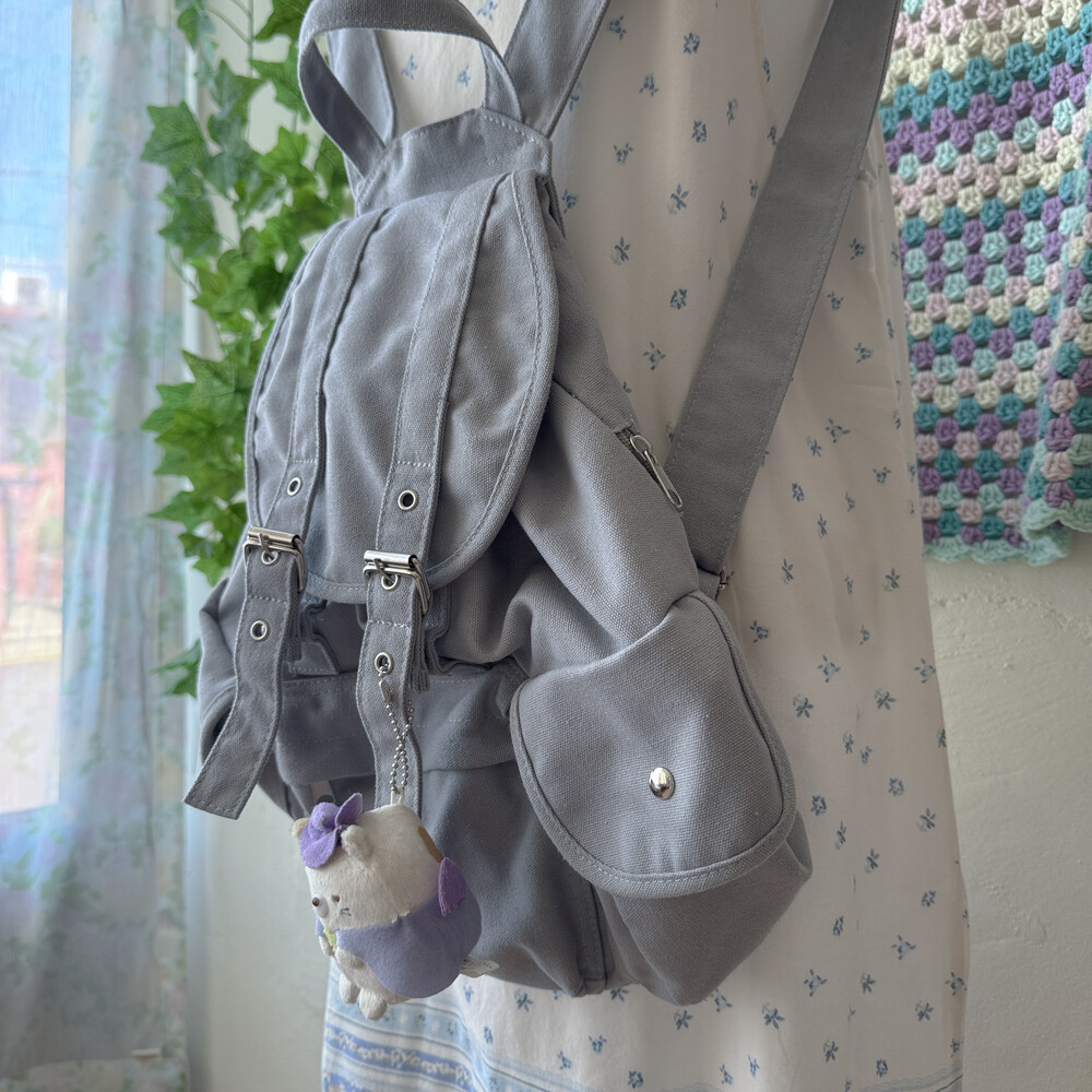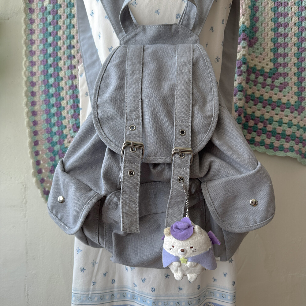 그레이 색감의 3포켓 백팩과 인형키링 세트예요