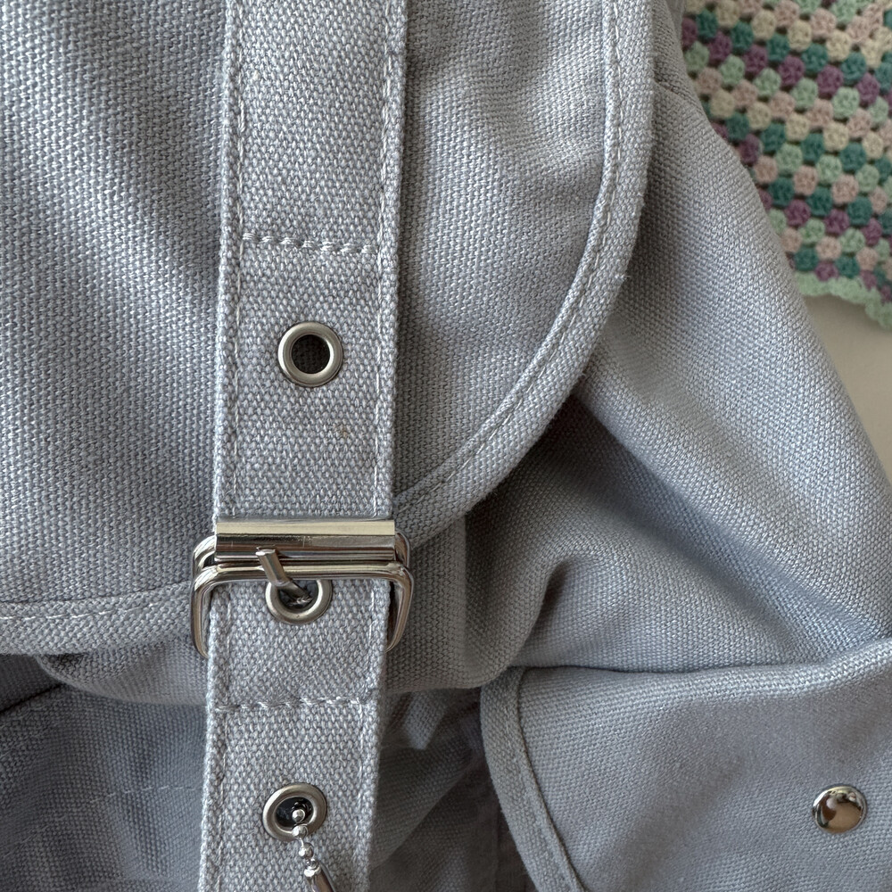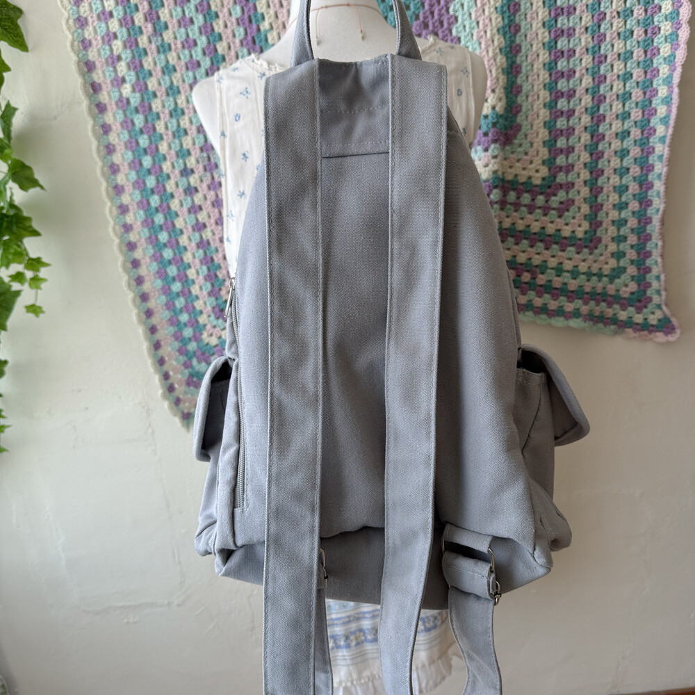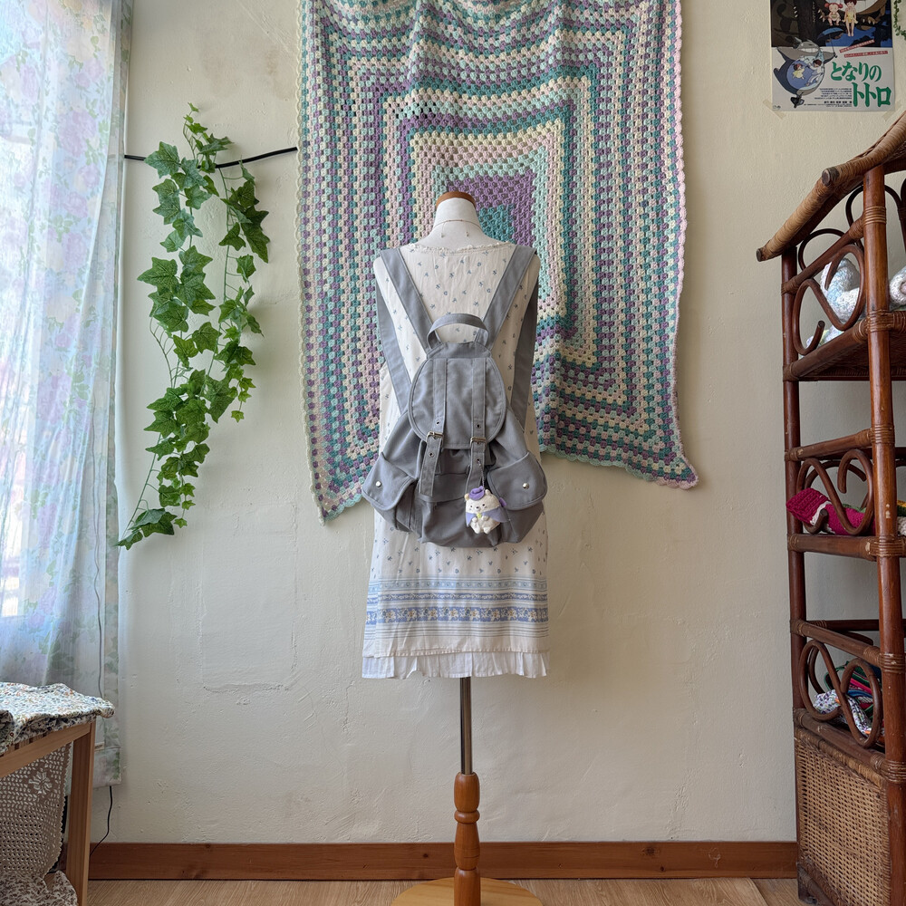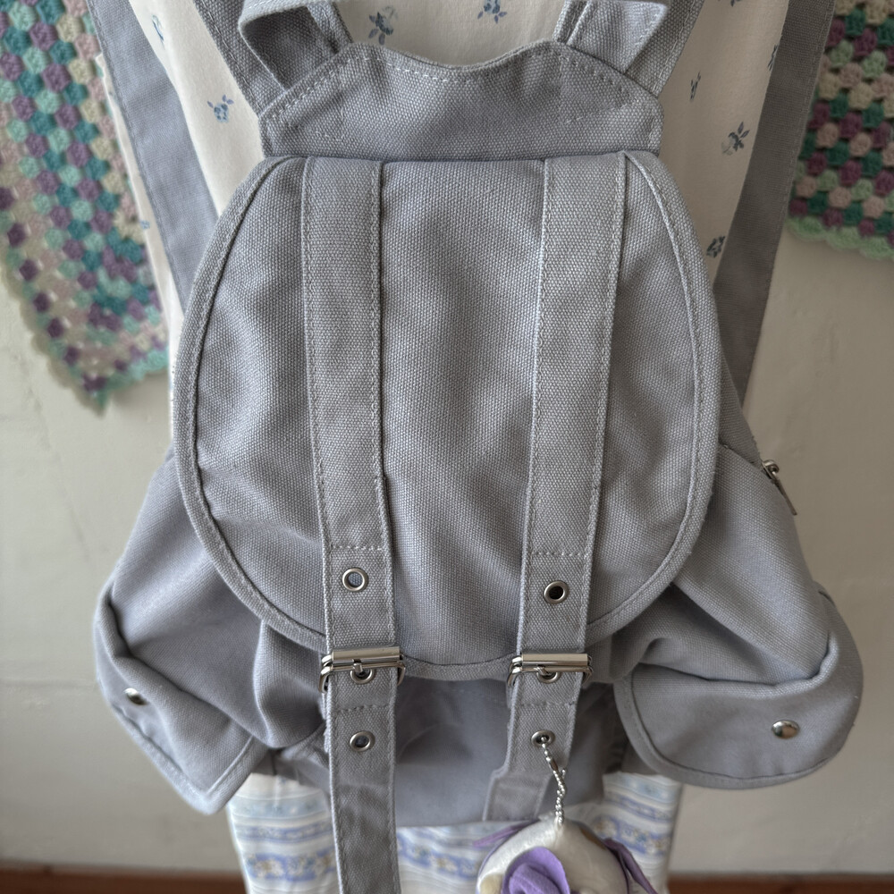 그레이 색감의 3포켓 백팩과 인형키링 세트예요