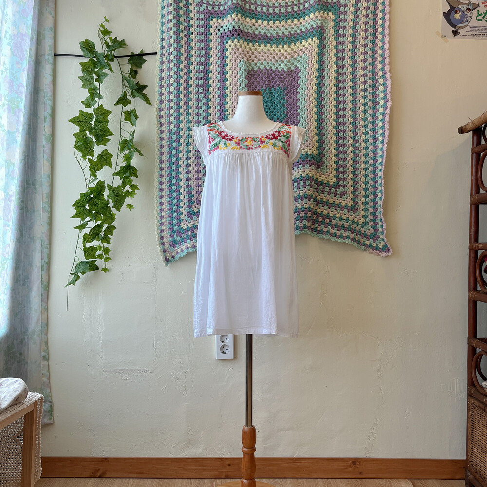 코튼 소재구요, 가슴 쪽에 모리모리한 자수들이 가득 들어가 있어요