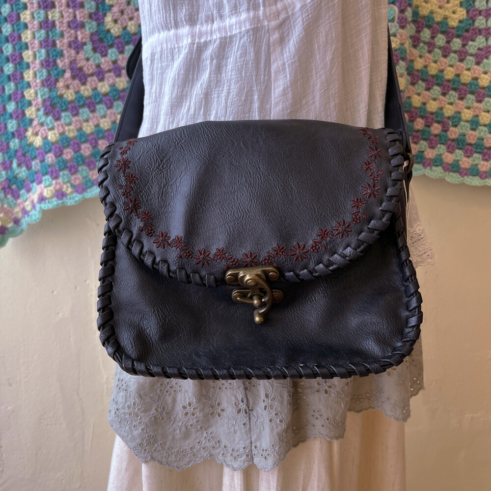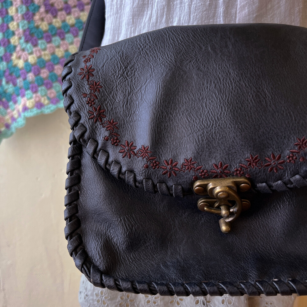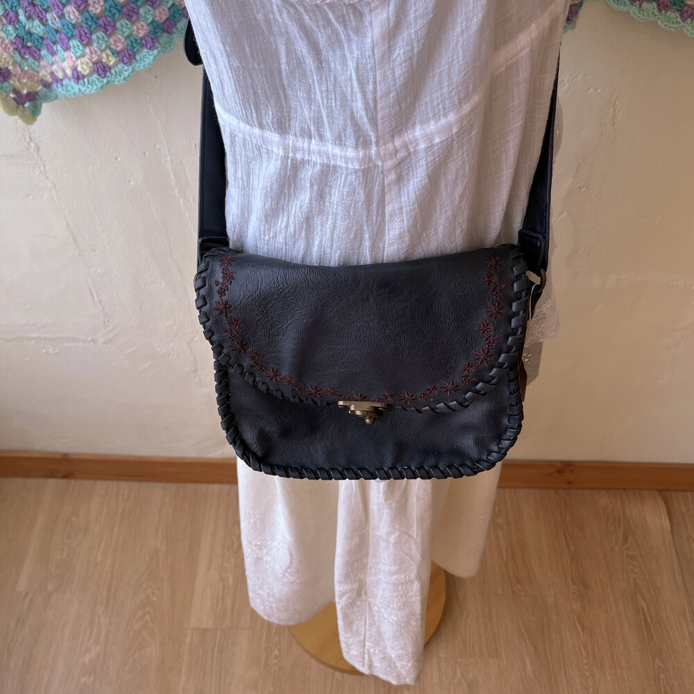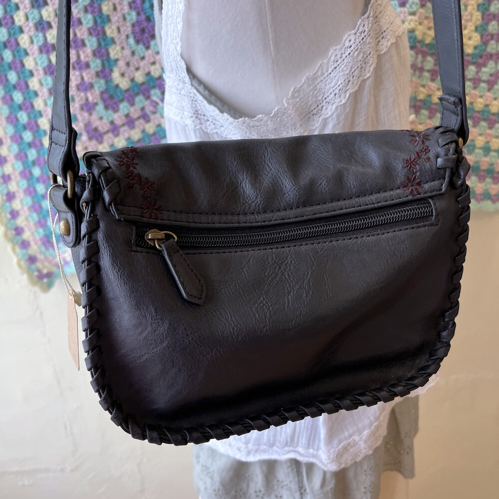 black twist embroidery cross bag