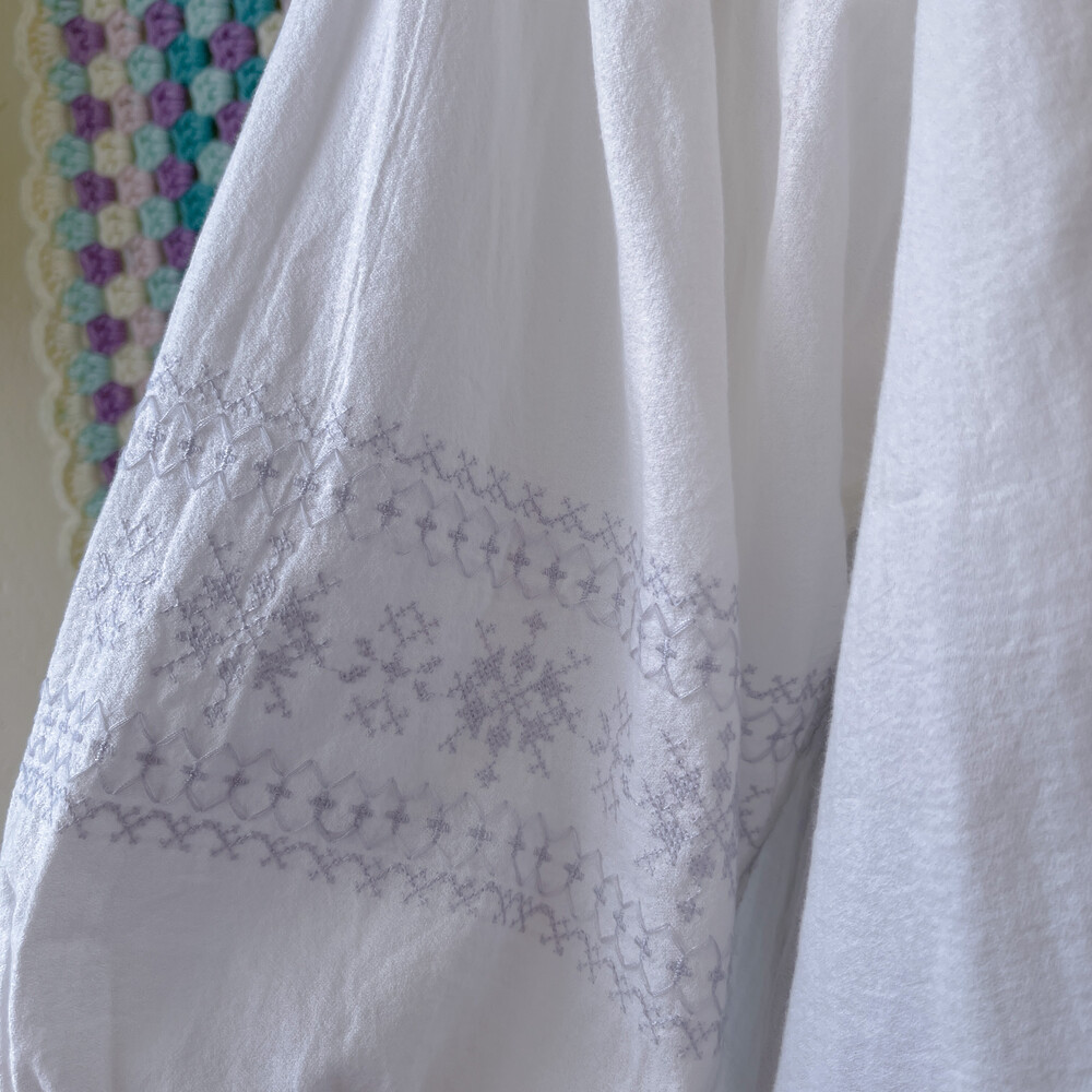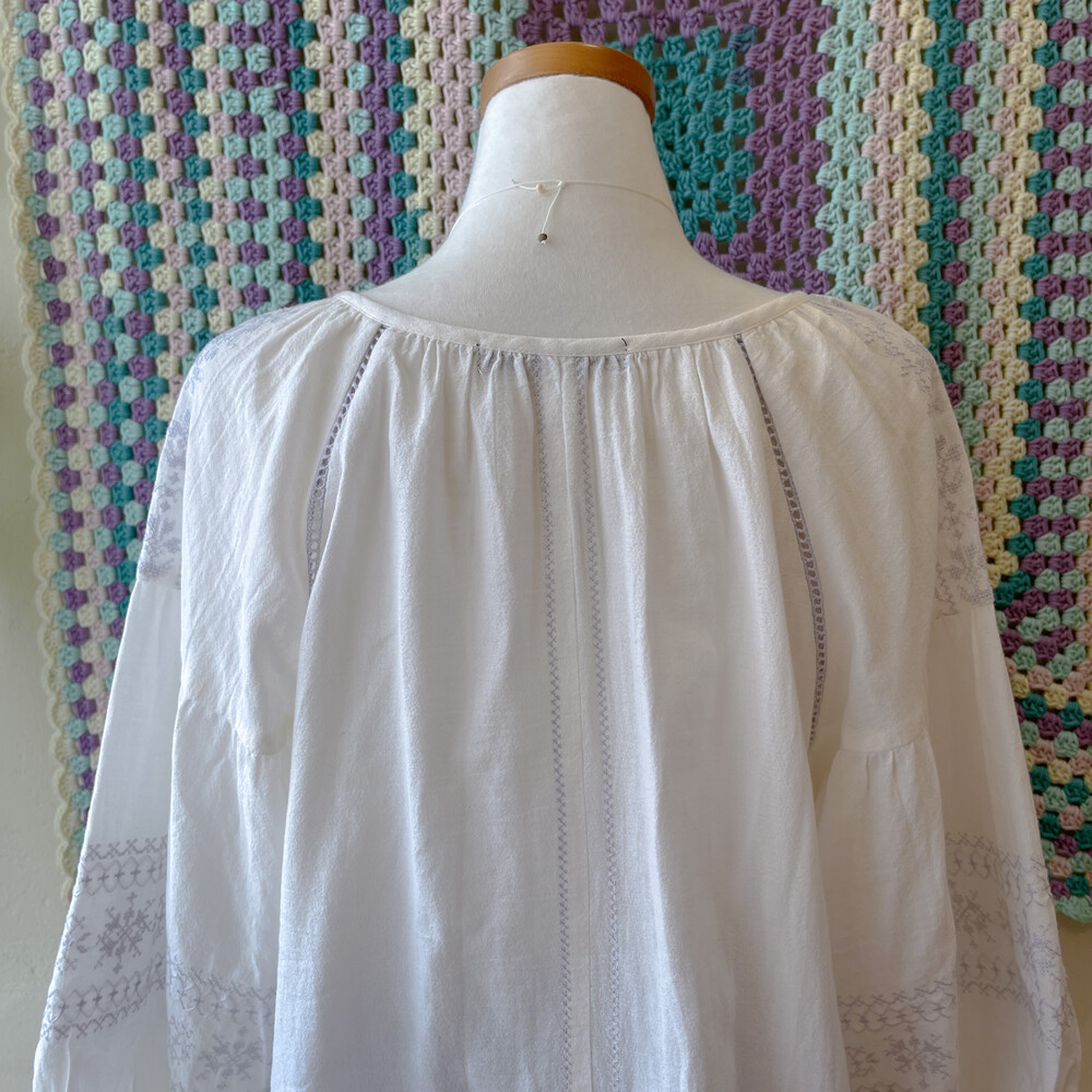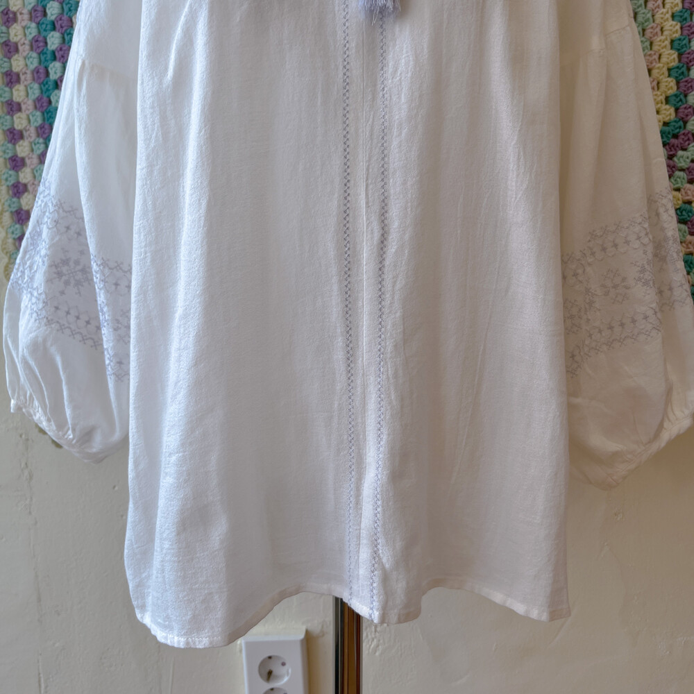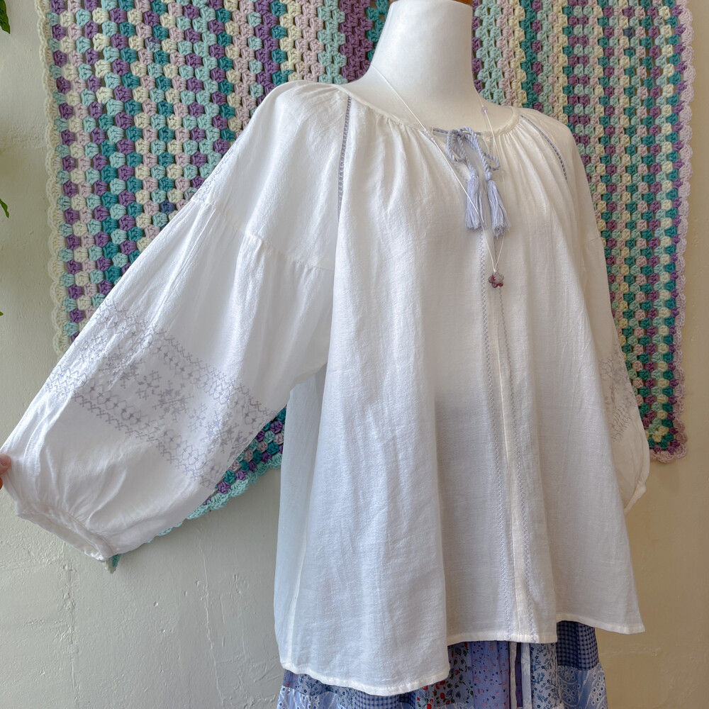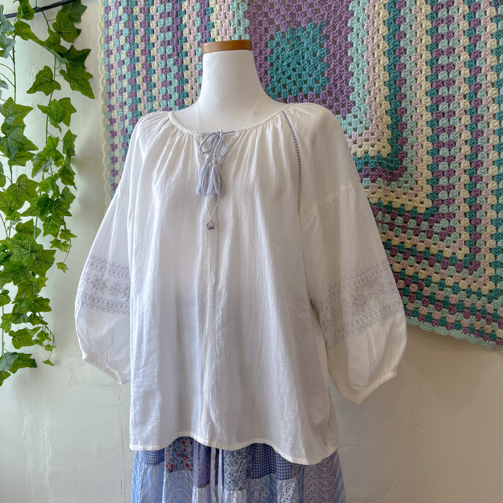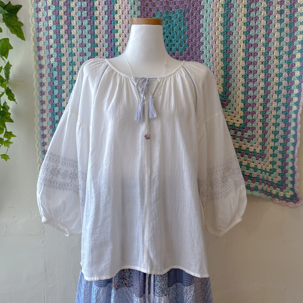 보라색감 자수, 태슬 포인트 코튼 블라우스예요