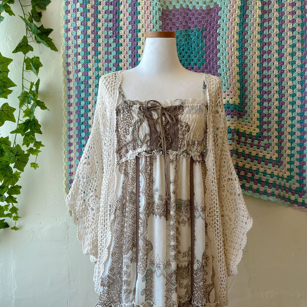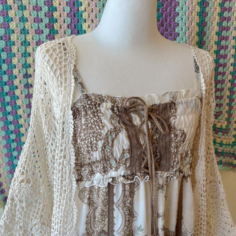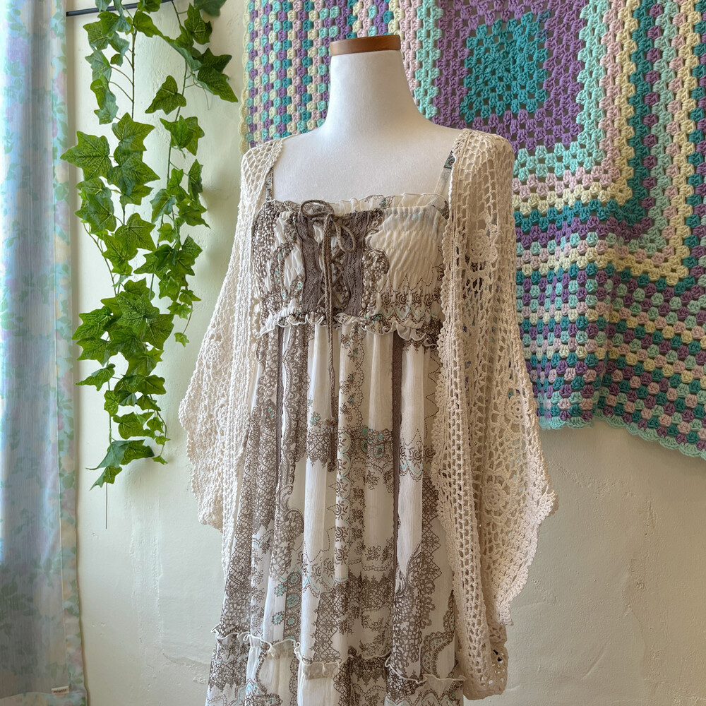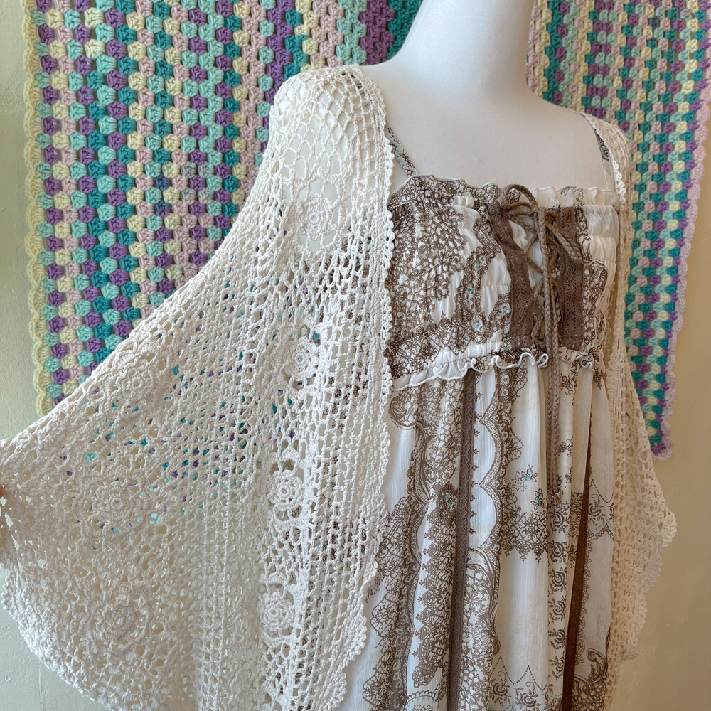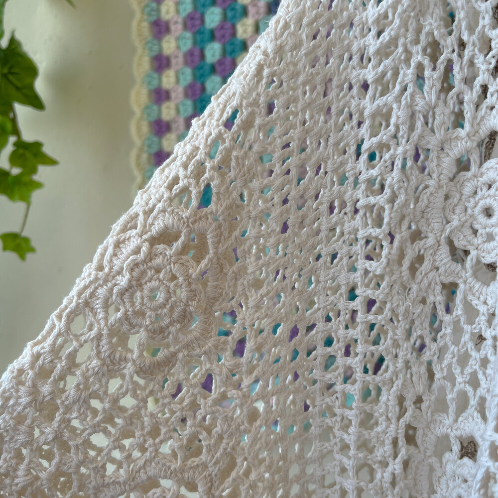 플라워 모티브 디자인의 그물 크로셰 가디건이에요