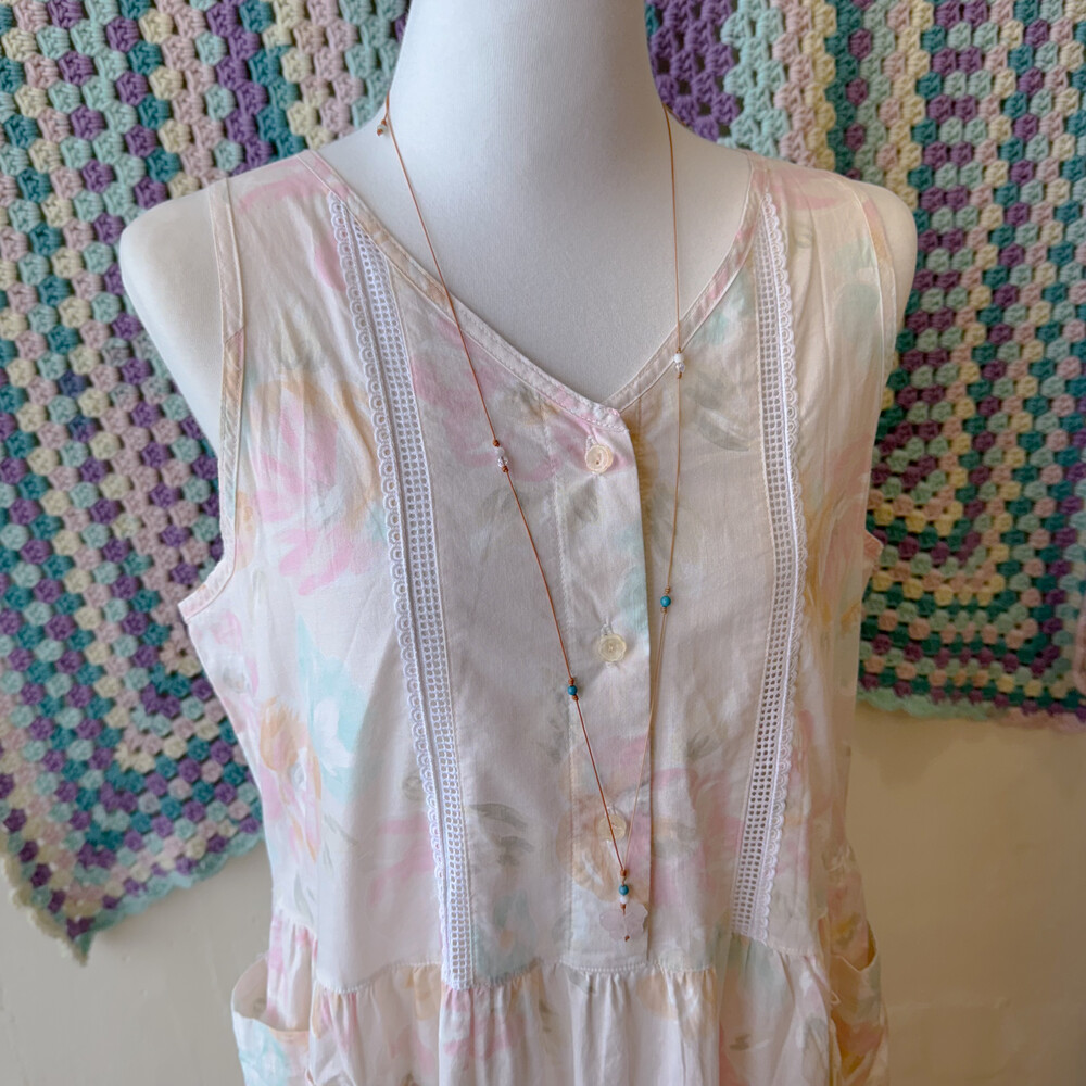 파스텔 색감의 민트, 연핑크 등 꽃무늬 원피스예요