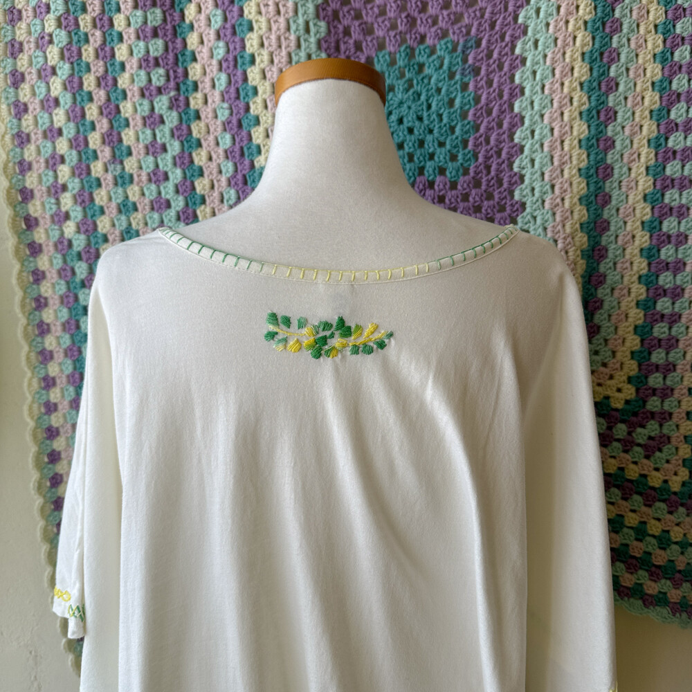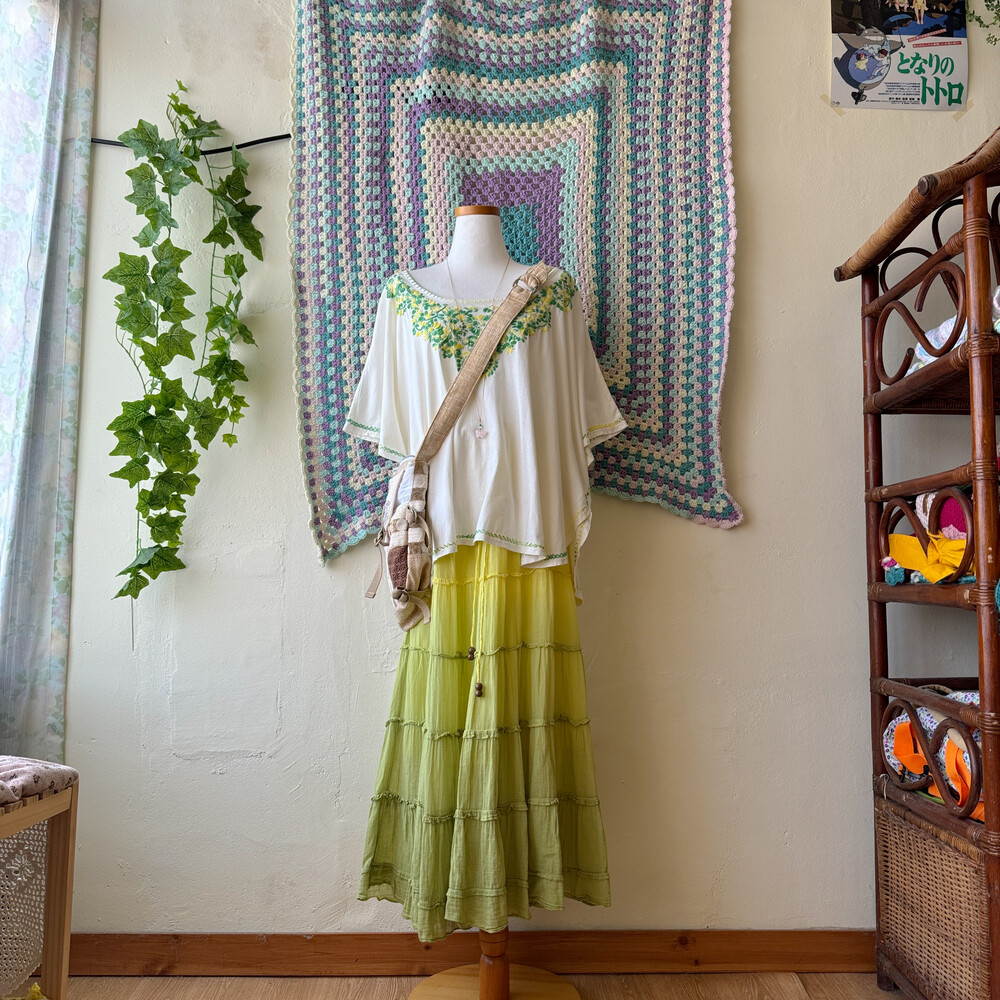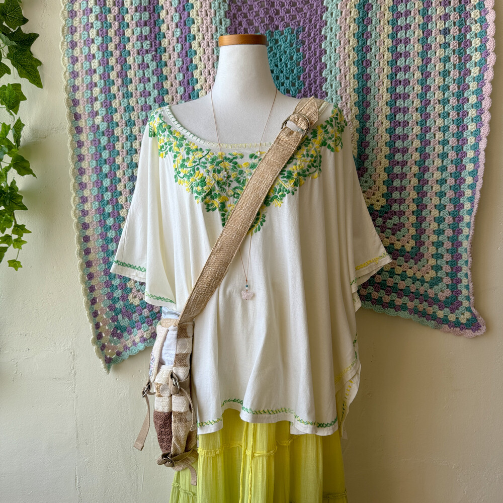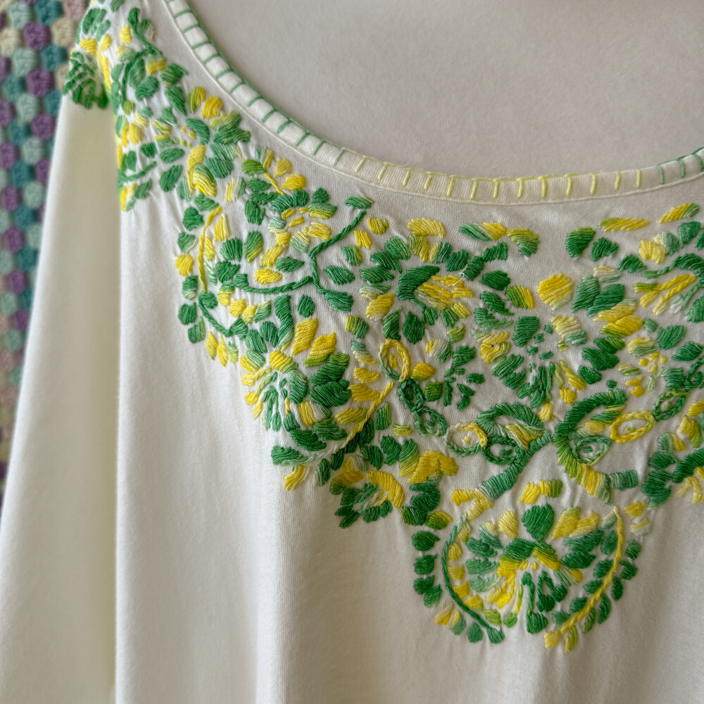 그리너리한 자수 색감과 스티치 디자인이 귀여워요