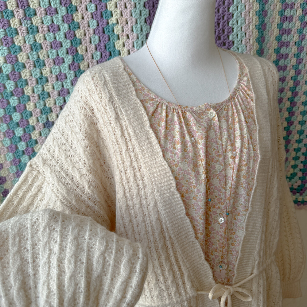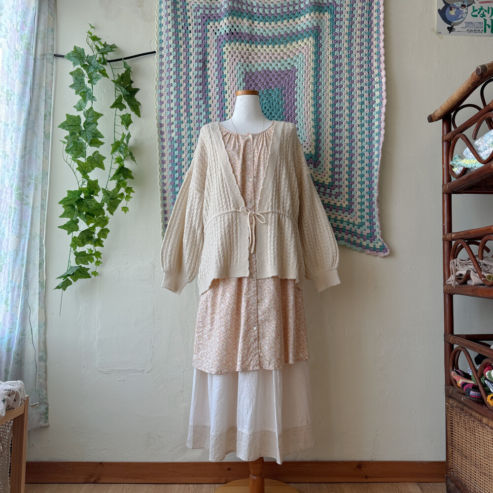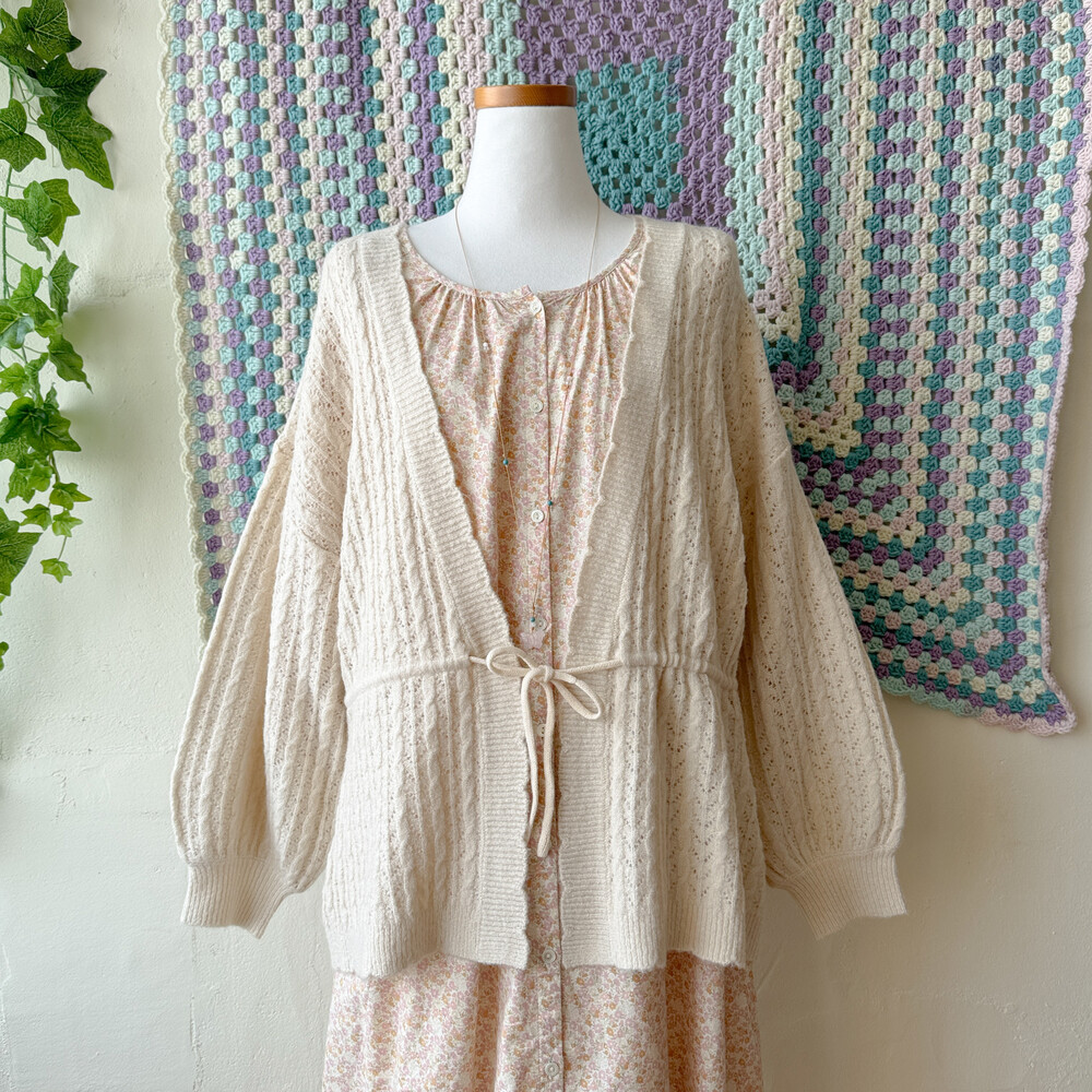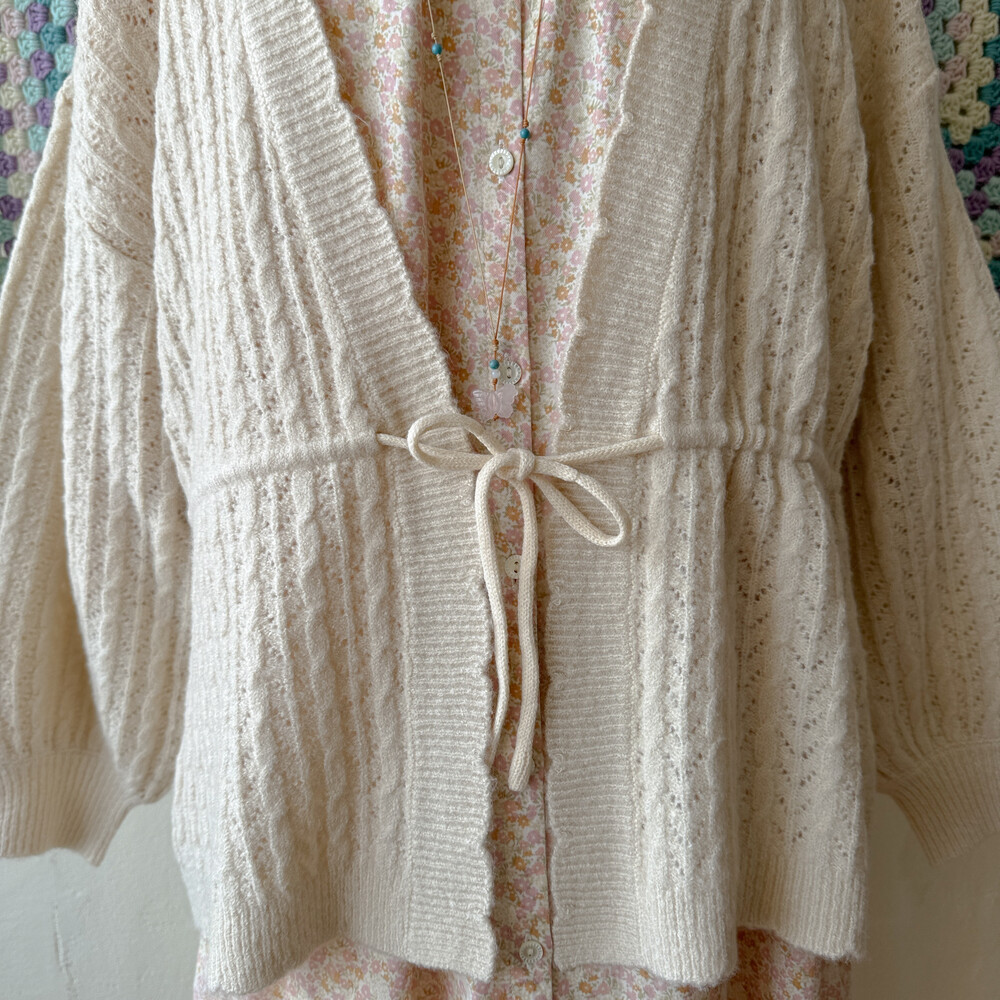 짙은 아이보리 색감의 1리본 봄가디건이에요