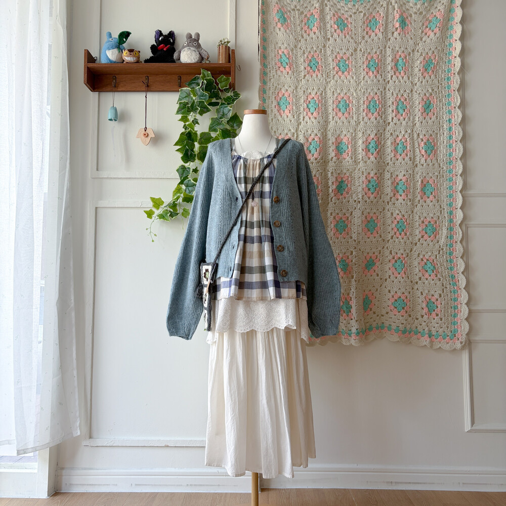 다른 블라우스나 가디건과 레이어드코디하기 좋은 아이템이랍니다:)