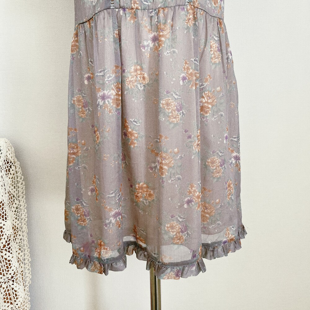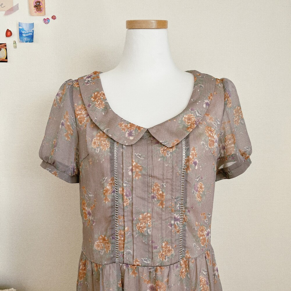 카키브라운 색감의 쉬폰 미니원피스예요