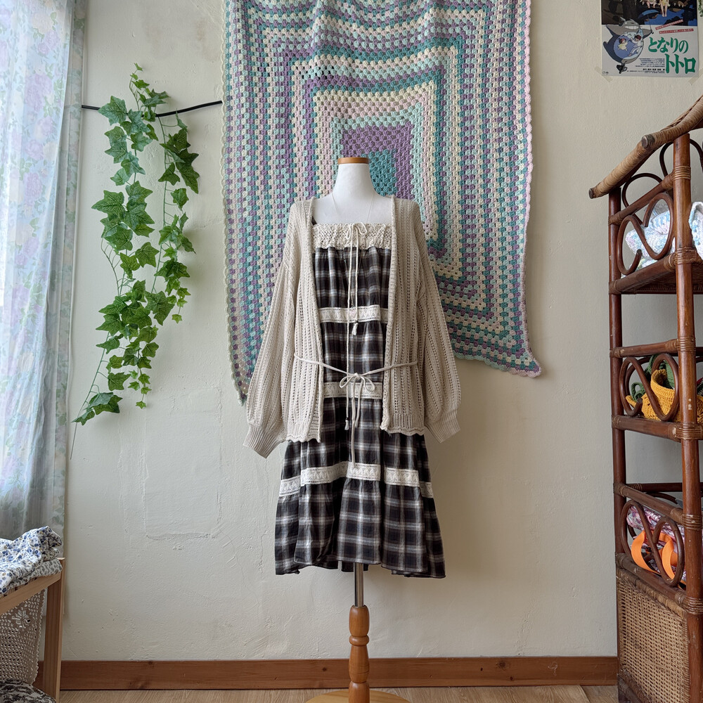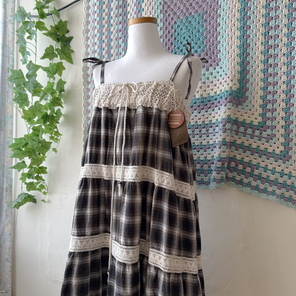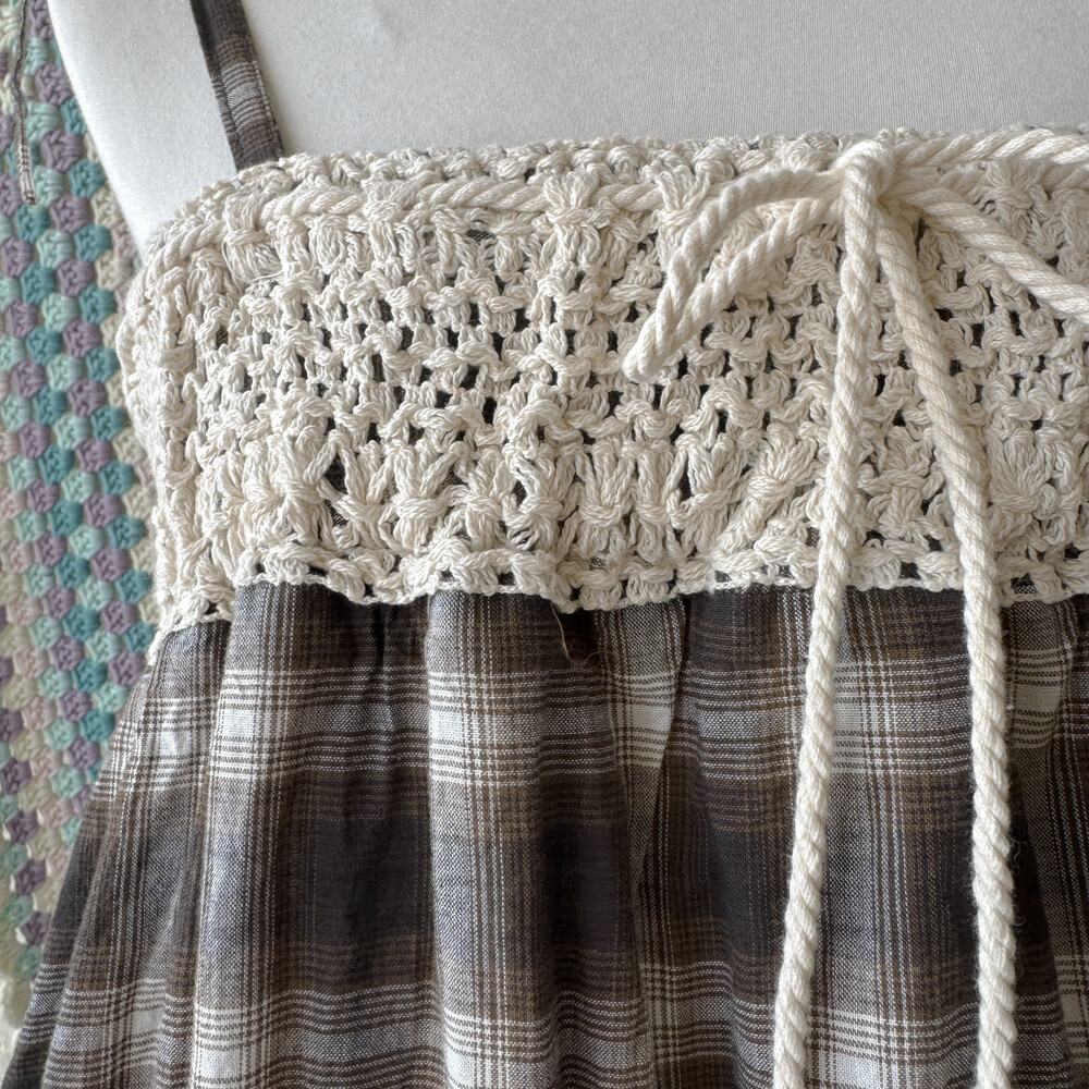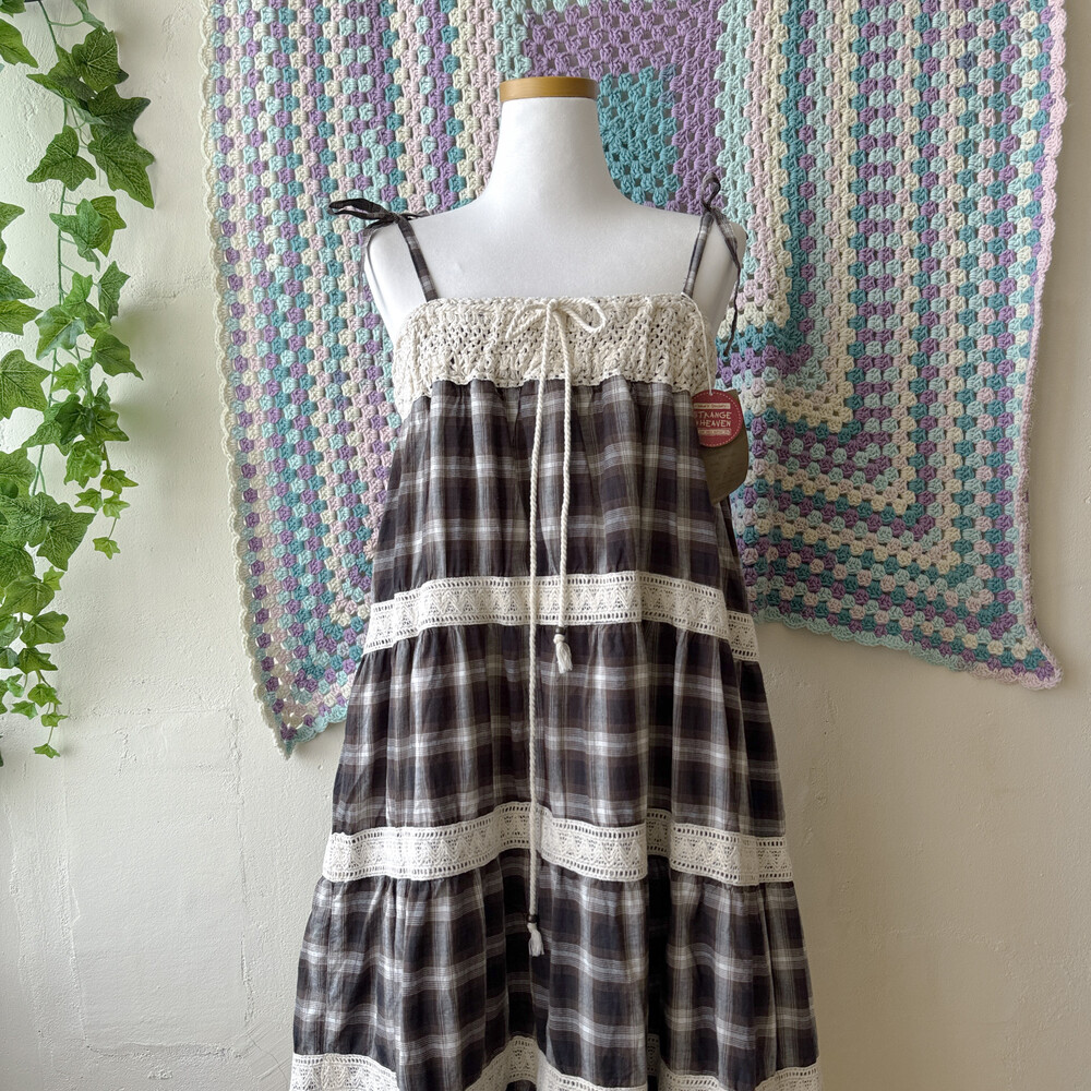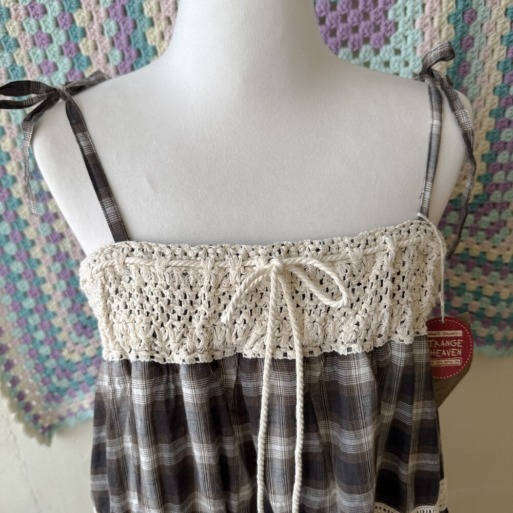 가슴 크로셰 포인트의 체크 끈원피스예요