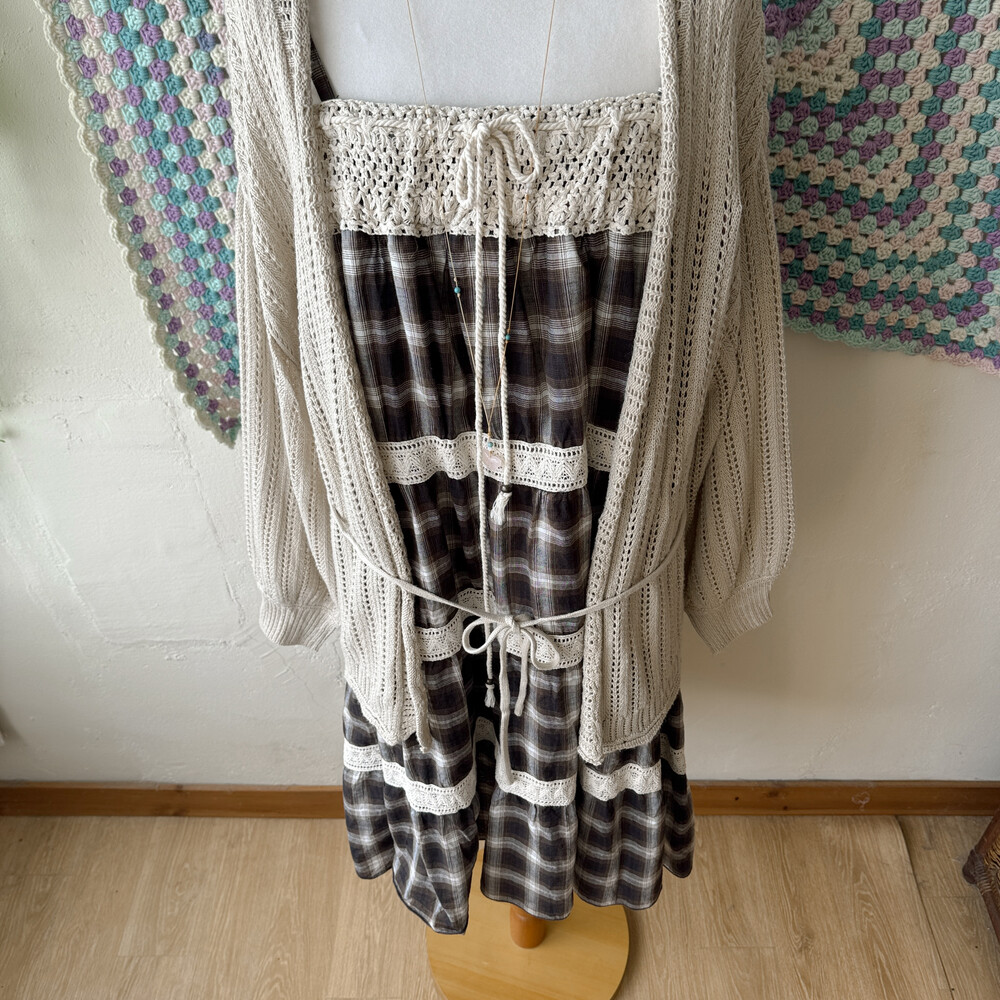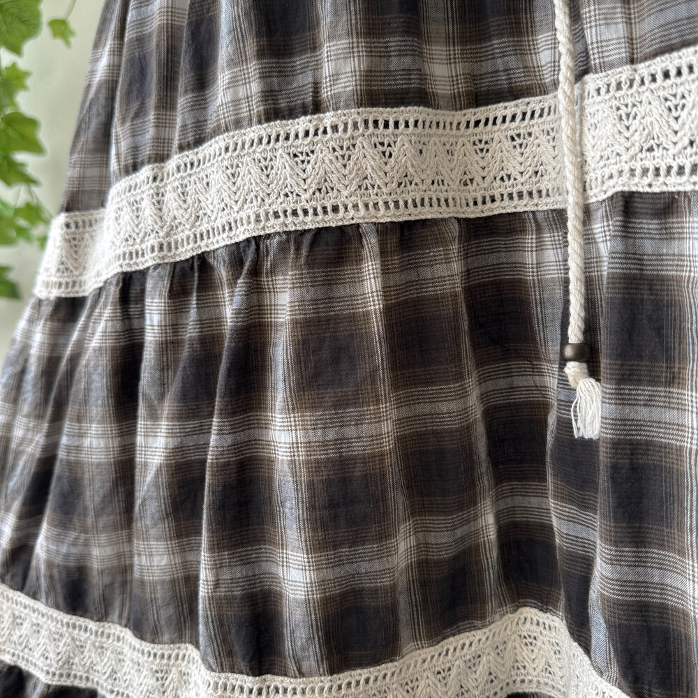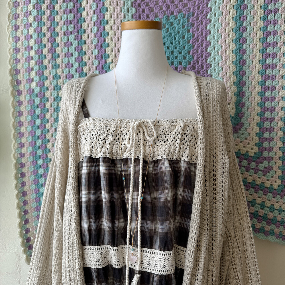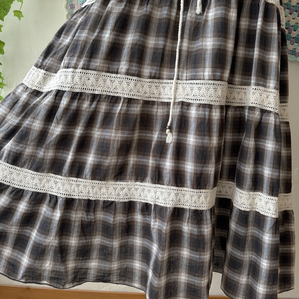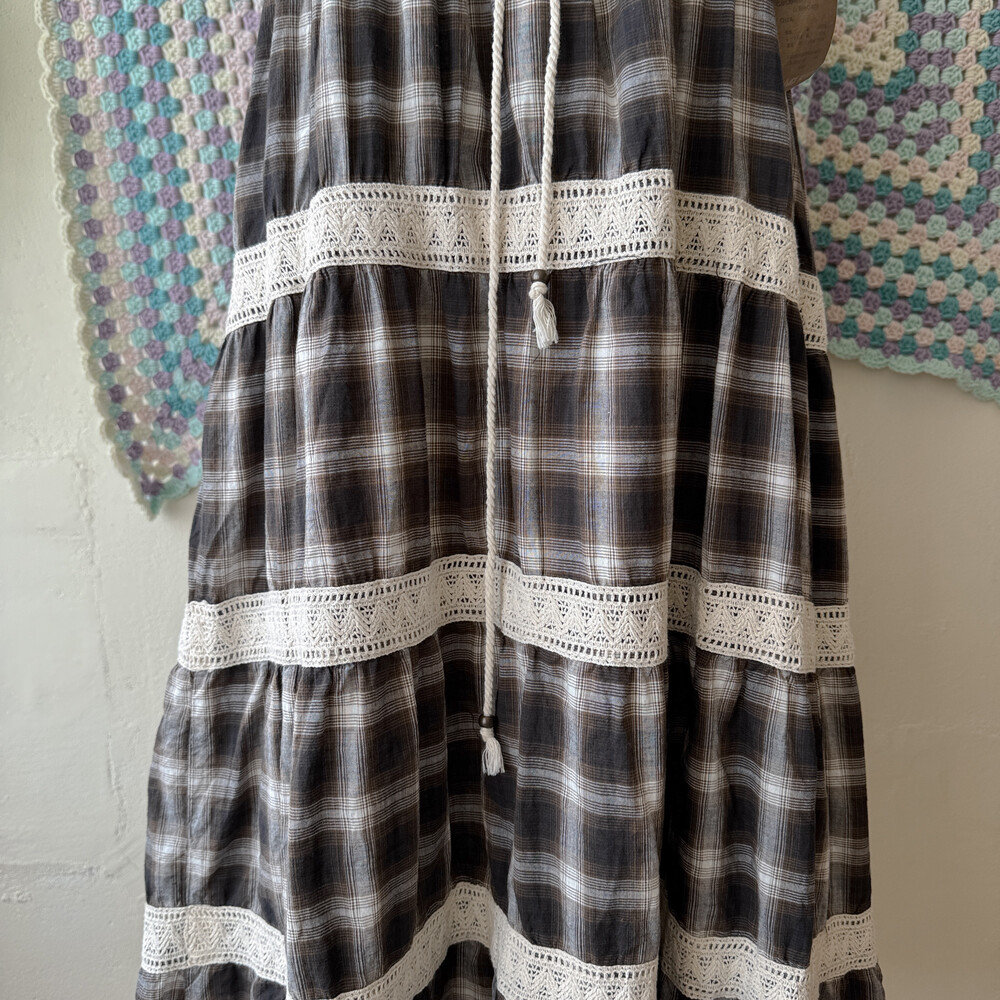 가슴 크로셰 포인트의 체크 끈원피스예요